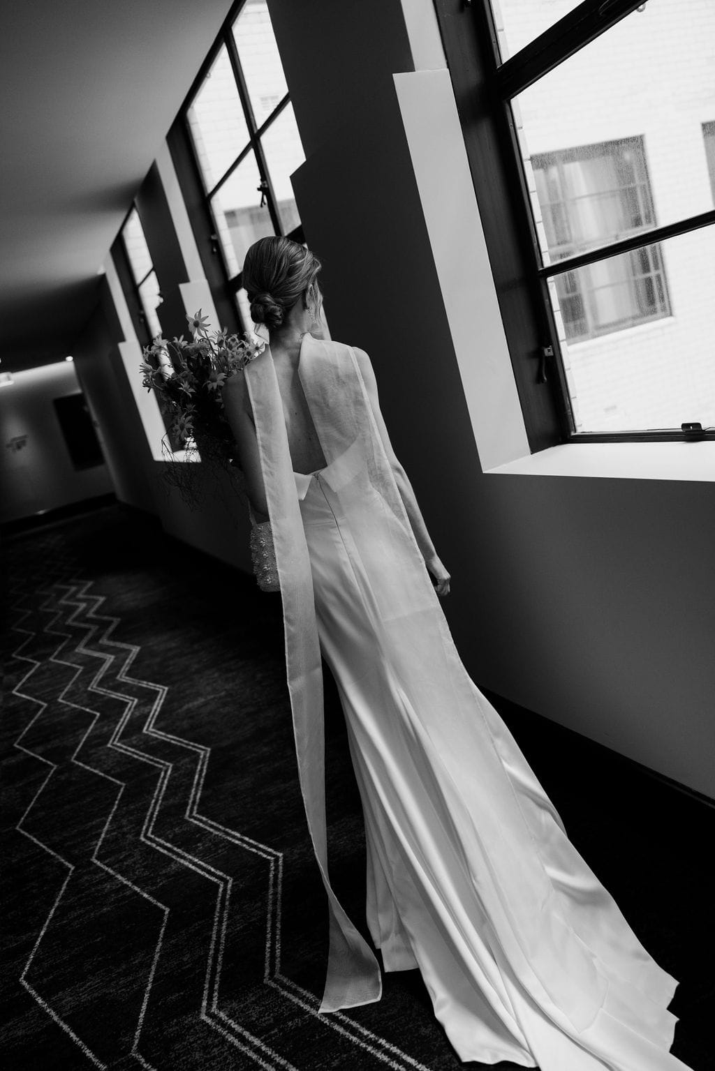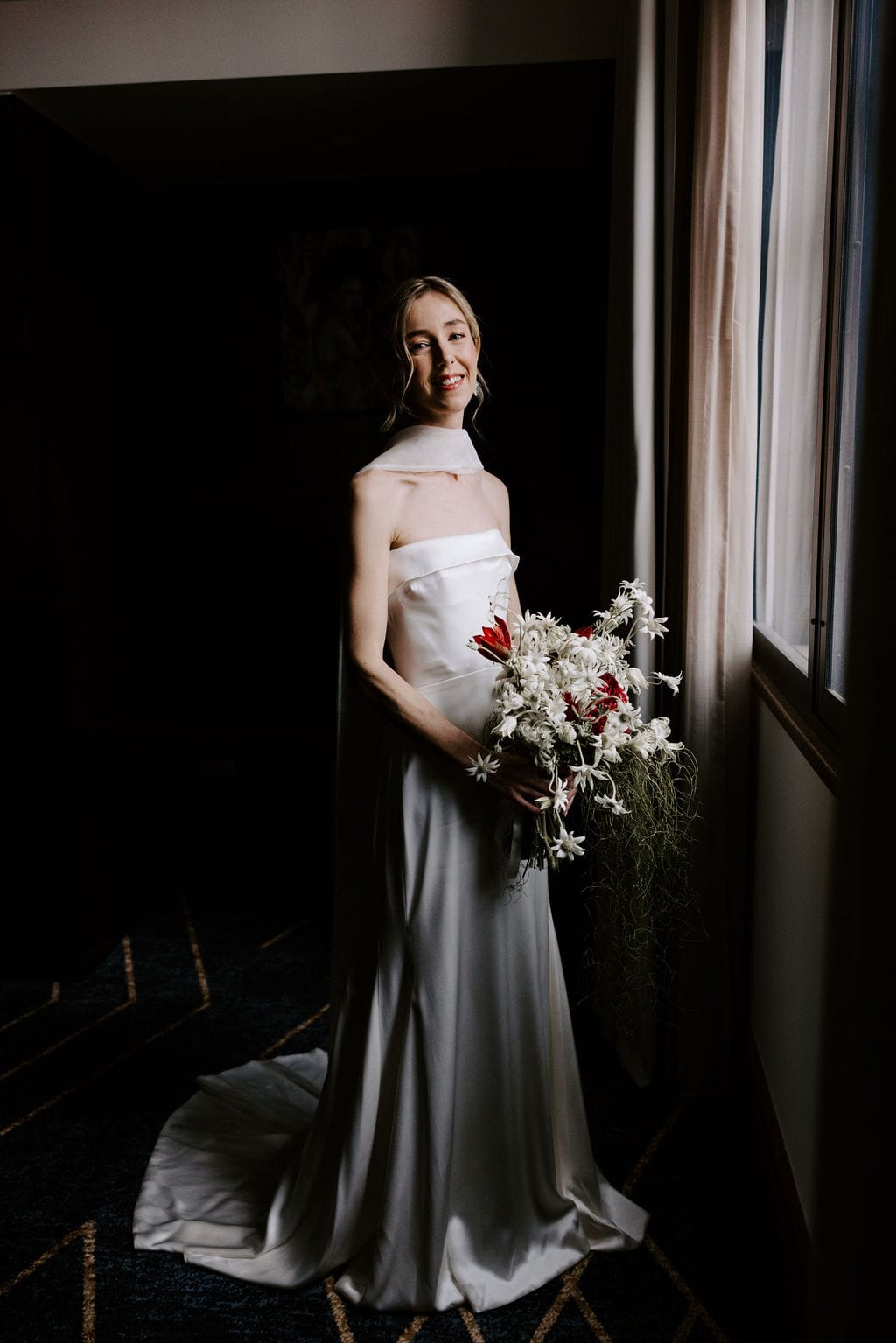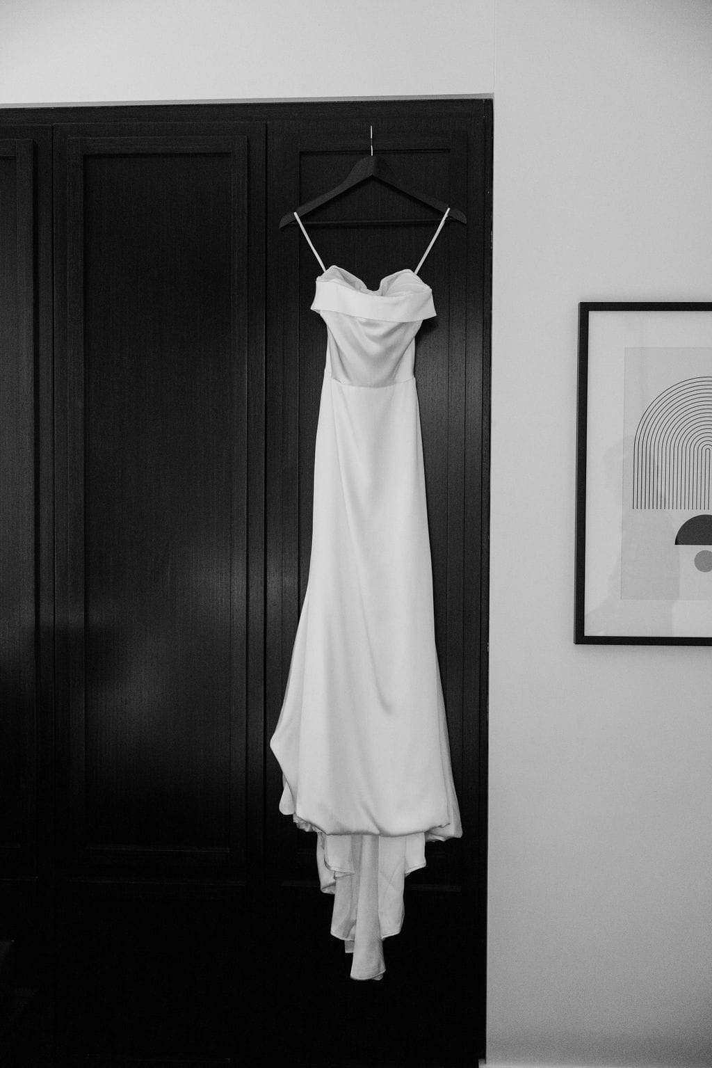 THE WEDDING DRESS “My dress was a minimal, strapless silk dress from Prea James Bridal in Paddington. I think I tried on more than 30 dresses over a couple of months, but this was the one that felt the most me and the most timeless.”