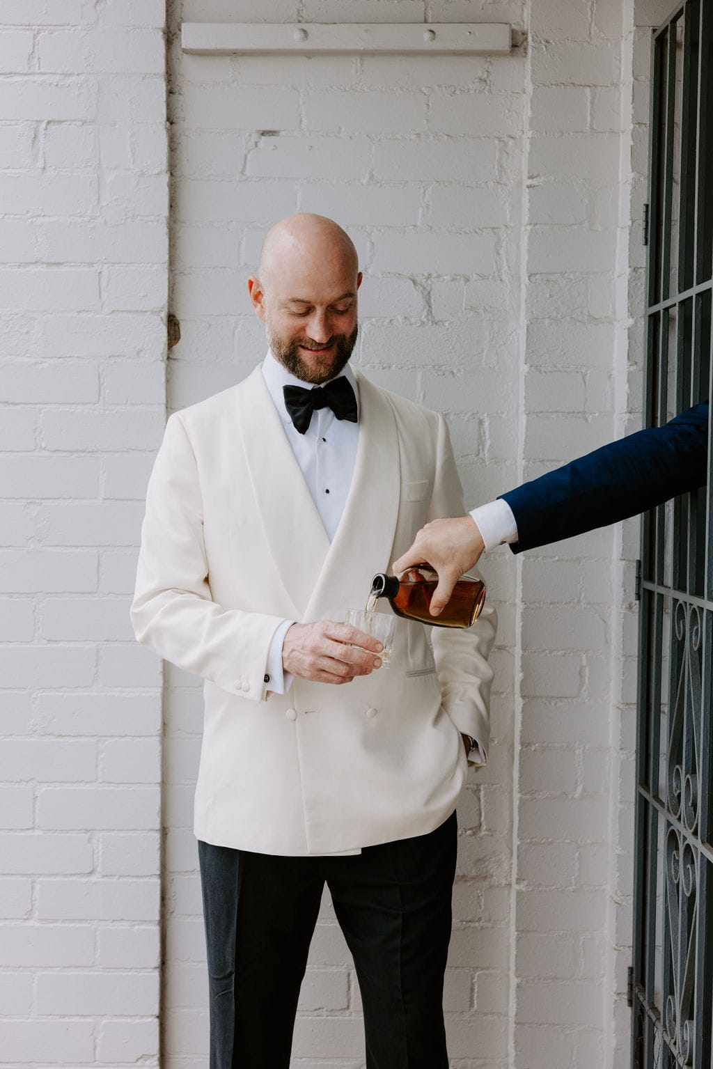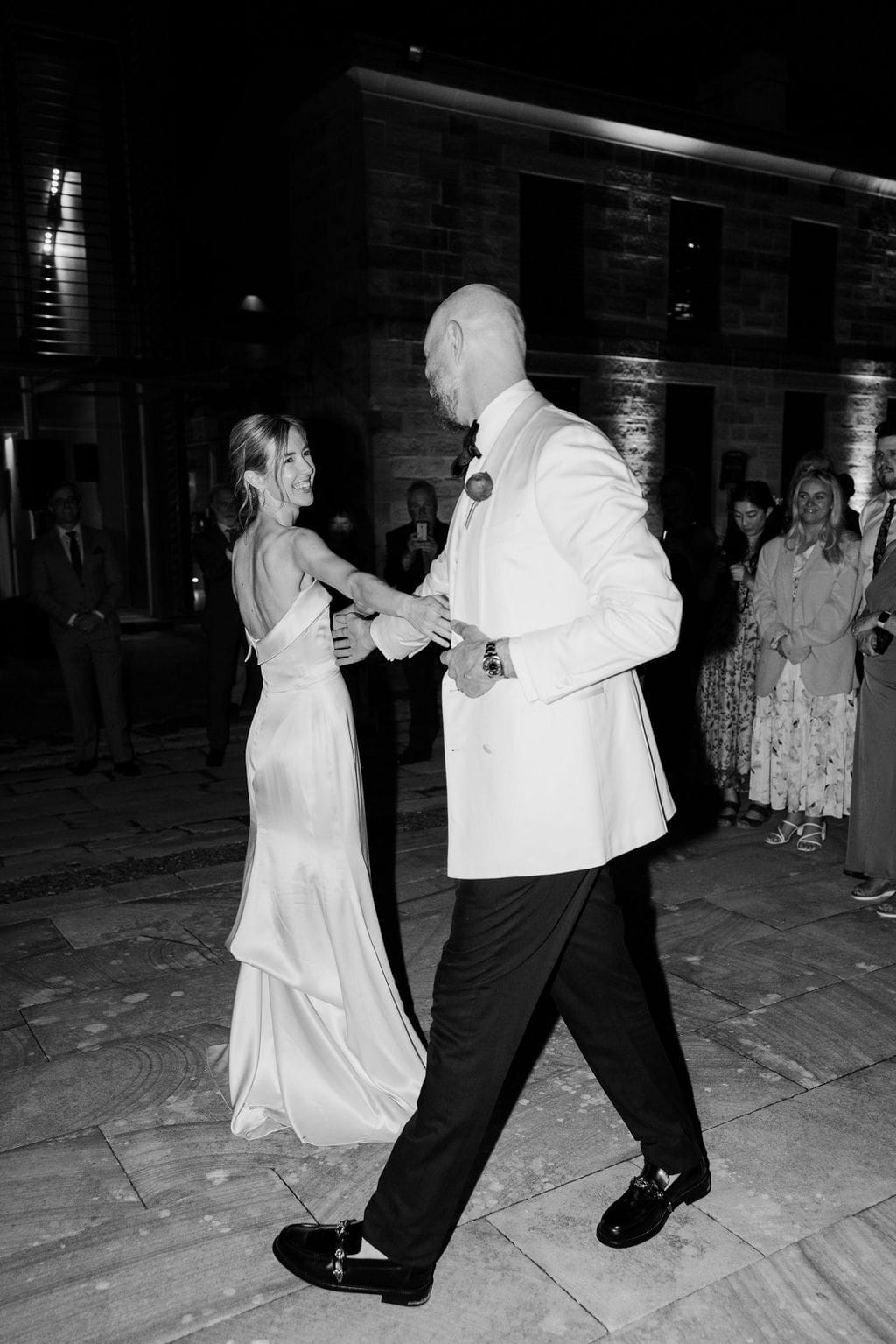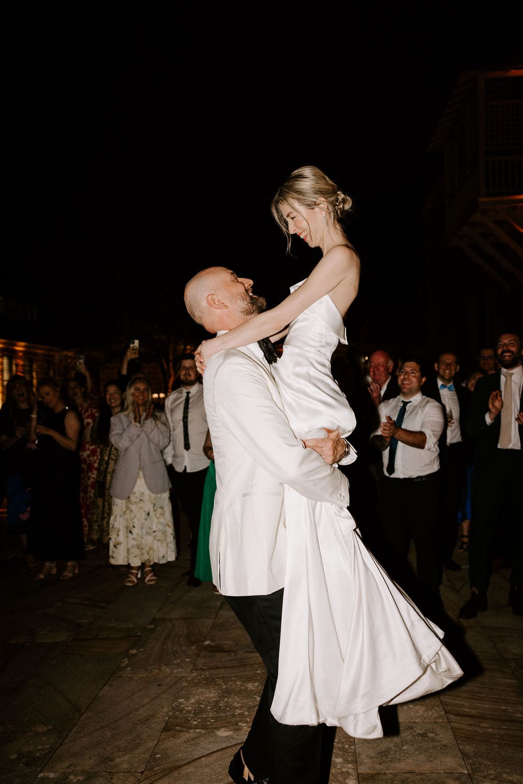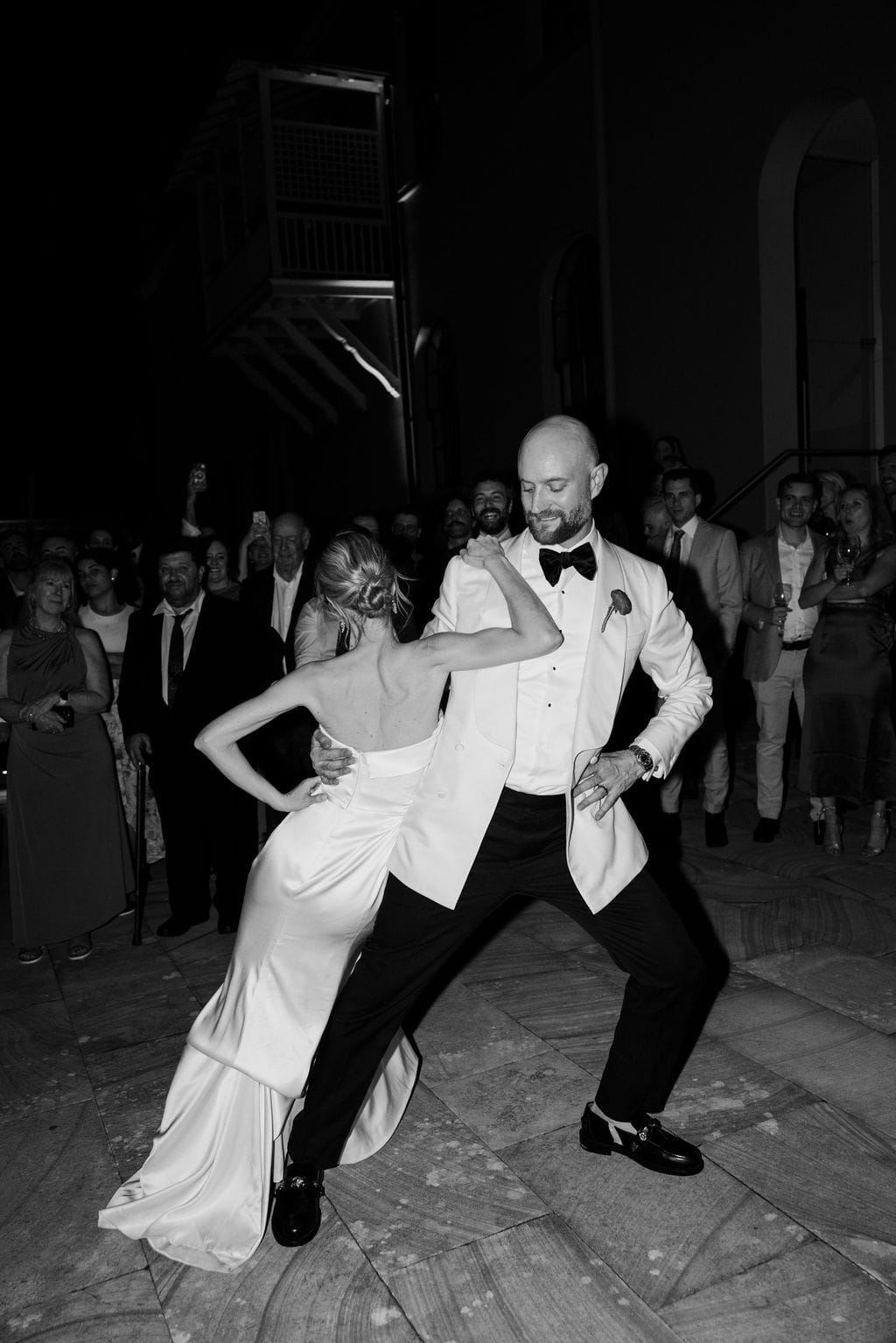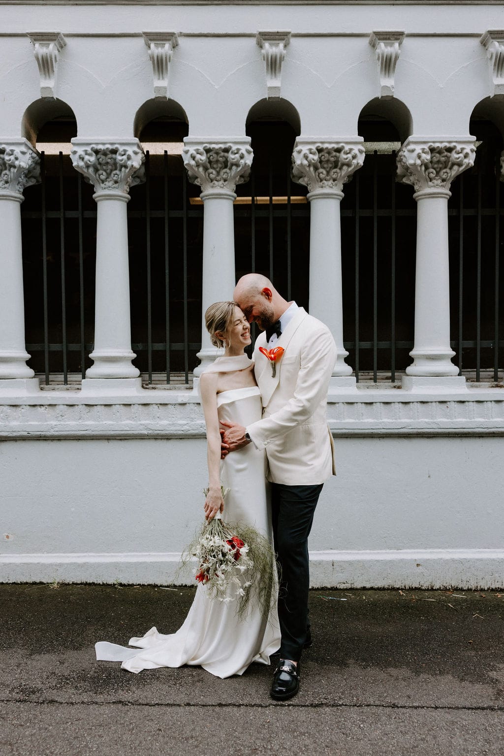 CONTRIBUTING VENDORS Photographer Gillian Keough Florist Bess Stationery & Signage DIY by bride Ceremony venue Royal Botanic Garden Sydney Reception venue The Mint Catering Pearl Catering Cake Fabbrica Bread Shop Rozelle Entertainment Ricardo Steyer, Soul Steady Celebrant Kristy Hosking Rings Stephanie Said MC Anna Robertson Dance lessons Arthur Murray Dance Studio THE BRIDE Bridal gown designer Prea James Bridal Silk scarf My Private Tailor Shoes Aeyde, D’Accori Accessories Simone Rocha Hair & Makeup The Pretty Parlour THE GROOM Suit, Shirt & Tie P Johnson Shoes Toga Pulla via Ssense Watch Rolex (heirloom) Grooming Mr Wolf Barber Shop