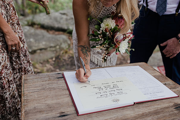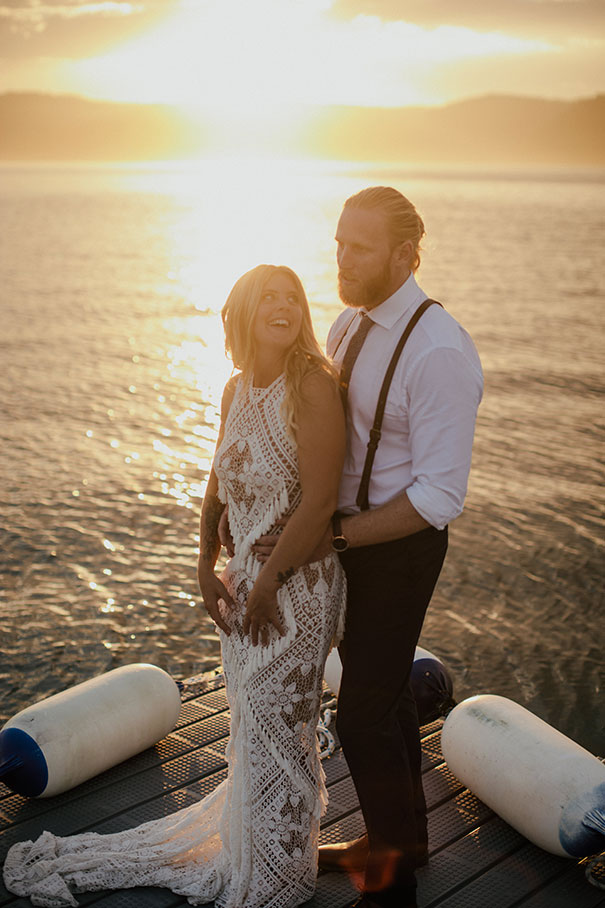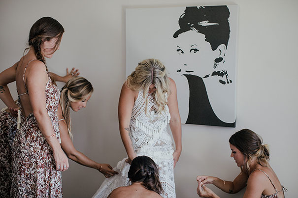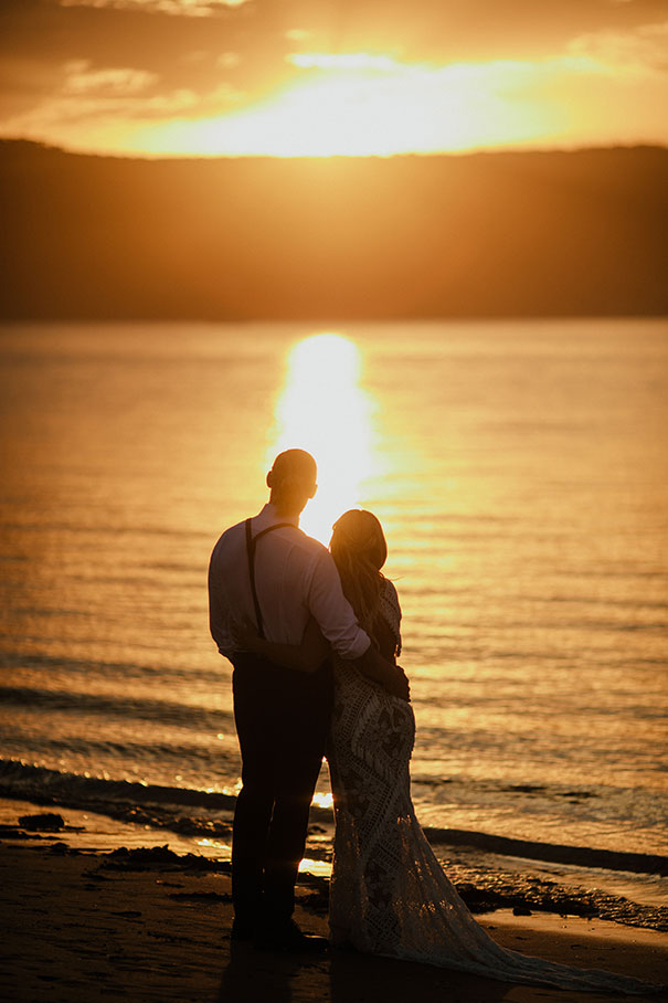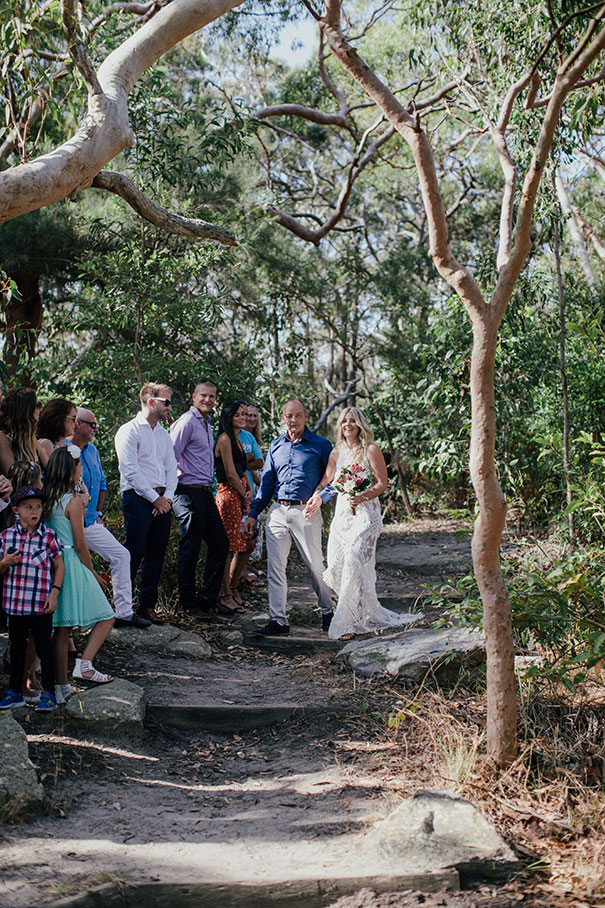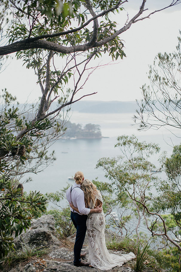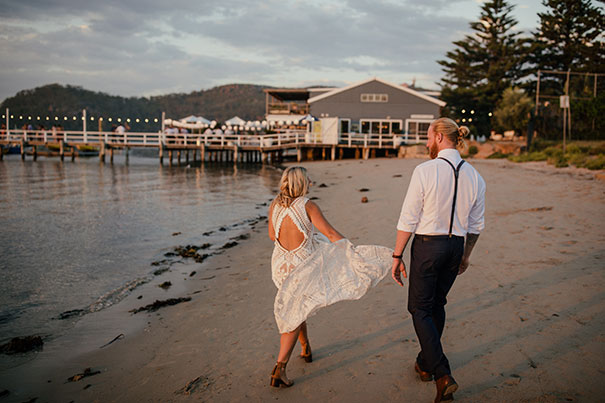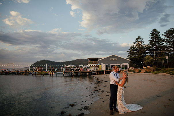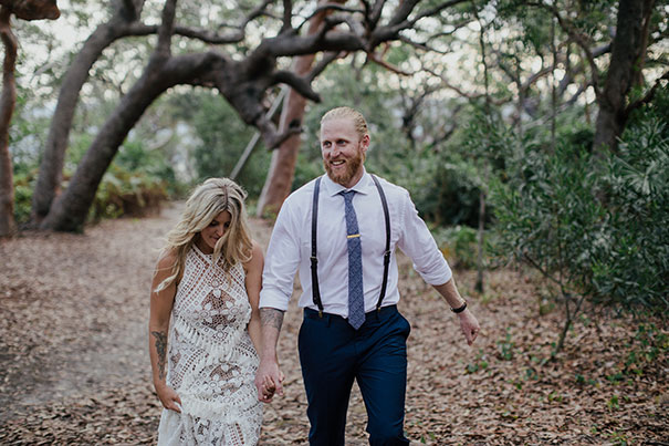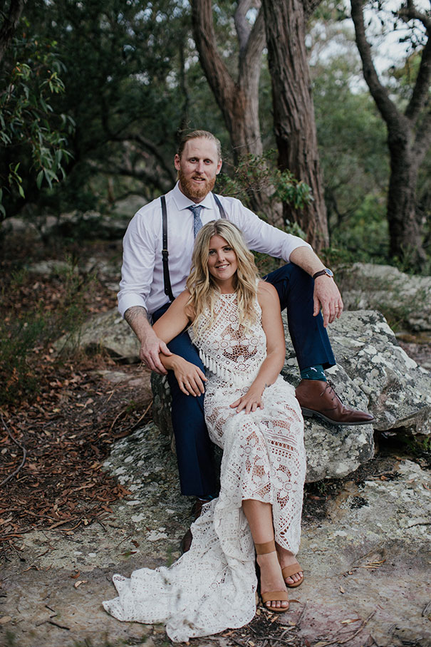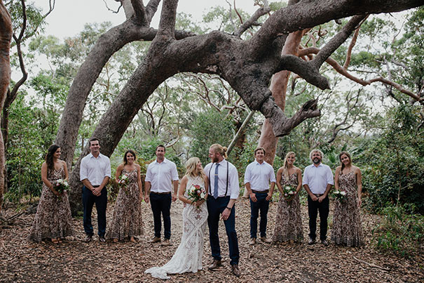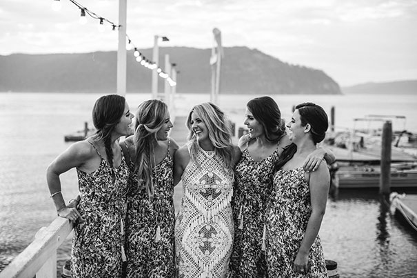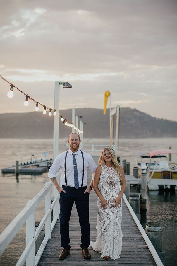 CREDITS Photographer Mitch Pohl // Stationery Lucie Walter // Ceremony Mckay Reserve, NSW // Reception and catering The Boathouse Palm Beach, NSW // Entertainment SCR Music // Brides rings Anna Sheffield // Grooms wedding band Jewellery Studio // Transport My Shuttle // Bridal gown designer Rue De Seine // Bridal Boutique The Bridal Atelier // Robes / getting ready tees Cotton On // Shoes Sportsgirl // Accessories Discoluxe via Etsy // Hair Naoki Hair and Beauty // Makeup Rachel Dighton Makeup // Bridesmaid dresses Arnhem // Suit, tie and socks David Jones // Suspenders HeySir via Etsy // Shoes Julius Marlow.