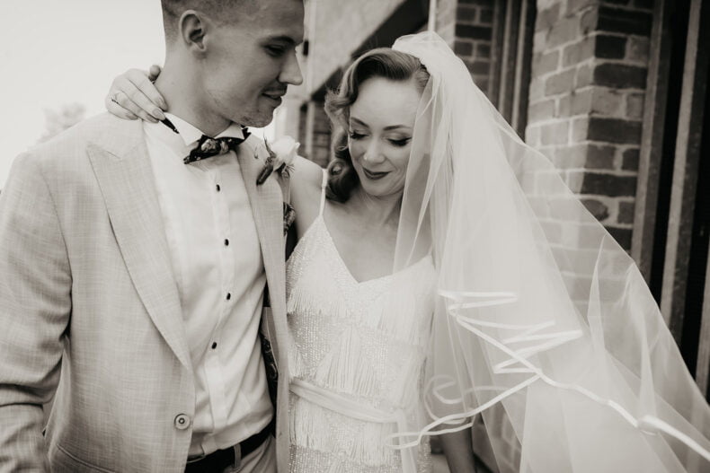 CONTRIBUTING VENDORS Photographer Had To Be You Weddings Florist Kelseys Florist Morwell Stationery Zazzle Ceremony Venue + Celebrant  The Altar Electric Reception venue Naked For Satan Rings Pinky Blinder Bridal gown designer Retrofete Veil Etsy Shoes Mi Piaci Hair & Makeup The Distinctive Dame Suit, tie & cufflinks Urbana Shoes  Florsheim Barber Jimmy Rodds Barbershop