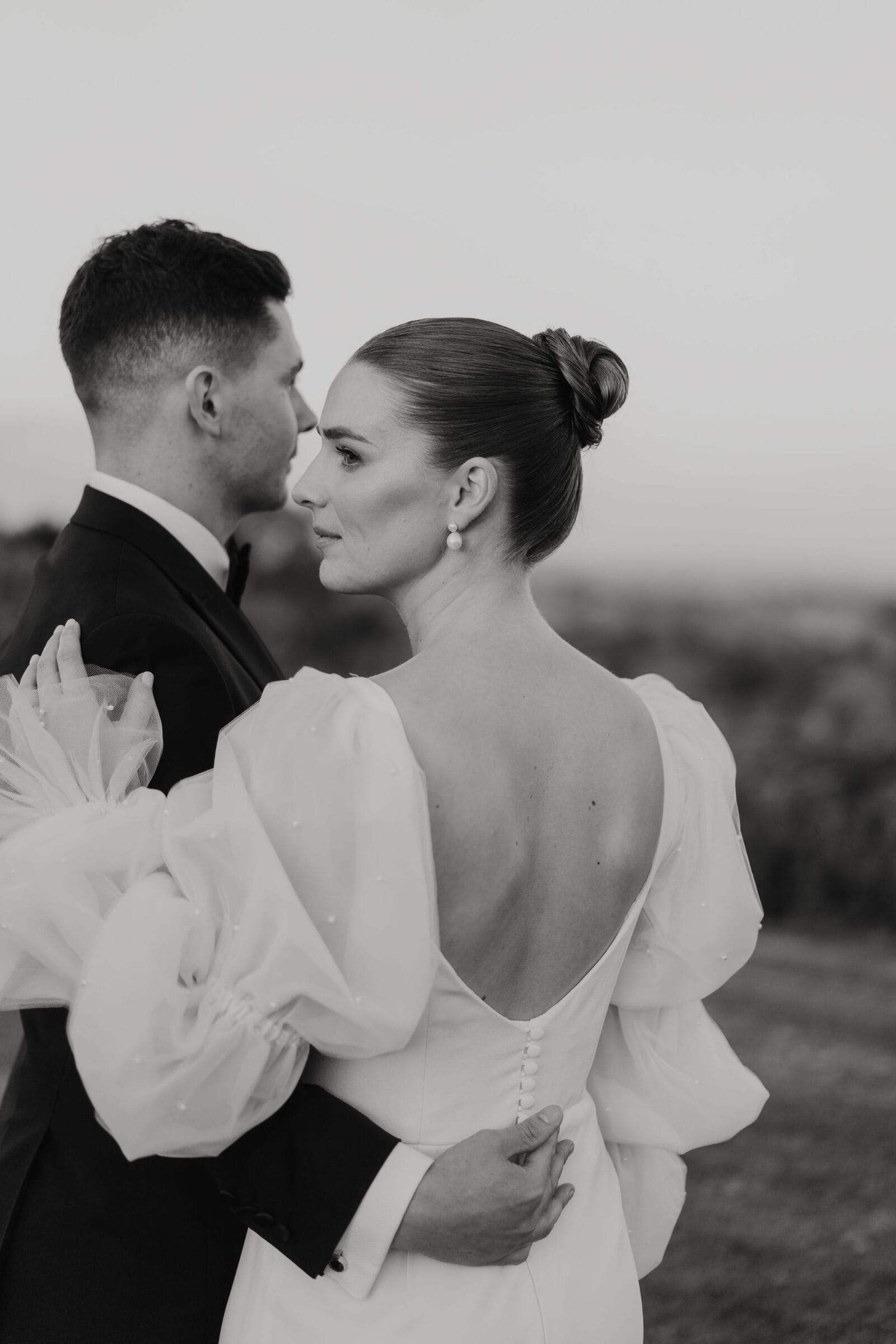 THE DRESS “I came across a photo on Pinterest of these stunning, dramatic sleeves and was instantly hooked. I visited a few stores and tried on different styles, but in the end, I knew those sleeves were exactly what I wanted. [For me], going to a dressmaker and having something custom-made just felt like a risk worth taking. Working with Susan [Ogg] was an absolute delight, and the whole process was so much fun.”