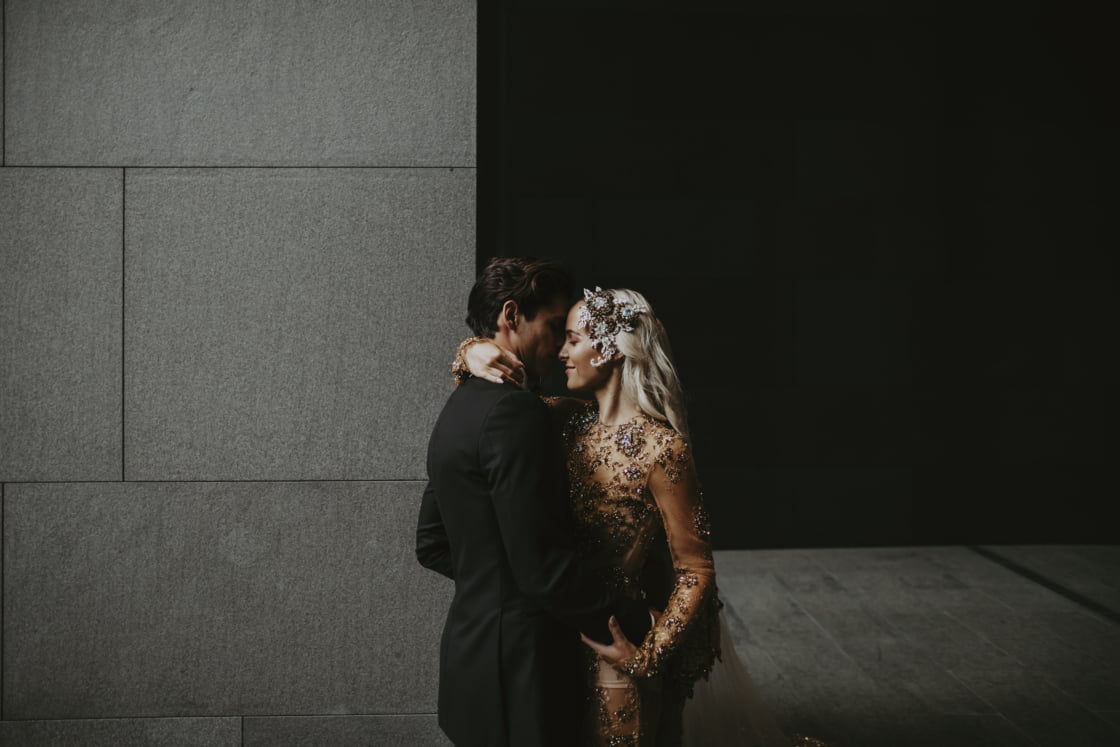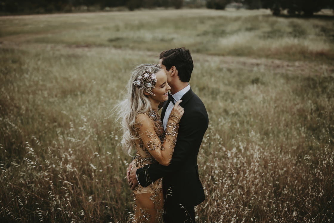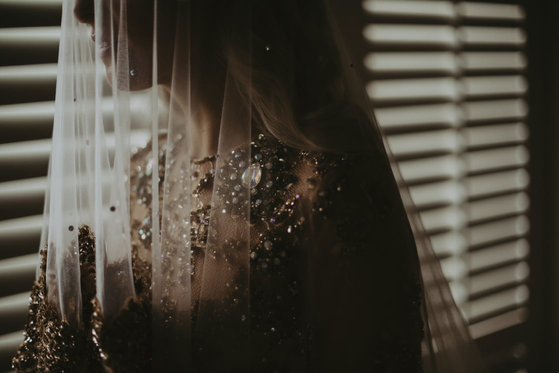 THE DRESS “Five years ago I attended a Jaime Lee Major runway show and I was in complete awe of every gown as they sparkled their way past me. Jaime Lee had moved to LA, so I had almost lost hope of the possibility of getting my dream gown. Thankfully the stars aligned and through a few serendipitous moments I found myself in possession of my dream wedding dress, veil and head piece. And Maevana created the most stunning corset for me to wear.”