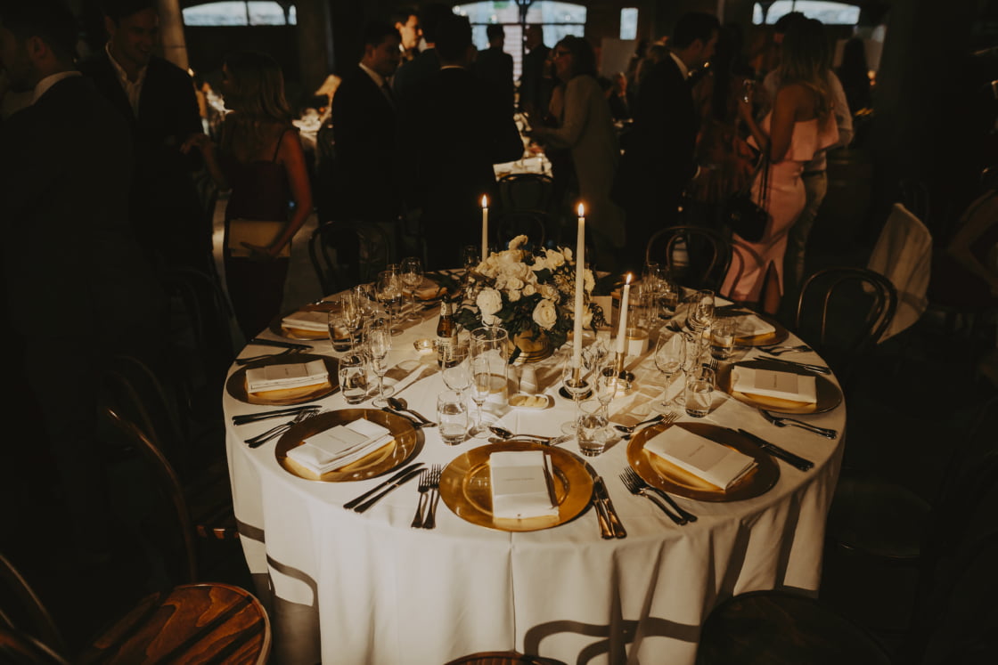 THE THEME “James and I are both very simplistic in our styles and wanted this to be reflected at our wedding. Our stylists at Behind the Scenes totally understood us from the start and created the perfect mood at our reception using white, black and touches of gold. Our bridal table, which seated just James and myself, really was the focal point and I loved that it a touched on boho styling without compromising the simplicity of the overall look.”