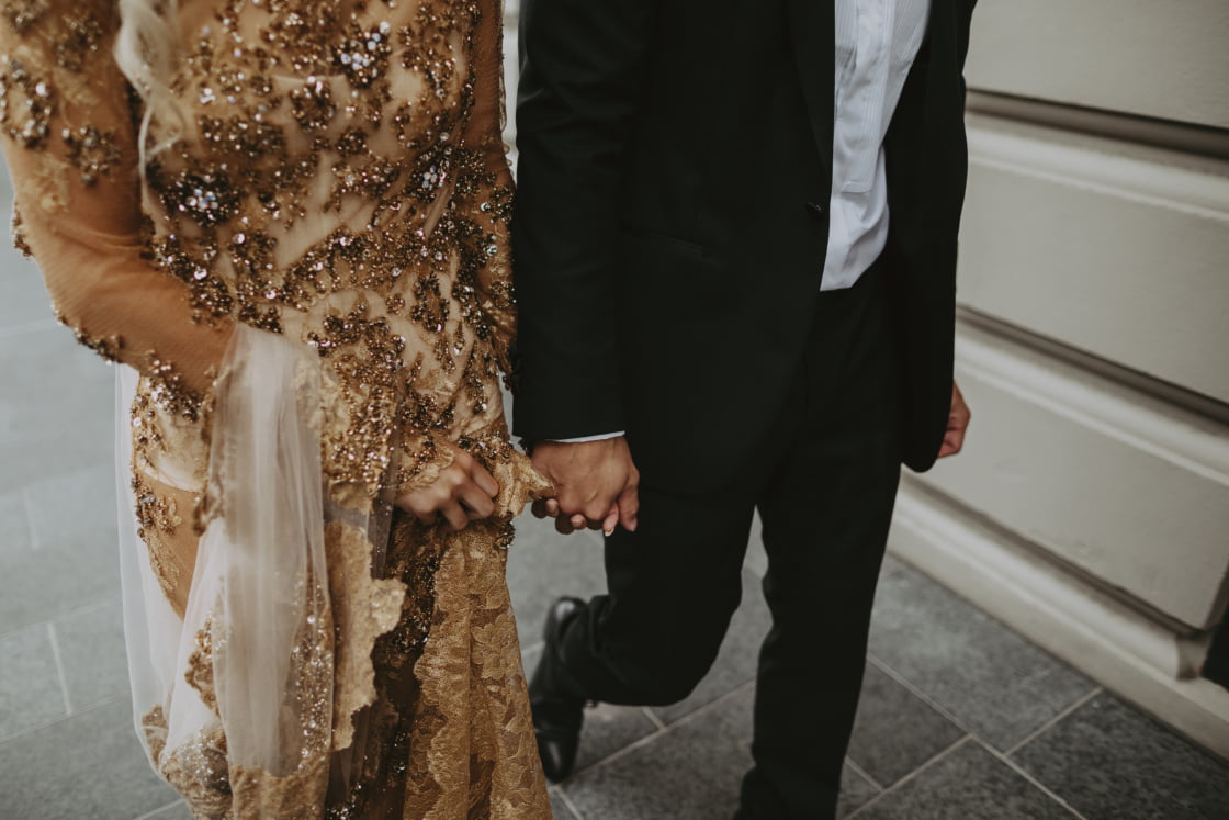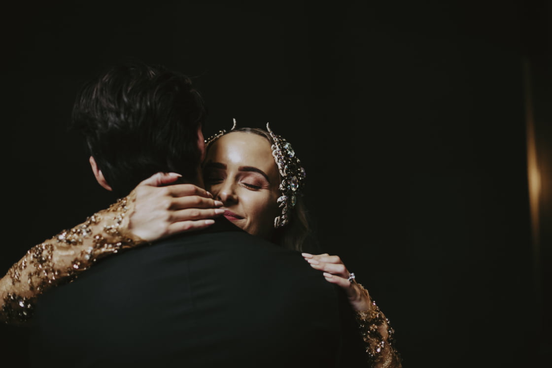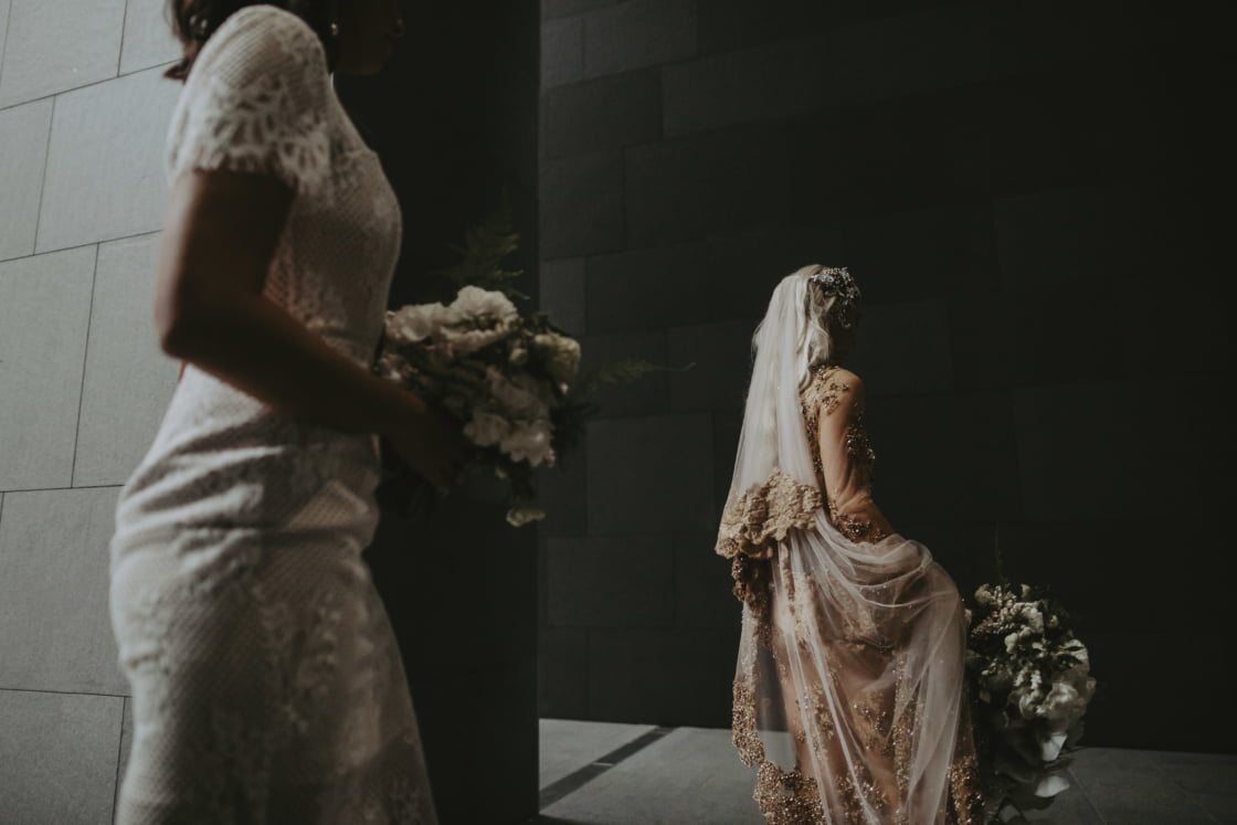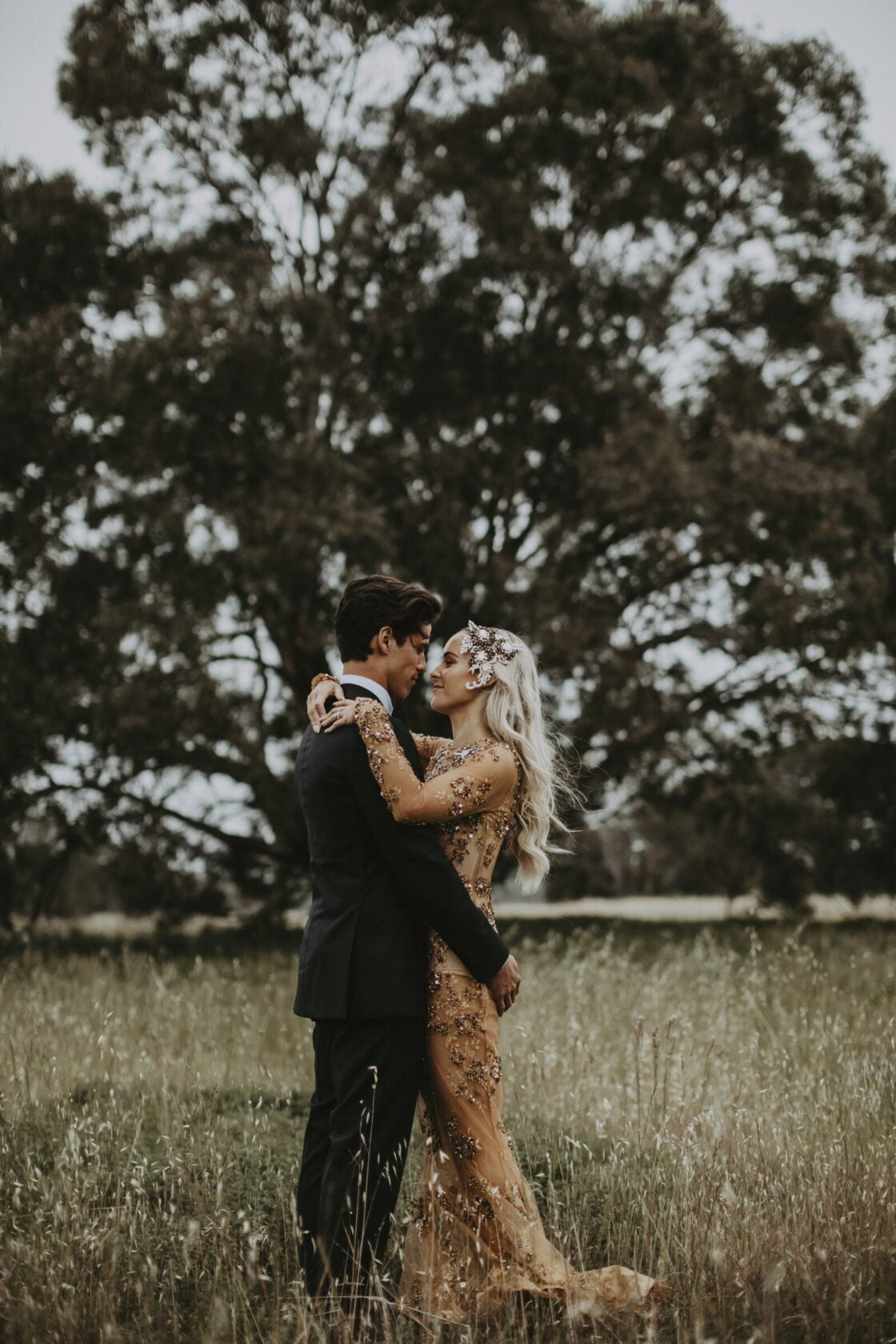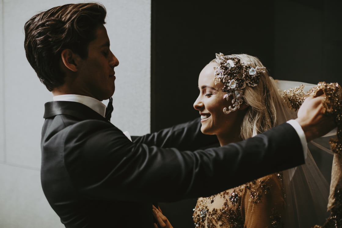 THE DRESS “Five years ago I attended a Jaime Lee Major runway show and I was in complete awe of every gown as they sparkled their way past me. Jaime Lee had moved to LA, so I had almost lost hope of the possibility of getting my dream gown. Thankfully the stars aligned and through a few serendipitous moments I found myself in possession of my dream wedding dress, veil and head piece. And Maevana created the most stunning corset for me to wear.”