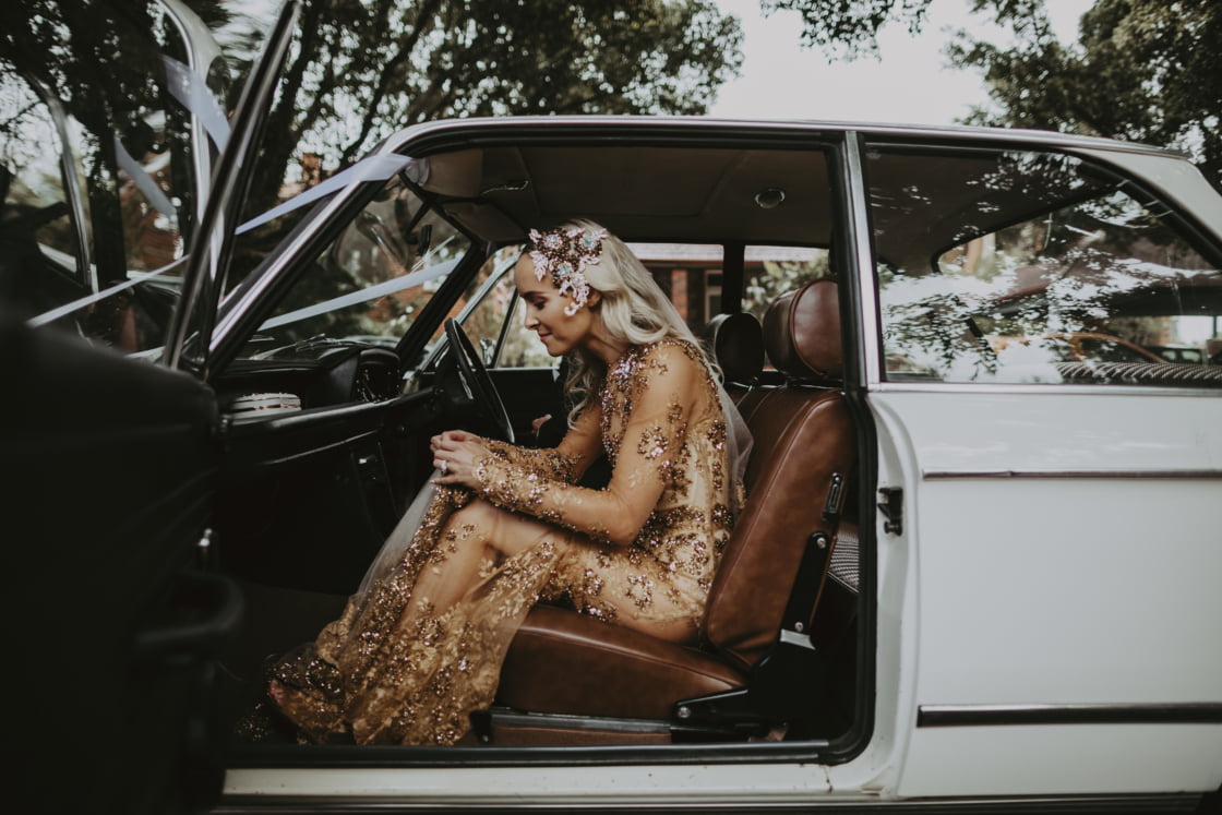 DIY “James and his dad restored our wedding car. James’ dad had owned a 1971 BMW 2002 and over the course of two years, James and his Dad restored the vehicle to what it would have looked like if you bought it off the showroom floor in 1971. It was really special to use it on the day as so much love (and I am sure a little hate) had gone into us being able to have that moment of taking off in it from the ceremony.”