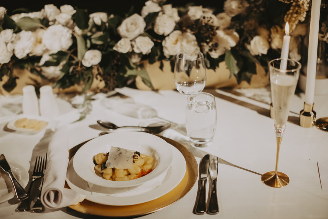 THE THEME “James and I are both very simplistic in our styles and wanted this to be reflected at our wedding. Our stylists at Behind the Scenes totally understood us from the start and created the perfect mood at our reception using white, black and touches of gold. Our bridal table, which seated just James and myself, really was the focal point and I loved that it a touched on boho styling without compromising the simplicity of the overall look.”