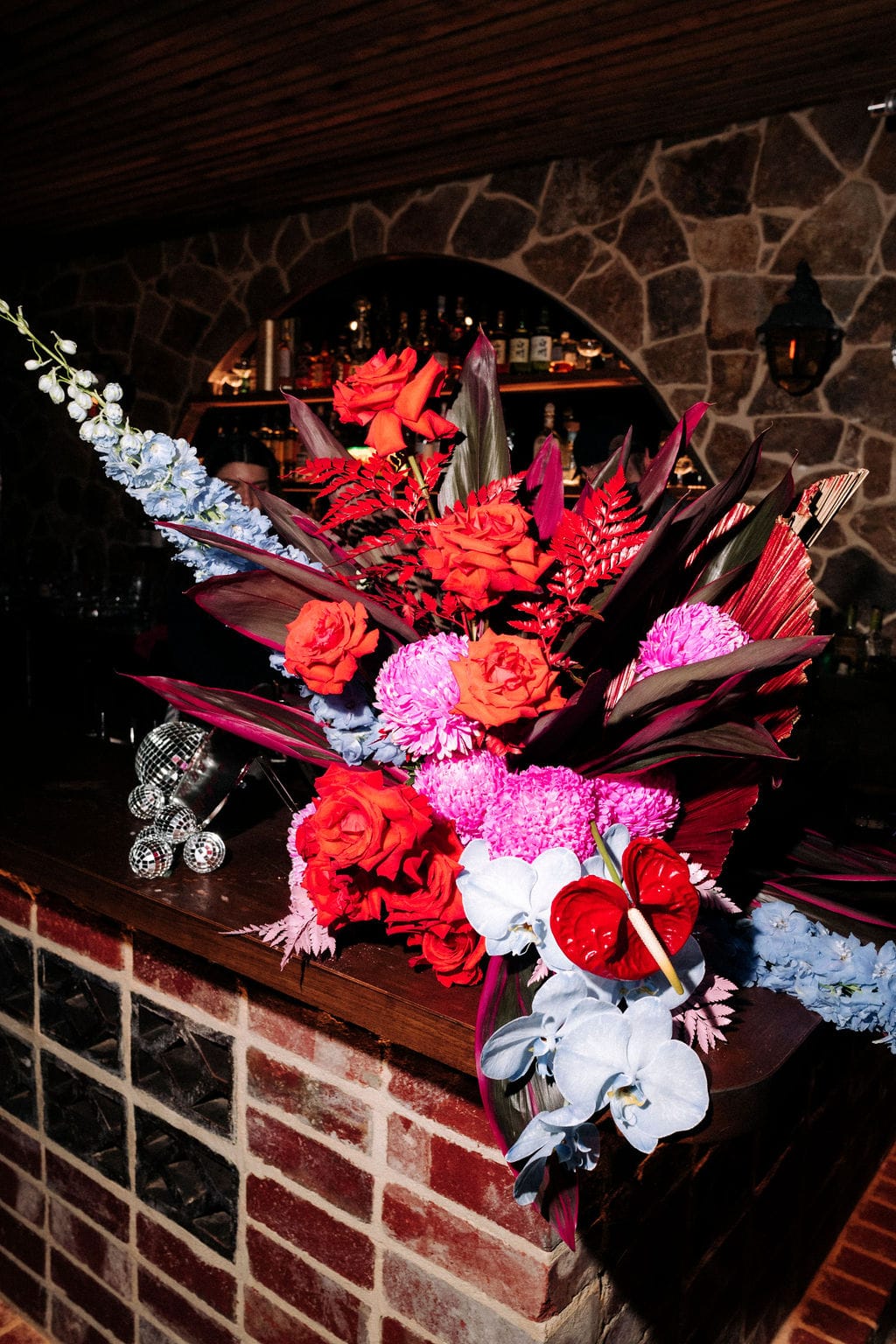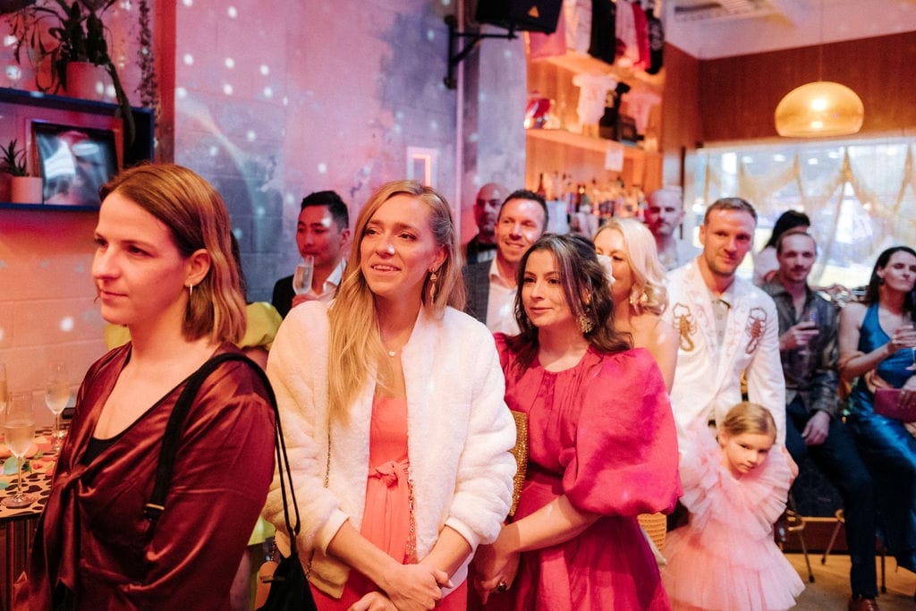 FAVE DETAILS “Our guests loved the custom [food and toiletries] packaging. Everything came together beautifully, from the ice cream truck, to the disco light installation, shag rug and custom cocktails that Brendan (friend and venue owner) designed for us. We were also so happy that everyone really leant in to the dress code.”