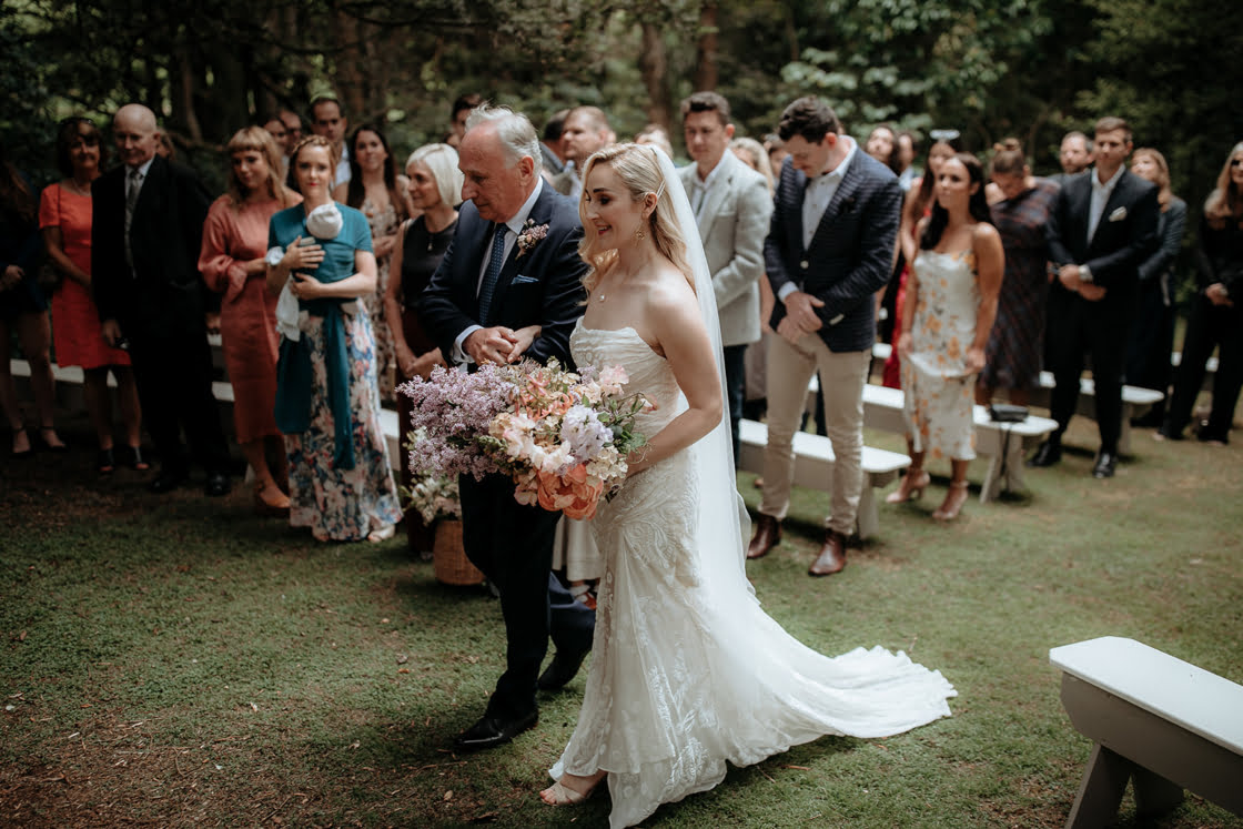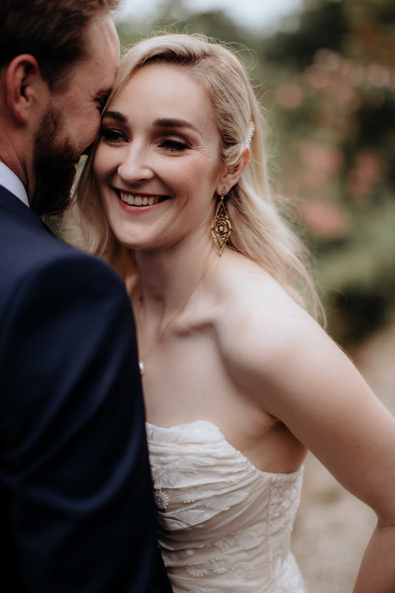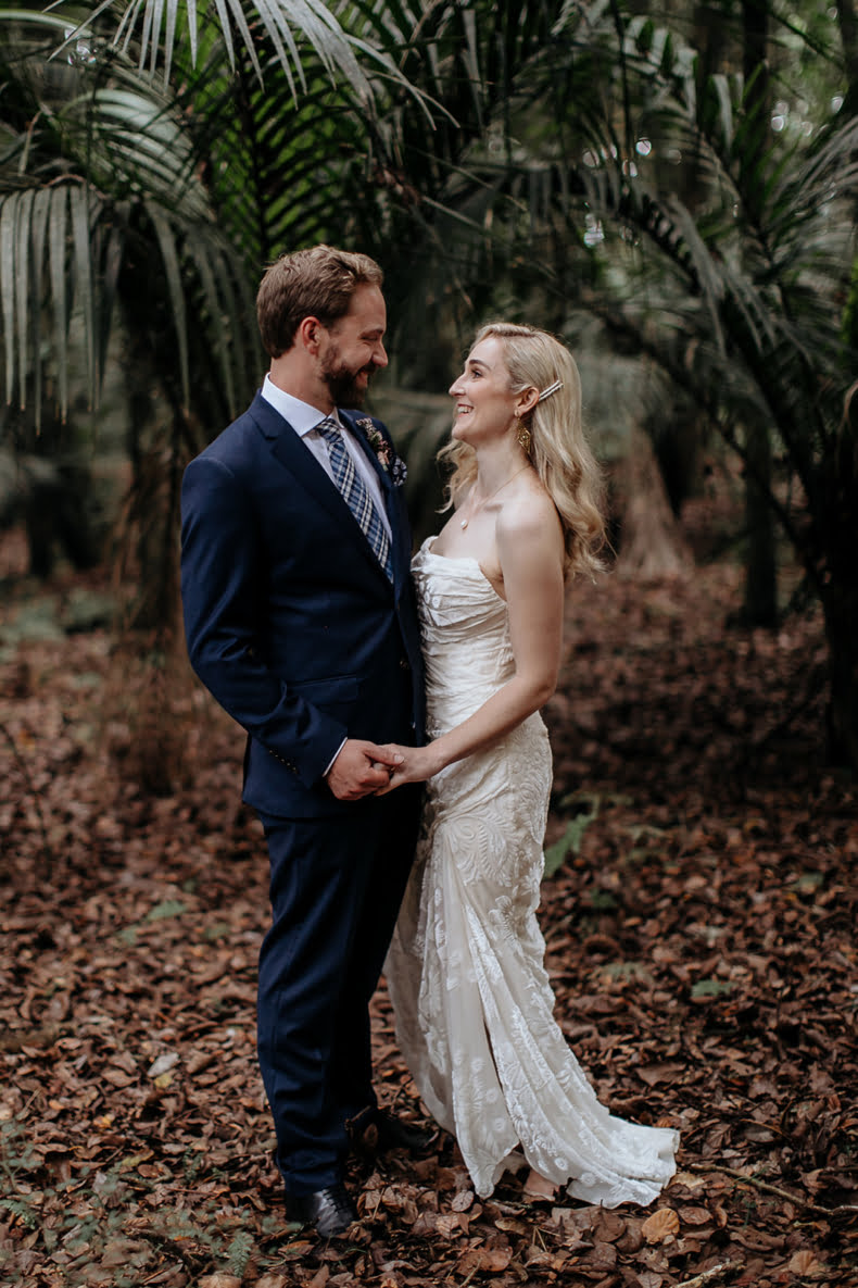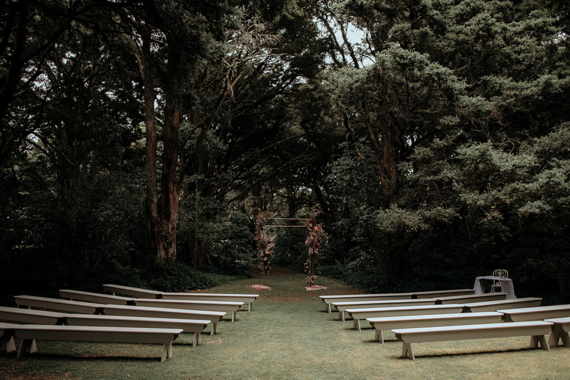 After a romantic proposal in Europe, Liv and Ash kept it local when they tied the knot at Auckland’s beautiful Hedges Estate. “We saw a few venues but fell in love with the woodland area of Hedges Estate,” Liv tells us. “It also reminded us of a few places we have travelled to in Europe, they have a great lawn, perfect for garden games and an orangerie perfect for the reception. We also wanted a venue with space and that would speak for itself, no decoration required.”