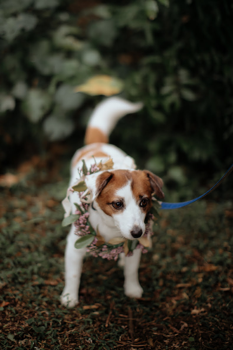 LITTLE LOL “We had Odie the dog and a couple of kids kept occupied in another room during the reception – they all broke free during the speeches and came tearing through the orangerie!”