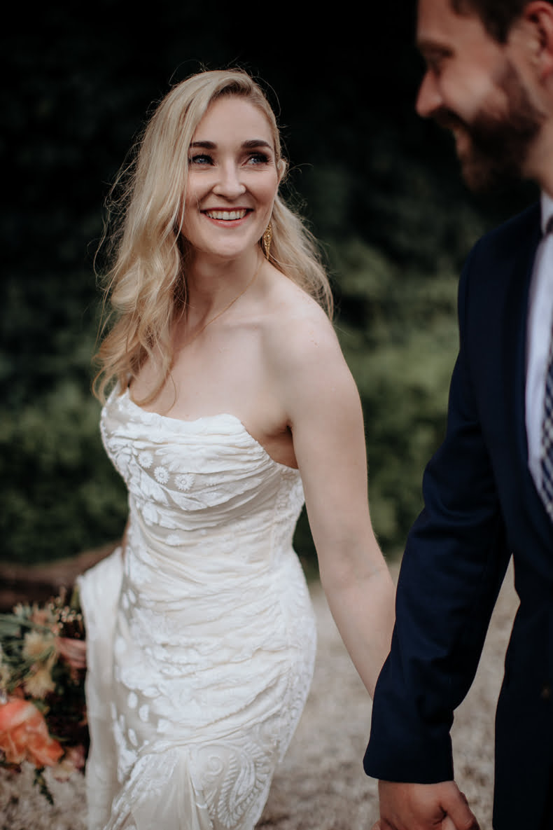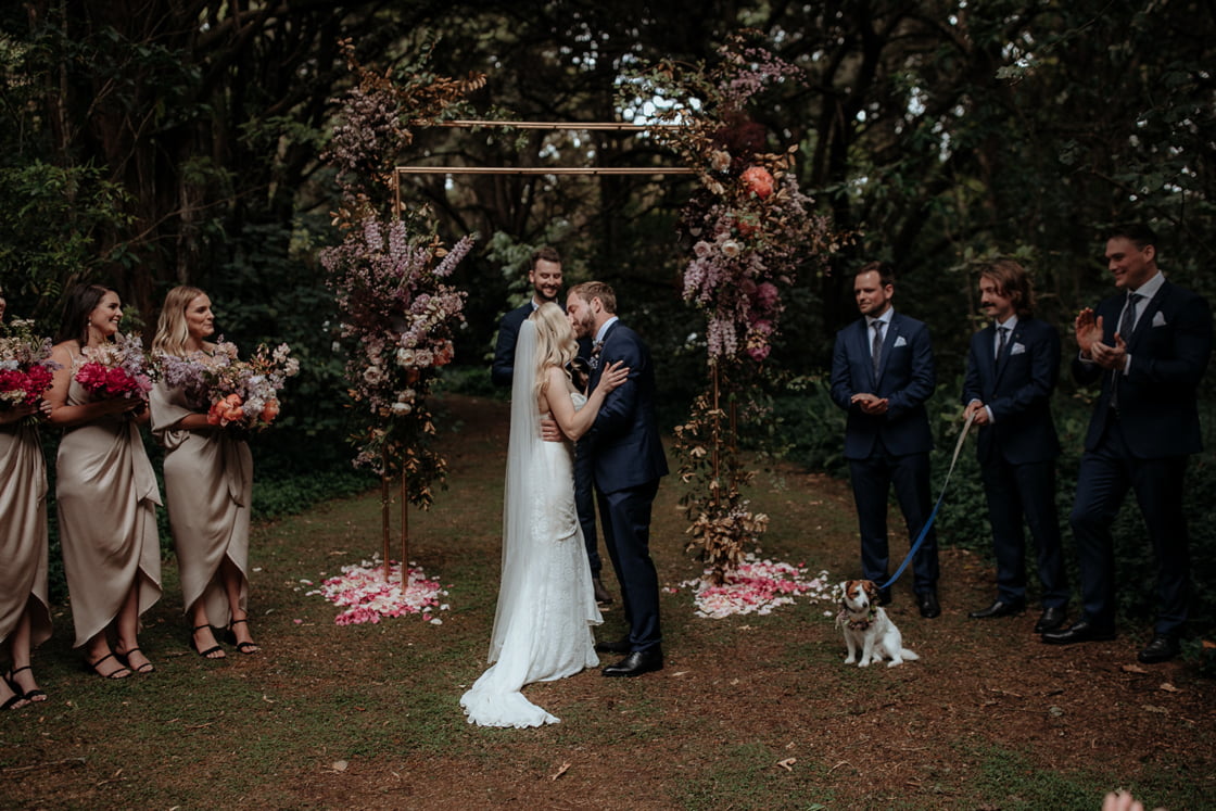 Their wish was the venue’s command and with a fair few bloomin’ great florals courtesy of the foliage queens at Leaf & Honey, a stunner of a Rue de Seine dress for the beautiful bride, plus sweet little dog Odie in tow, Liv and Ash totally nailed their dream day – and we have the epic pics to prove it, thanks to the talents of James at Chasewild.