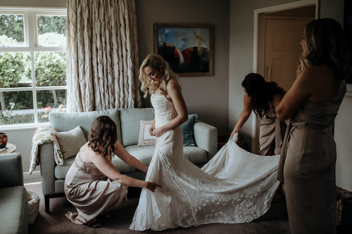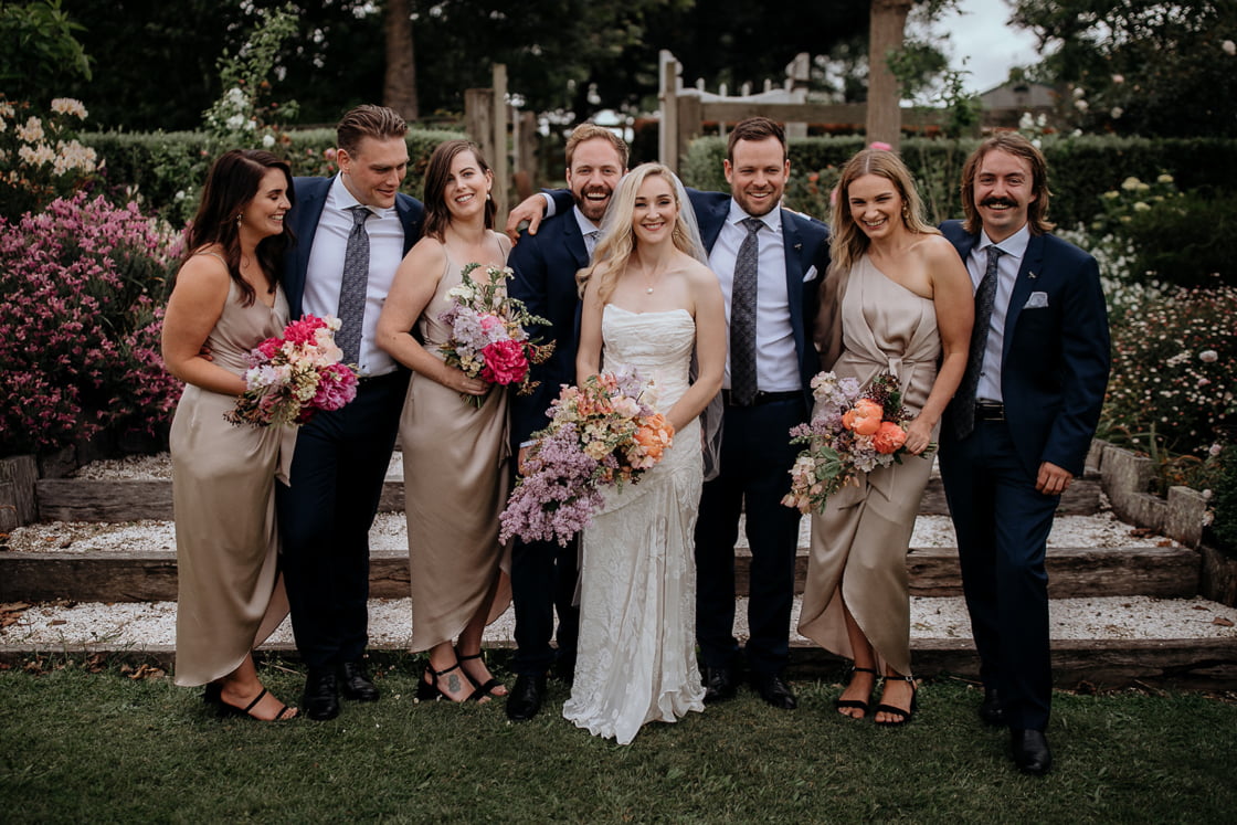 CONTRIBUTING VENDORS Photographer Chasewild Stylist Amanda Norwood Design Florist Leaf & Honey Stationery Bride Printer Orangebox Ceremony & Reception Hedges Estate Catering Good Food Kitchen Bar Cart Frankie’s Caravan Bar Cake The Caker Hire Items Royal Laboratorie Signage Bride, CustomStickers.co.nz Entertainment Villainy Celebrant Sam Galler Rings Naveya & Sloane THE BRIDE Gown Rue de Seine Flower crown Leaf & Honey Shoes Nicole Rebstock Accessories Zoe & Morgan, F&H Jewellery, Jems of Remuera Hair Natalie Dent Makeup Angela Stewart Bridesmaid dresses Shona Joy THE GROOM Suit, Shirt & Shoes Eurostyle Tie Working Style Barber Olette Groomsmen suits Eurostyle