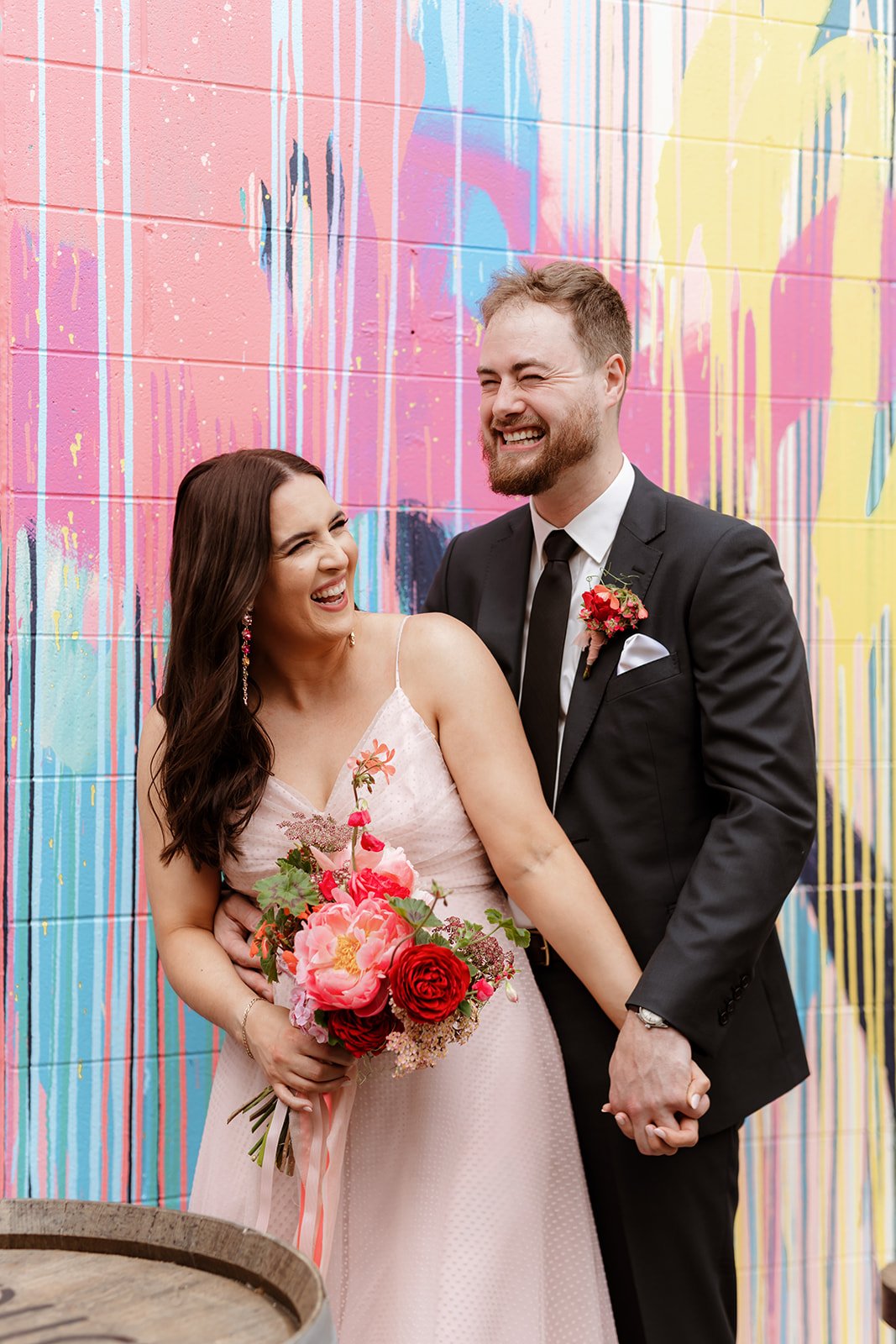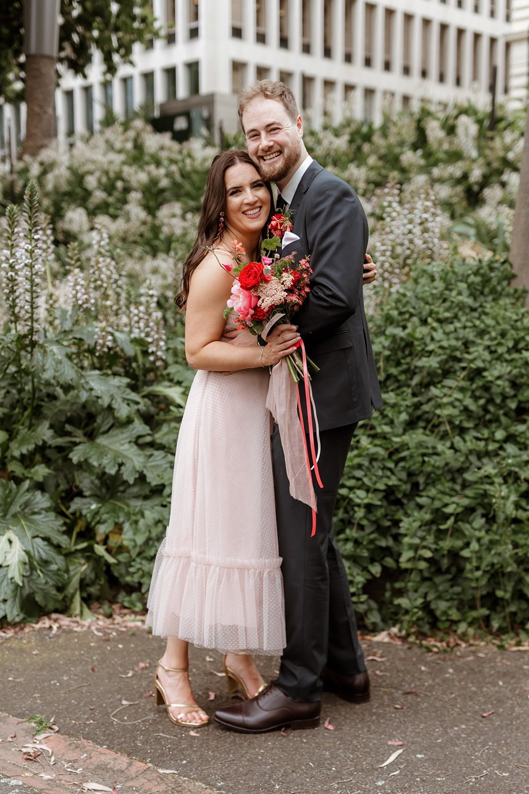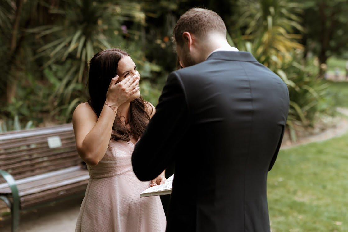 Liv and Michael had a few stop-starts on their way to the aisle, which is what led them to have a cheeky elopement before the BIG big day! “We had initially planned a surprise wedding at our ‘engagement party’ at Panama Dining Room and Bar (who we went with for our big wedding three weeks after our elopement, nothing but amazing things to say about them!),” they tell us. “COVID cancelled our party twice, one due to a snap lockdown, which was incredibly hard. After the second postponement, we decided to get married in a small ceremony in a Melbourne park, initially planned to be on our anniversary. However, COVID had other plans and we had to postpone that as well.”