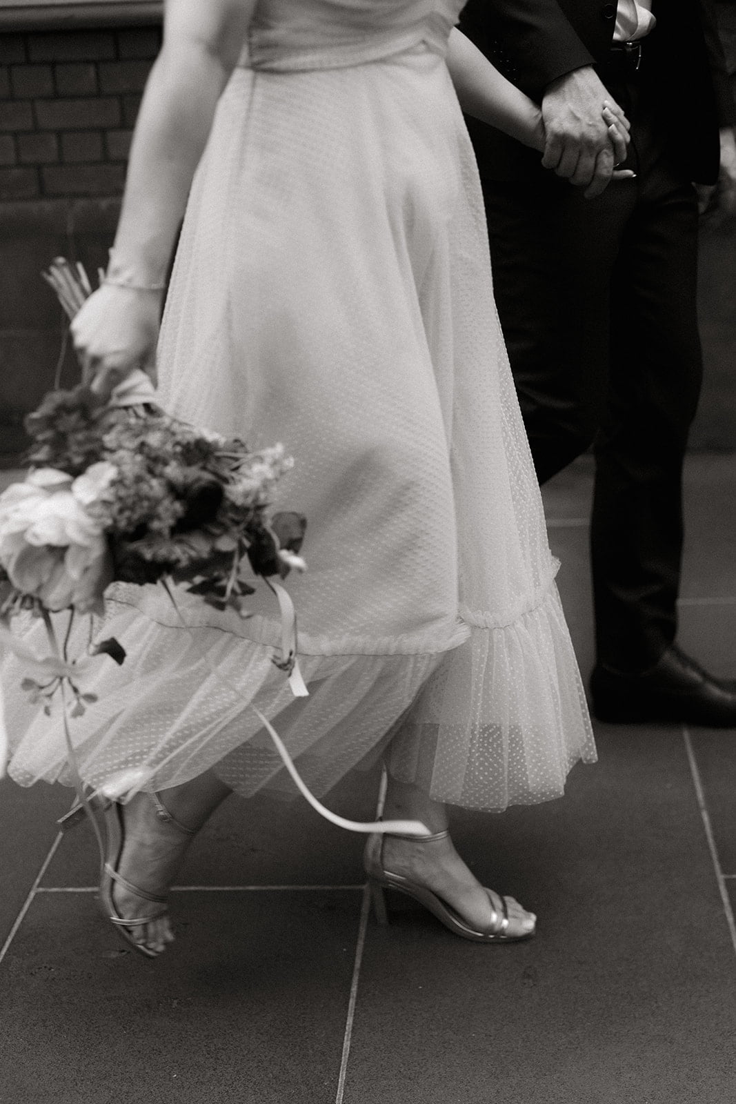 MEMORABLE MOMENT “We walked from QT Hotel Melbourne to Fitzroy gardens with Nikki and Isabelle, our photographer and celebrant, and were able to enjoy each other’s company as we anticipated something we had waited for for so long. Our ceremony was so special. As we just had immediate family present, we were able to soak up the moment together, and it felt like we were the only two people in the world. I loved that we got to have this small day, as it really took away the fear and anxiety that we wouldn’t be able to get married.”