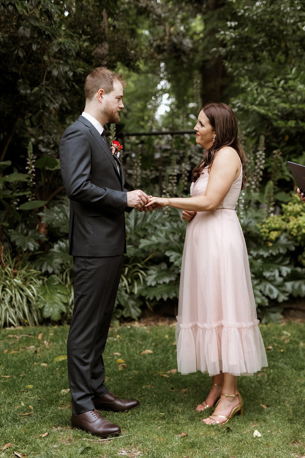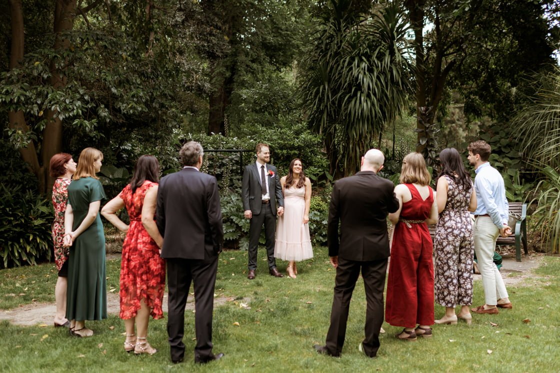 THE VENUE “We ended up going to Fitzroy Gardens a few weeks after lockdown lifted, and found the most perfect spot near the Dolphin Fountain. We knew we could get married anywhere, as we had my best friend Isabelle as our celebrant, so this felt incredibly right. As we had fewer than 50 guests, we didn’t have to pay for a park permit. We also contacted Parks Melbourne to ensure we had a few back-up plans if it rained, such as the Band Stand. For our reception, we wanted an easy and cool place to go to for dinner after the ceremony. Poodle was perfect for that, and we can’t wait to go back.
