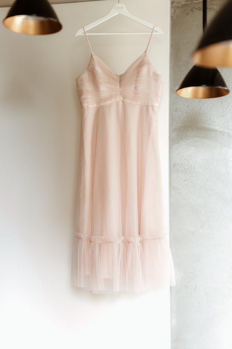 THE DRESS “I was so excited to wear my pink Zimmermann dress, which had originally been chosen as my ‘engagement party’ dress before I was to change into my wedding gown in our initial plans. I found it online, on sale, a few weeks after we got engaged. While I also had a wedding dress for our second date, I always loved the idea of being a little untraditional and expressing my personality. The midi length was so pretty, I felt wonderful in it.”
