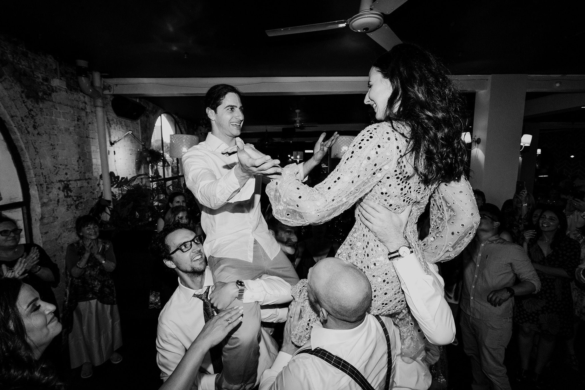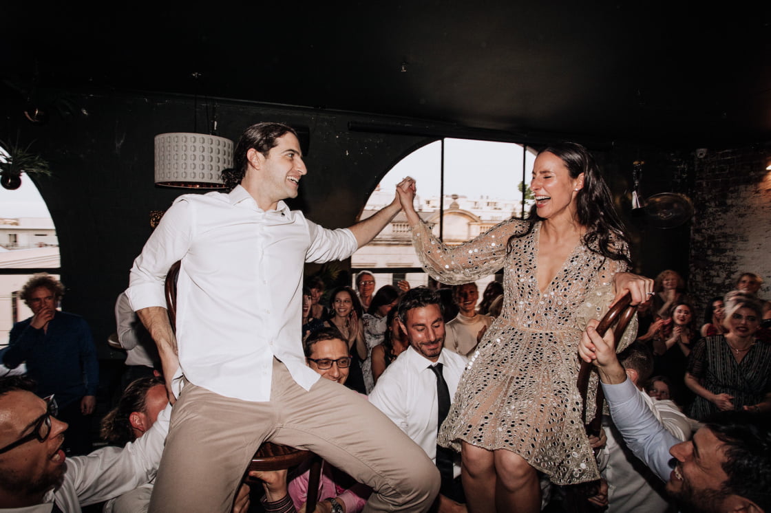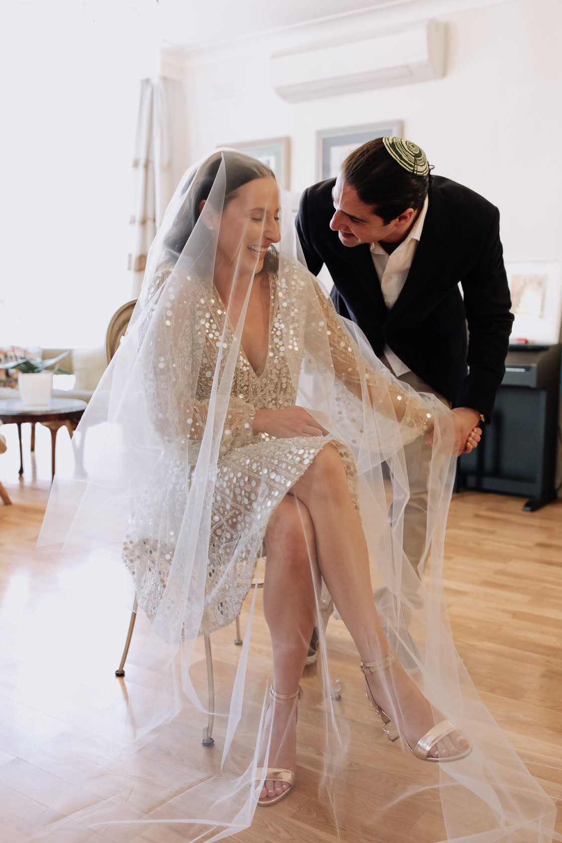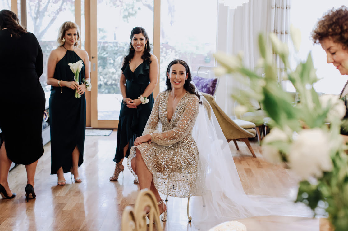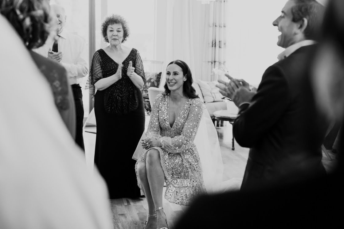 FAVOURITE MOMENT “In Jewish weddings, there is a special ceremony before the wedding ceremony where the bride and groom see each other for the first time (The Bedeken). David and I hadn’t seen each other for five days before our wedding day. David, and his parents, came to where I was getting ready. I had my parents and bridesmaids with me and our Rabbi, so it was a very intimate setting. I’ll never forget the feeling of seeing him, and the look on his face when he saw me for the first time. The most fun part of the whole day was definitely the Horas. The Hora is a set of dancing done at the beginning of Jewish weddings and the best way to start a party. I remember looking across and seeing David flying through the air, and at one point we were both hoisted up on chairs with all of our guests singing and dancing along. It was the best way to start the reception, everyone was so pumped and excited to party with us.”