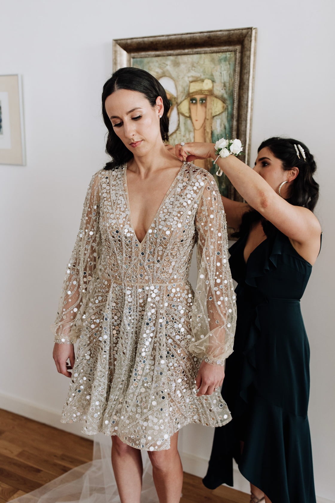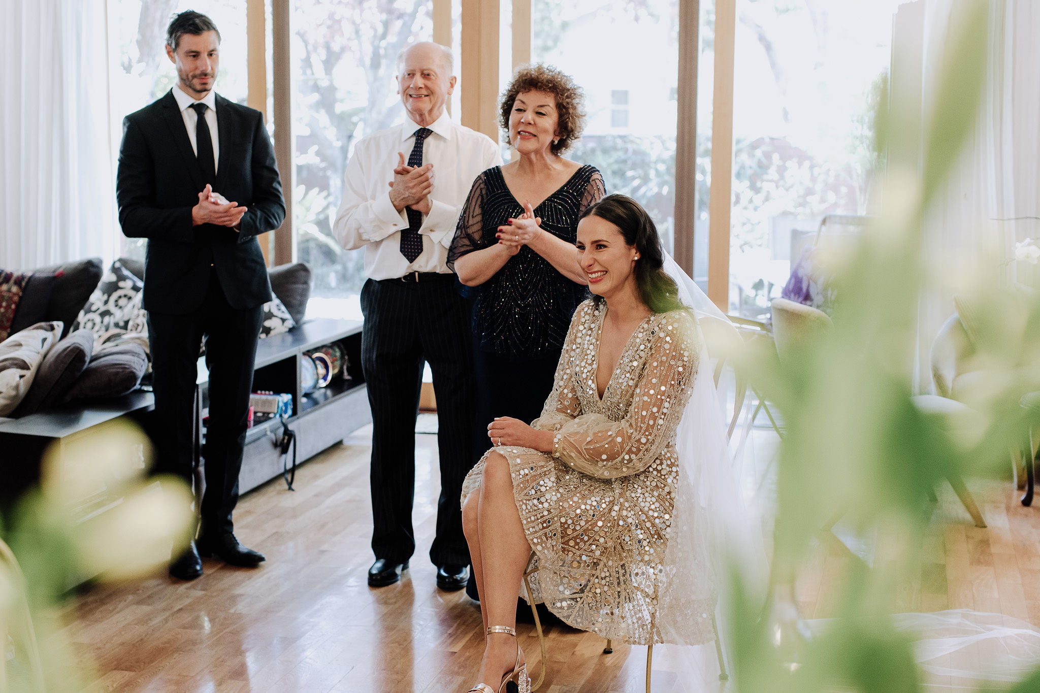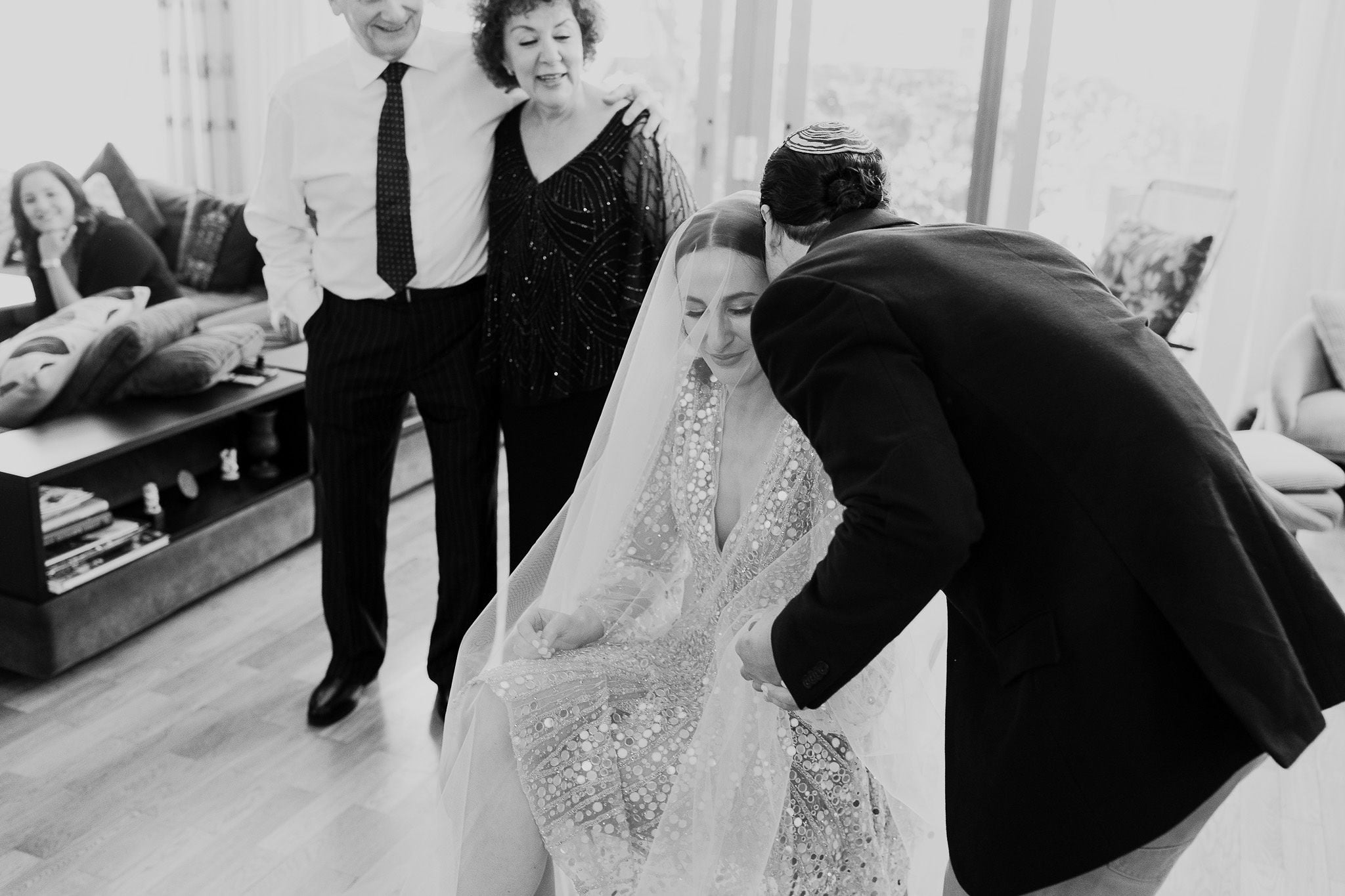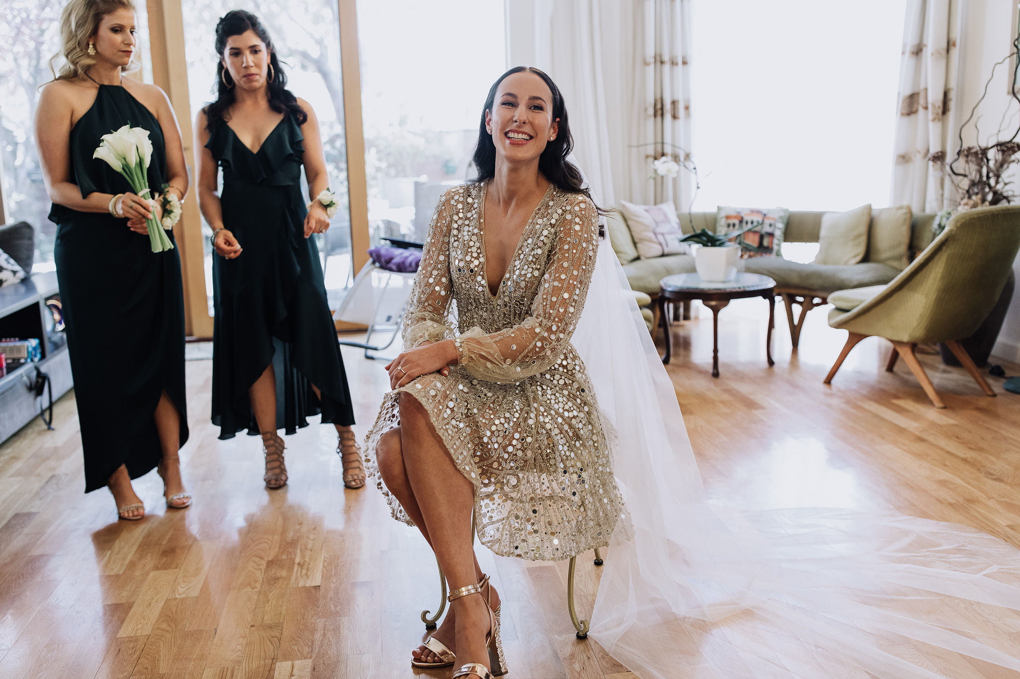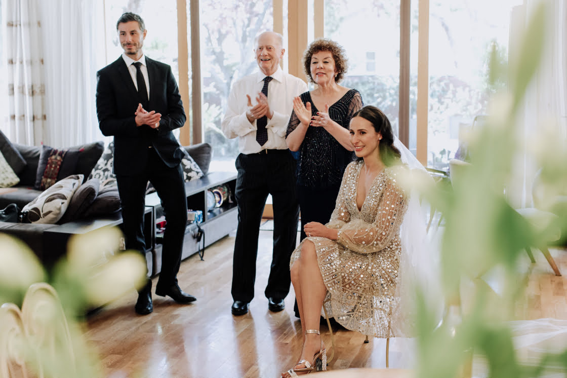 FAVOURITE MOMENT “In Jewish weddings, there is a special ceremony before the wedding ceremony where the bride and groom see each other for the first time (The Bedeken). David and I hadn’t seen each other for five days before our wedding day. David, and his parents, came to where I was getting ready. I had my parents and bridesmaids with me and our Rabbi, so it was a very intimate setting. I’ll never forget the feeling of seeing him, and the look on his face when he saw me for the first time. The most fun part of the whole day was definitely the Horas. The Hora is a set of dancing done at the beginning of Jewish weddings and the best way to start a party. I remember looking across and seeing David flying through the air, and at one point we were both hoisted up on chairs with all of our guests singing and dancing along. It was the best way to start the reception, everyone was so pumped and excited to party with us.”