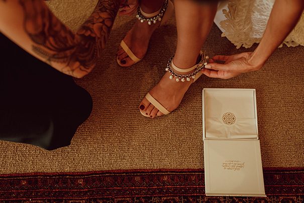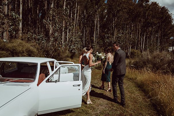 Raunchy dance moves, cake cutting and garter tossing are nothing compared to the antics that took place at Loren and Matt’s reception (this story was first featured in issue 18). Thanks to good old Uncle David (a seasoned party animal), a round of ‘Flaming Assholes’ was the go, making for one wild night. “It usually happens at my family’s New Year’s gatherings. You strip off to your underwear, tuck a length of toilet paper into your undies, set it on fire and run. The person who gets the furthest before the paper burns out wins. Guests were lining up to take part but unfortunately, there was a fire ban and (amongst her own laughter) the venue manager Claire had to shut it down.”