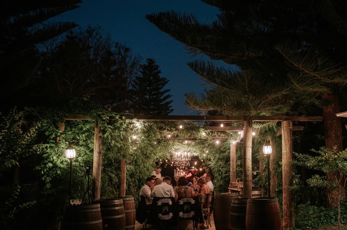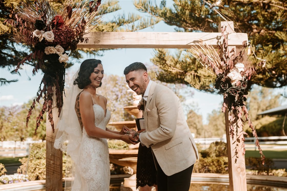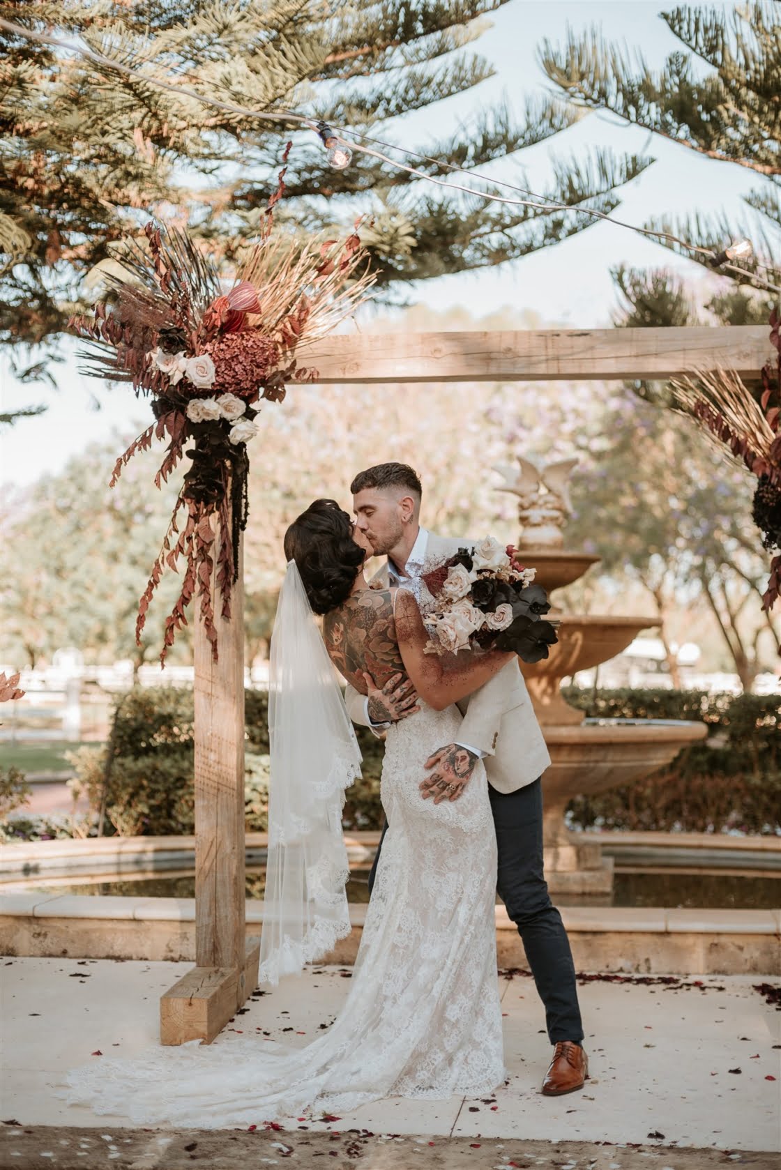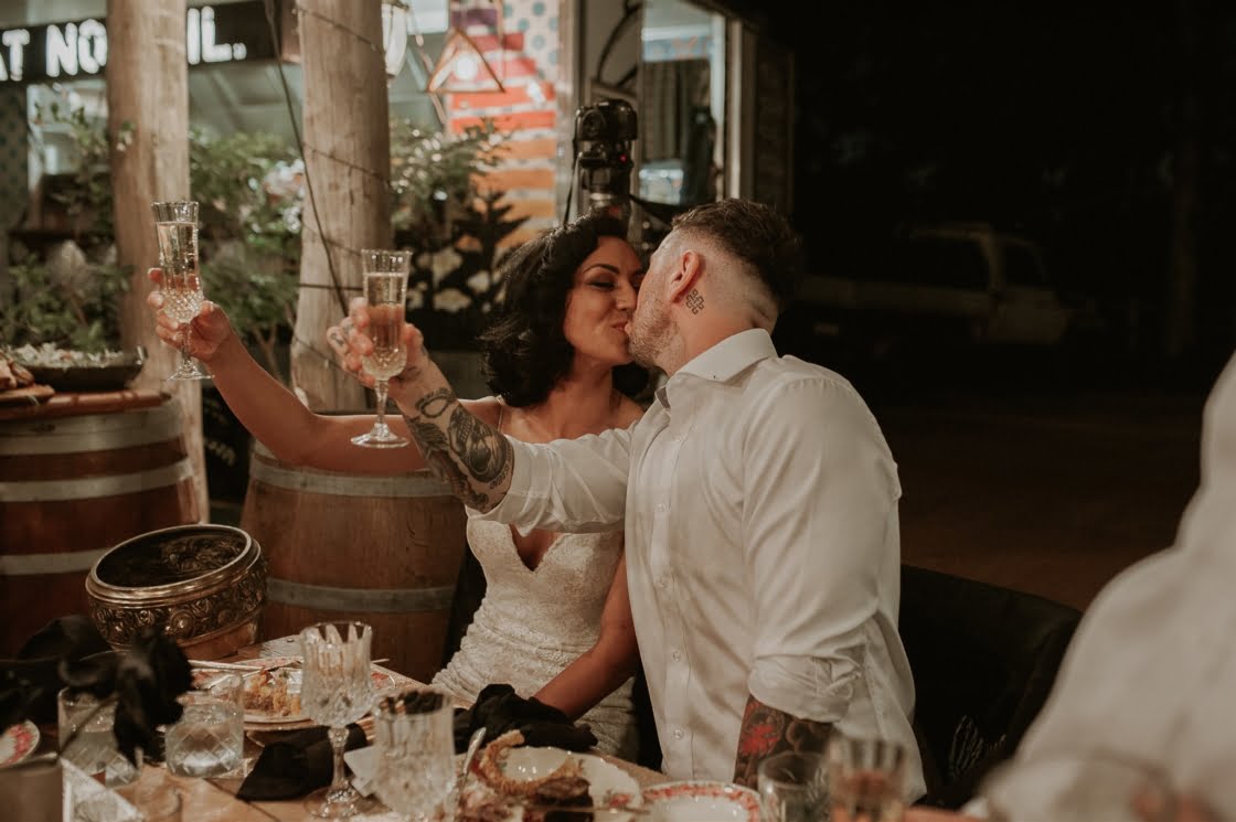 THE INSPO “Our vision completely represented our everyday vibe. It incorporated our love for vintage and antique furniture, traditional tattoo/ Japanese art and fashion. We both love hosting events and bringing people together to create a cool vibe. We knew our wedding had to be an epic celebration full of street food, endless desserts, flowing Amaretto cocktails and the heaviest gangster beats the Swan Valley has ever heard!”