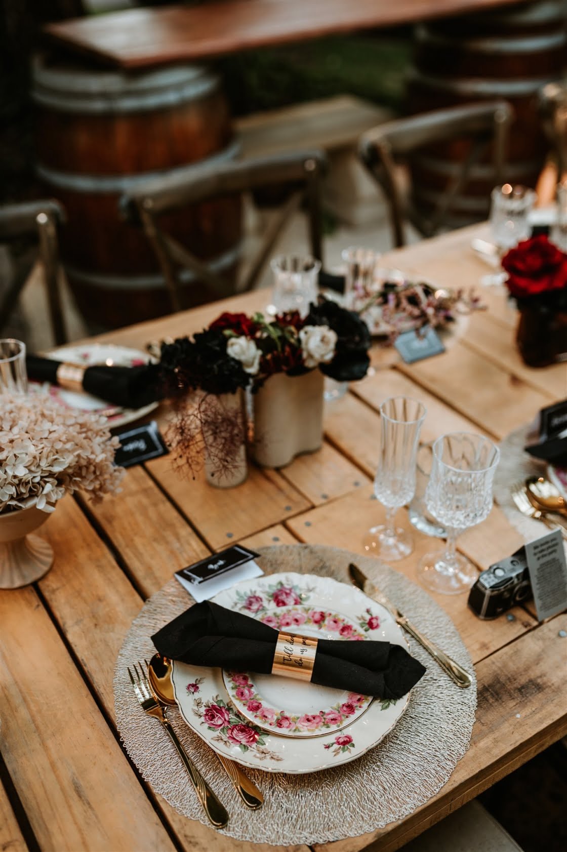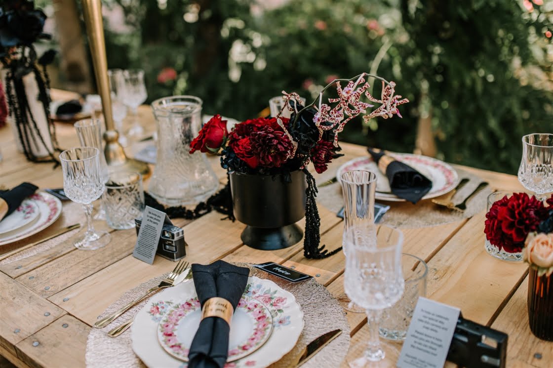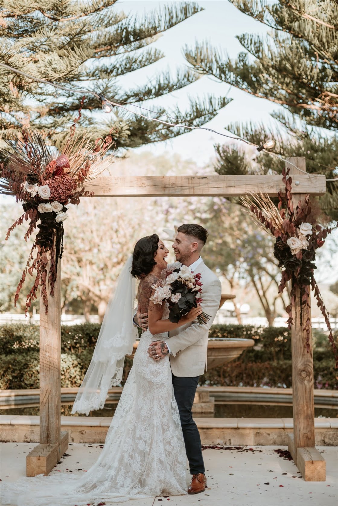 THE INSPO “Our vision completely represented our everyday vibe. It incorporated our love for vintage and antique furniture, traditional tattoo/ Japanese art and fashion. We both love hosting events and bringing people together to create a cool vibe. We knew our wedding had to be an epic celebration full of street food, endless desserts, flowing Amaretto cocktails and the heaviest gangster beats the Swan Valley has ever heard!”