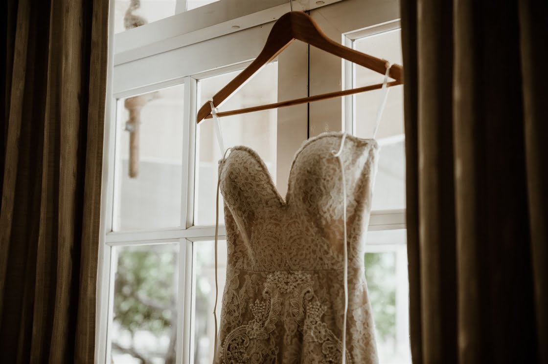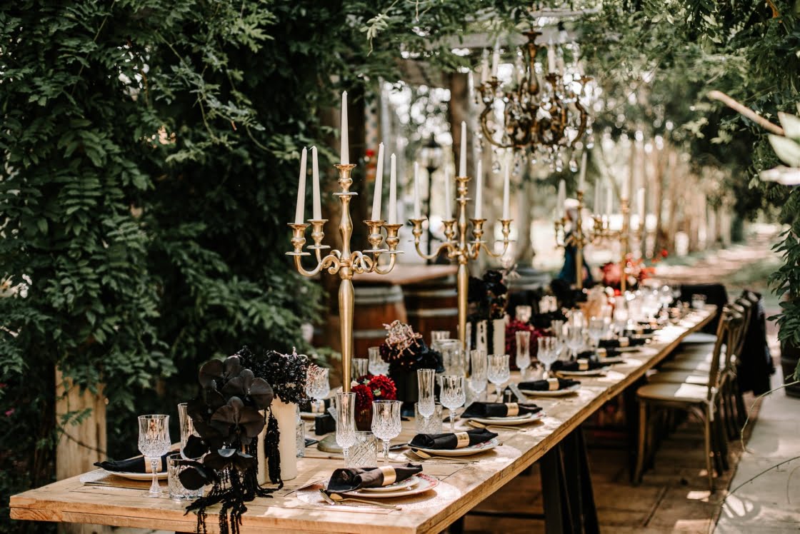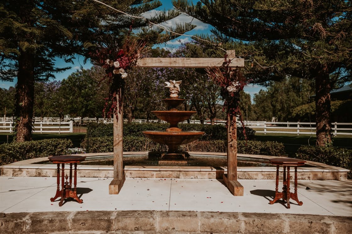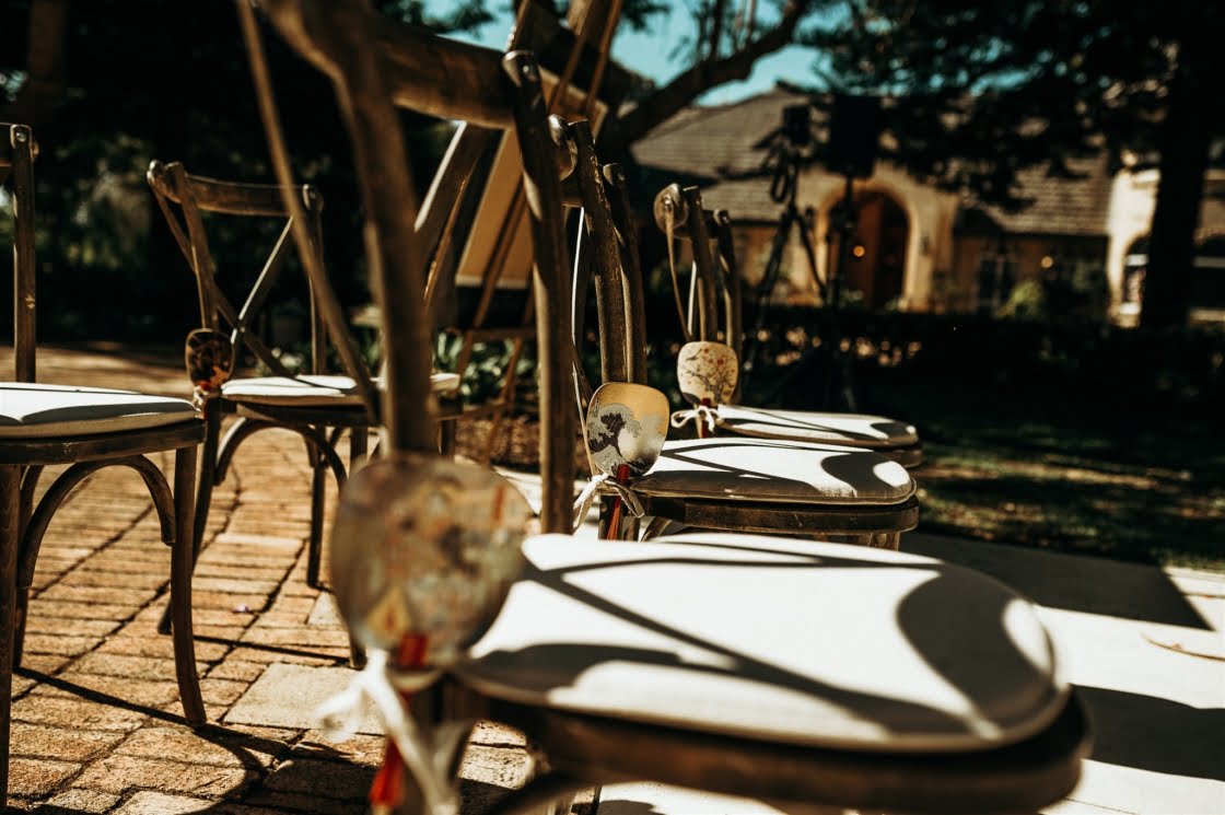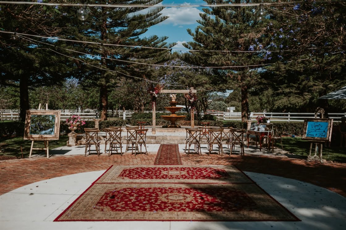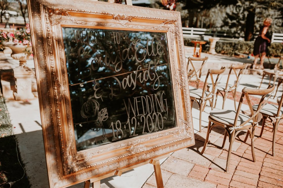 THE VENUE “We fell in love with the first venue we visited – BrookLeigh Estate. It had a perfect little secret garden courtyard that was lush in greenery and flowers. Believe it or not everything was planned and purchased within the first two weeks of booking our venue [and] we spent 12 hours the day before setting up furniture, decorations, lighting and table settings. We wanted to make sure every detail was perfect.”