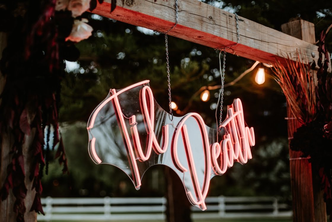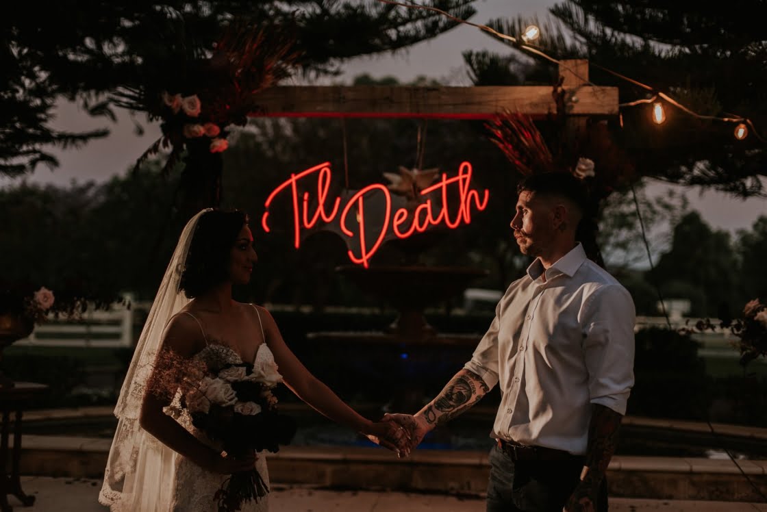 Ok, you guys, you don’t want to miss this one! In the bride’s own description, “To sum up our vibe- it was dark, moody and edgy… Picture nightmare before Christmas- wedding edition.” If that doesn’t make you want see the rest of this wedding, we don’t know what will! So scroll down for all the dirty details and pics from photographer, Ring & Veil…