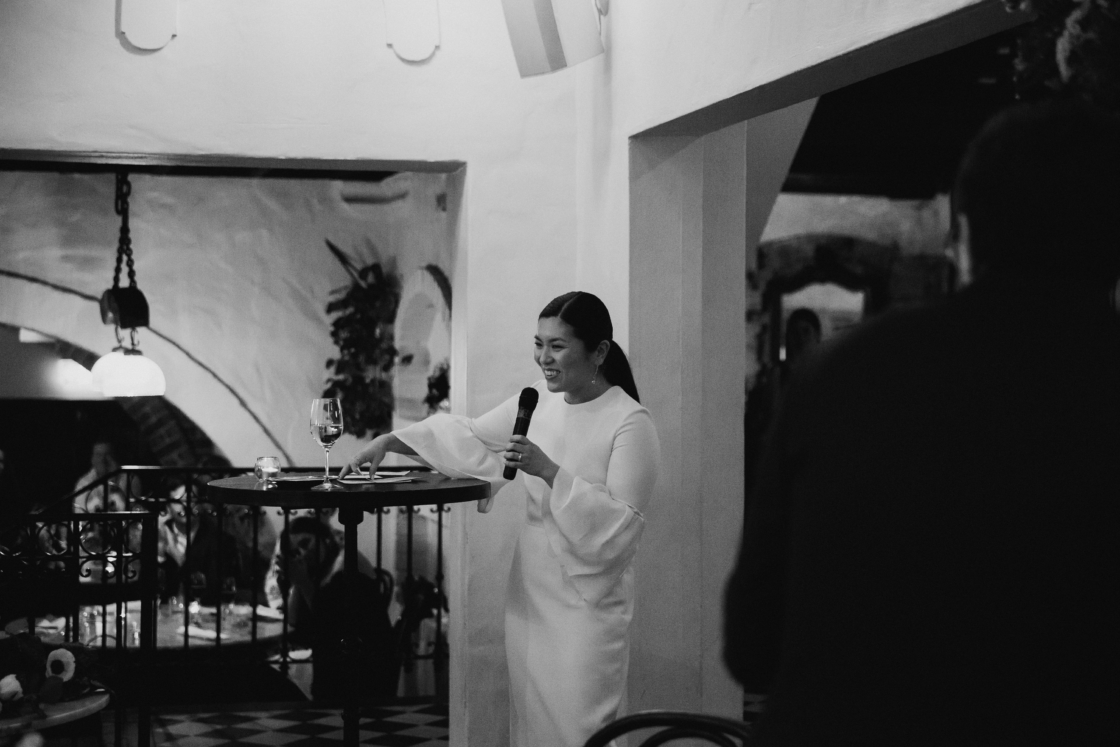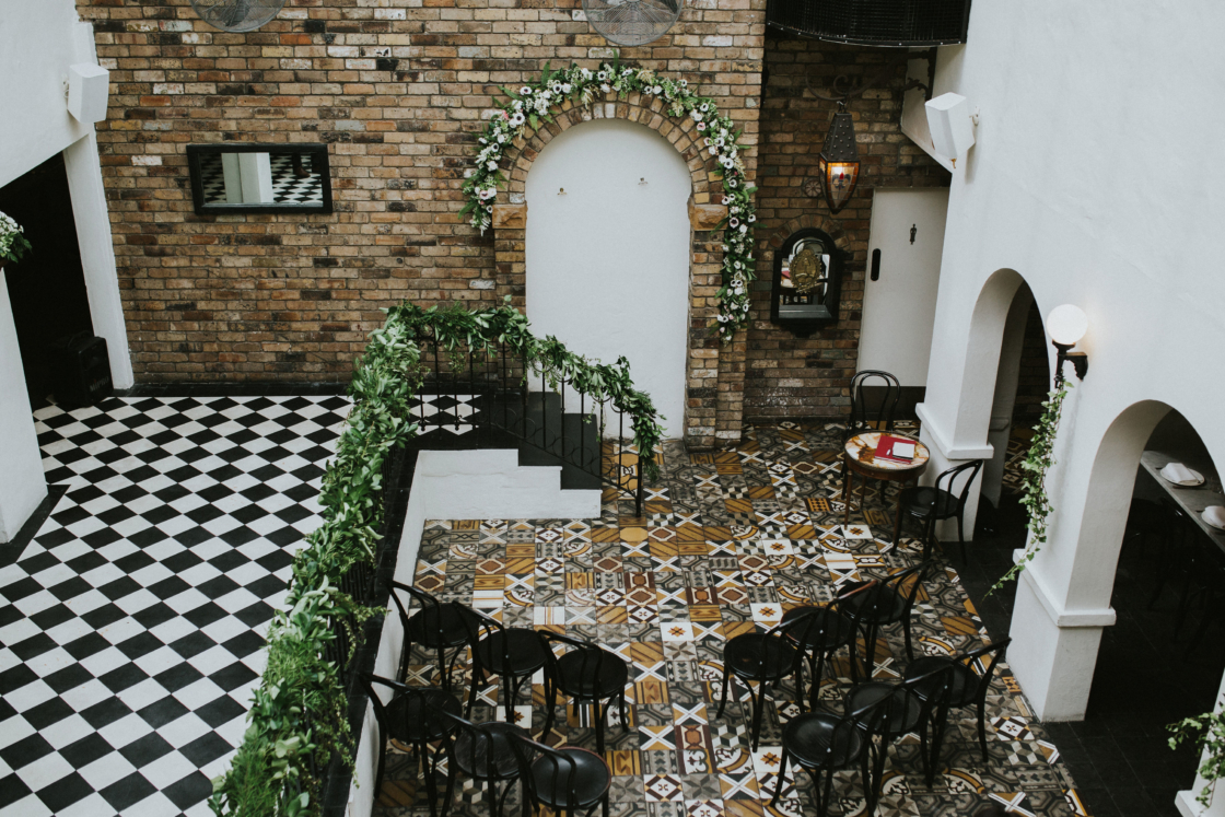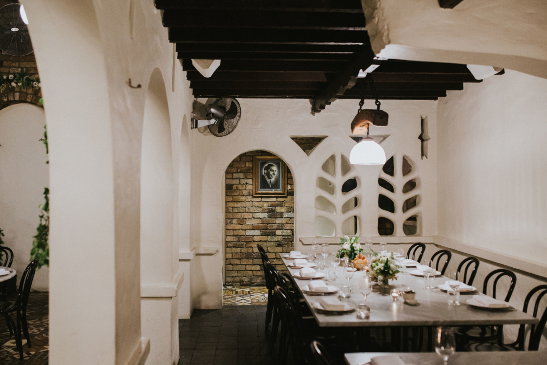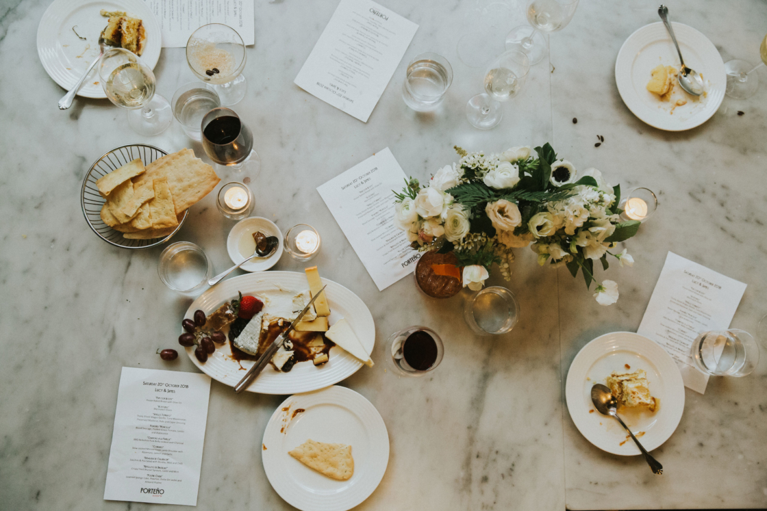 THE VENUE “First and foremost, we wanted a venue with amazing food. Porteño, with its two chefs hats and as one of our favourite restaurants, was a no brainer. What really blew us away was how breathtaking the Porteño Events space was. We lived a block away when it used to be a restaurant and could attest to the amazing food, but being able to take in all the design details during our walkthrough (the tiles, light installations, high ceilings and cosy corners) meant that we were seeing the space in a whole new dimension.”