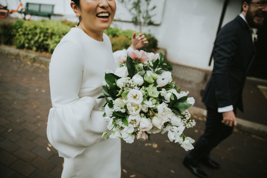 STANDOUT VENDORS “I can honestly say that all our vendors were exceptional. From Anna Turner, our photographer, who did recon in the streets of Surry Hills prior to our wedding day to find us all the best photo spots and who stayed an hour later than planned in order to capture each and every moment, to Kat Crossley, our florist of Petal & Fern who sent her husband to hand deliver the bridal bouquet and floral lapel pins to our hotel and who personally returned to the venue to arrange all the flowers into individual take-home bouquets for our guests, to Charis from Porteño, for whom nothing was ever too much trouble in the lead-up to our wedding and who managed each aspect of our logistics on the day with ease and grace.”