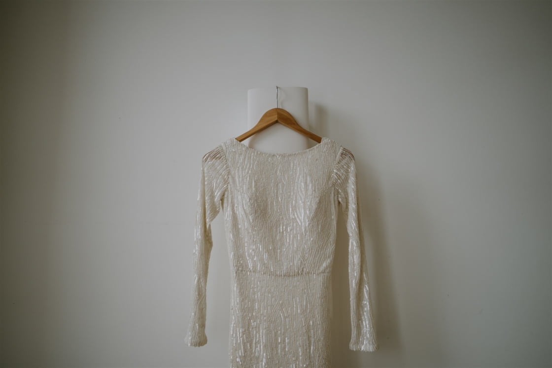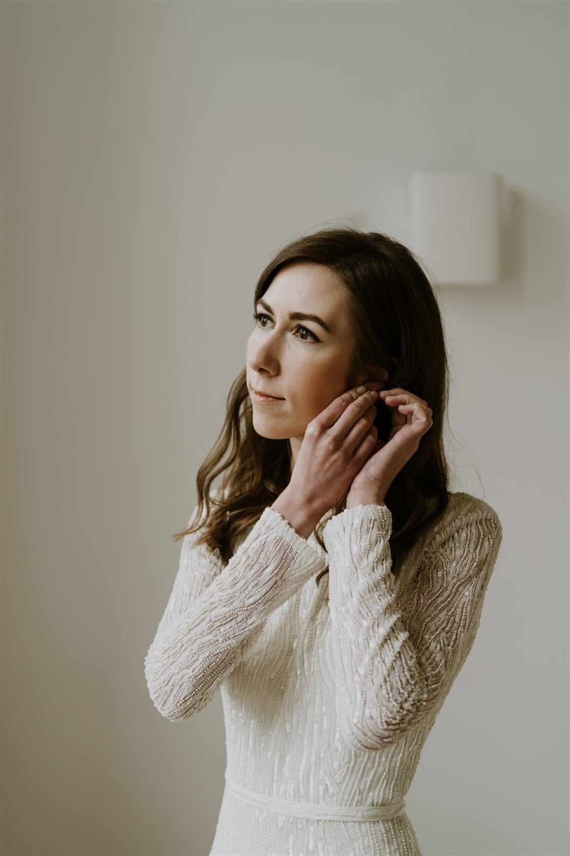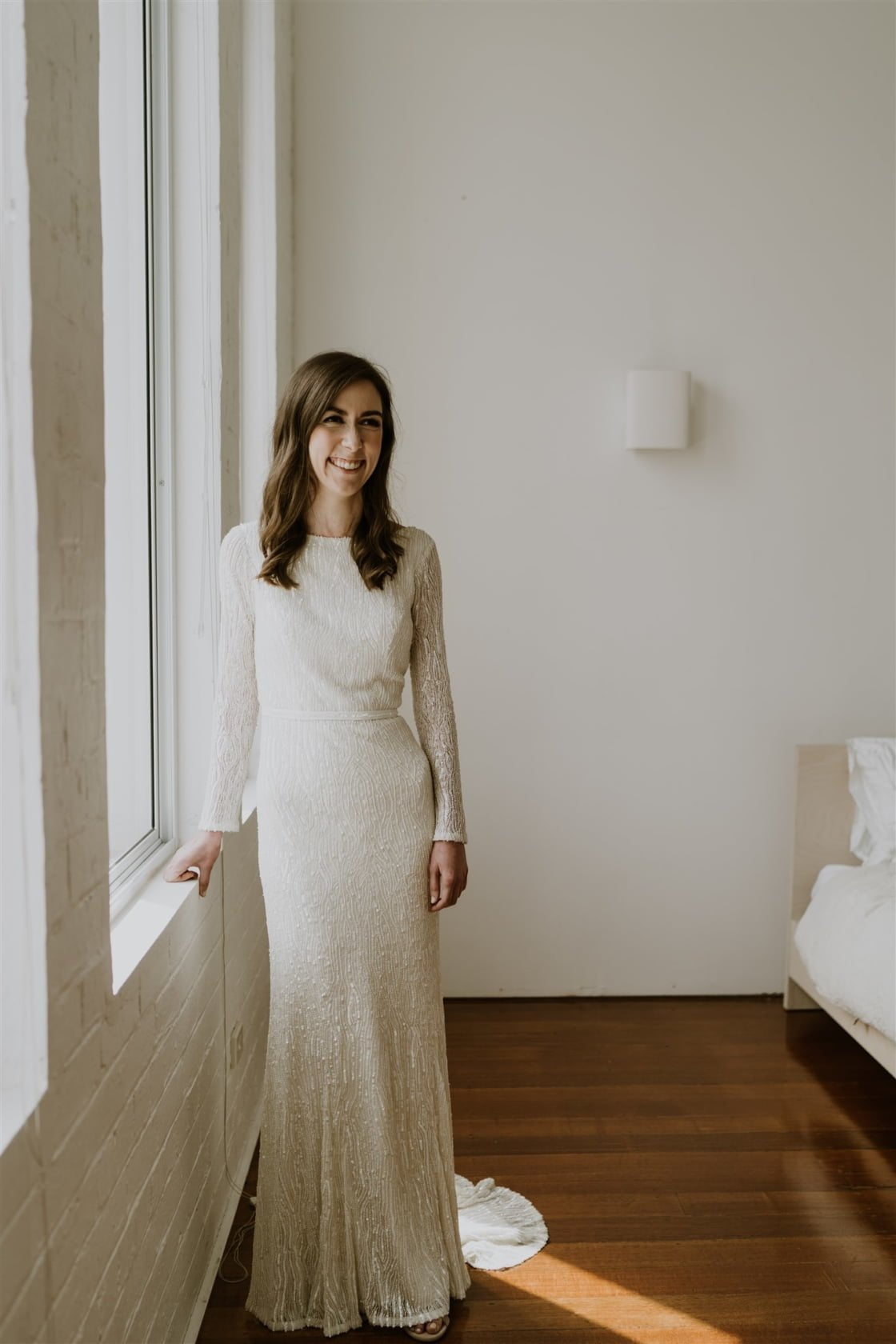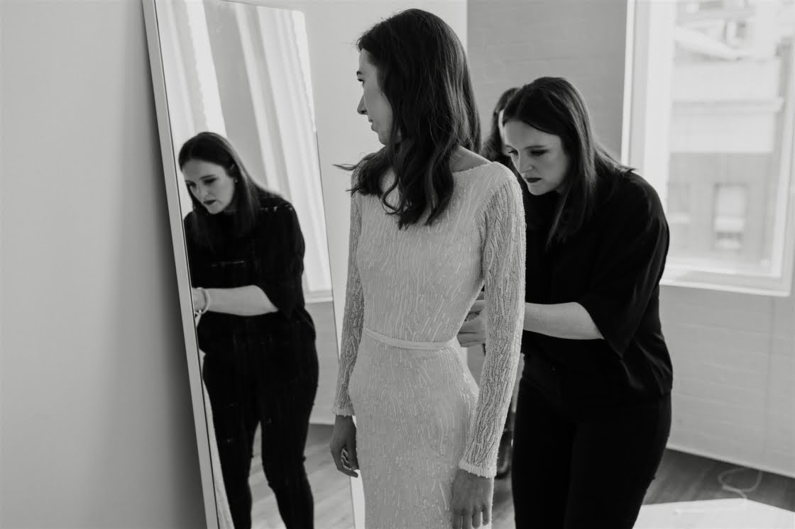 THE DRESS “My [Karen Willis Holmes] dress was the first one I tried on! I loved that I felt completely like myself in it despite the fact that a huge amount of my everyday wardrobe is black. I love the 1960’s bridal looks of Jane Birkin and Priscilla Presley, so right from the start, I knew I wanted long sleeves. I tried on some different styles, but nothing else came close.”