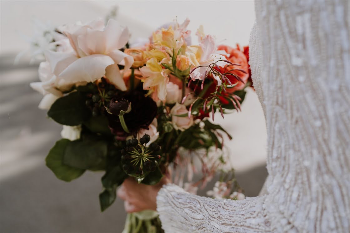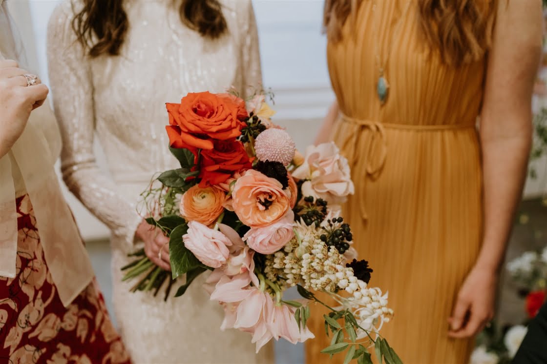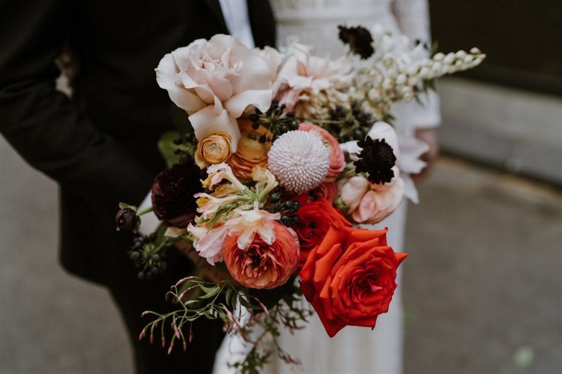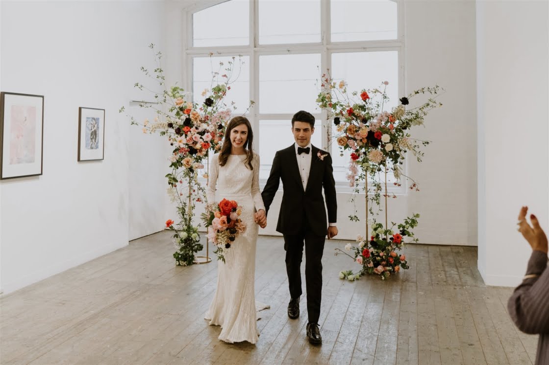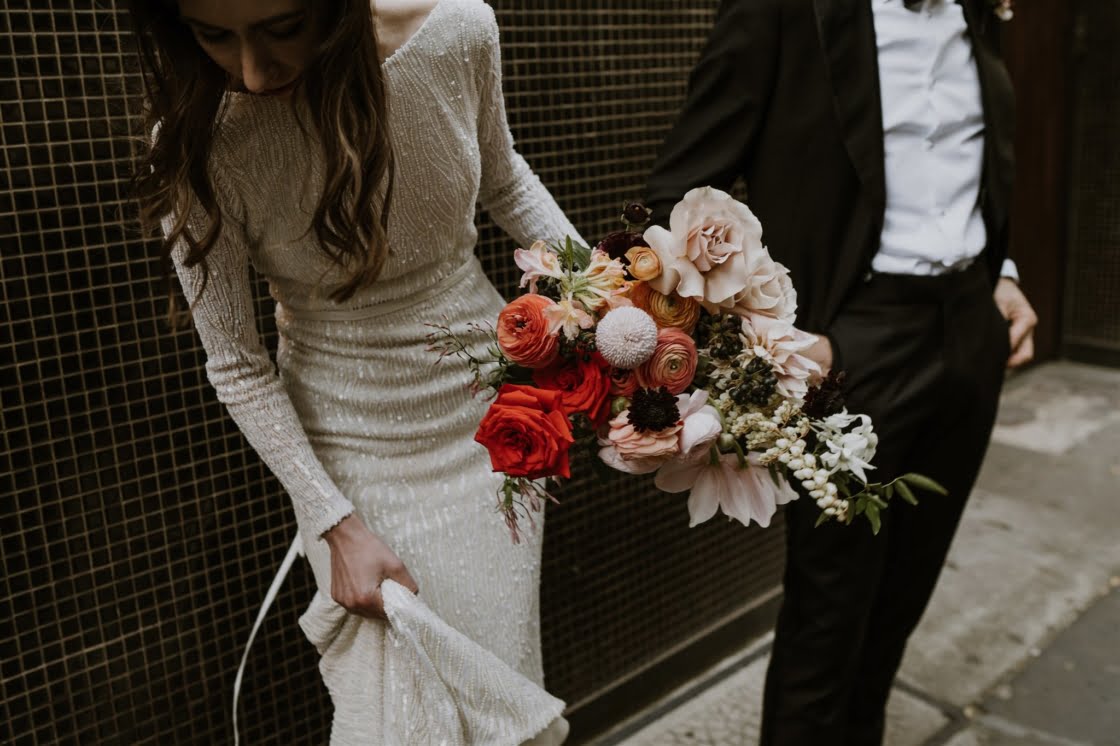 Lucy and Manuel, both engineers, brought their project management skills to the fore when it came time to coordinate their big day. Pomp and Splendour were the masterminds behind the bright and bold florals whilst Miss Ladybird Cakes applied her wizardry to concoct the couples triple-tiered delight (Elderflower, lemon and champagne flavoured FYI). Donning a long-sleeved Karen Willis Holmes gown Lucy also looked the part. Capturing all this goodness on camera and film was the incredible Elsa Campbell and Nathan Kaso. We can assure you that getting in touch with any of these vendors will result in maximum delight so to check out their work for yourself, get scrolling…
