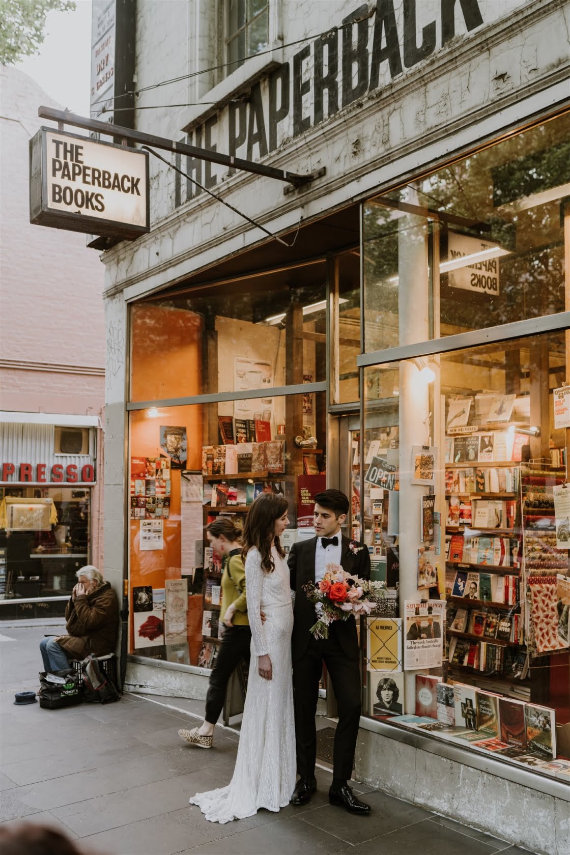 CONTRIBUTING VENDORS Photographer Elsa Campbell Cinematographer Nathan Kaso Weddings Florist Pomp and Splendour Stationery Paperless Post Venue Forty Five Downstairs Catering Ed Dixon Food Design Cake Miss Ladybird Cakes Signage Michael Byrne (friend) Printer Melbourne City Print Entertainment (Ceremony) Brothers in Harmony (Reception) Juke Box Racket Celebrant Melissa Polimeni Rings Hugh Plasto BRIDE Dress Karen Willis Holmes Loungewear Matter Prints Shoes Stuart Weitzman Earrings Les Nereides Hair Prophecy Hair Salon Makeup Dusk Bridal GROOM Suit & Shoes Suit Supply Suspenders David Jones Bow Tie Tom Ford Cufflinks Declic Barber Men’s Biz