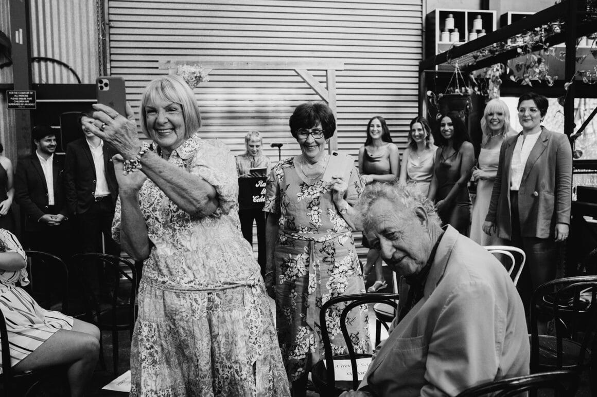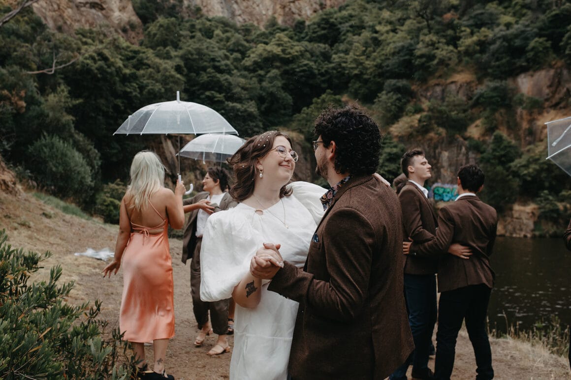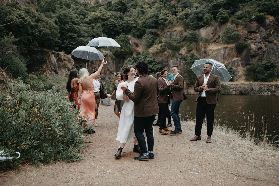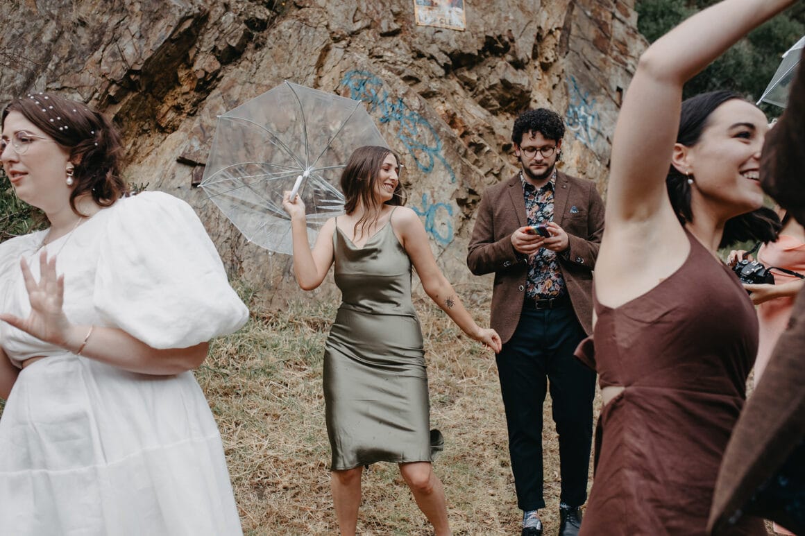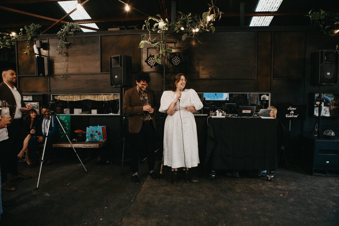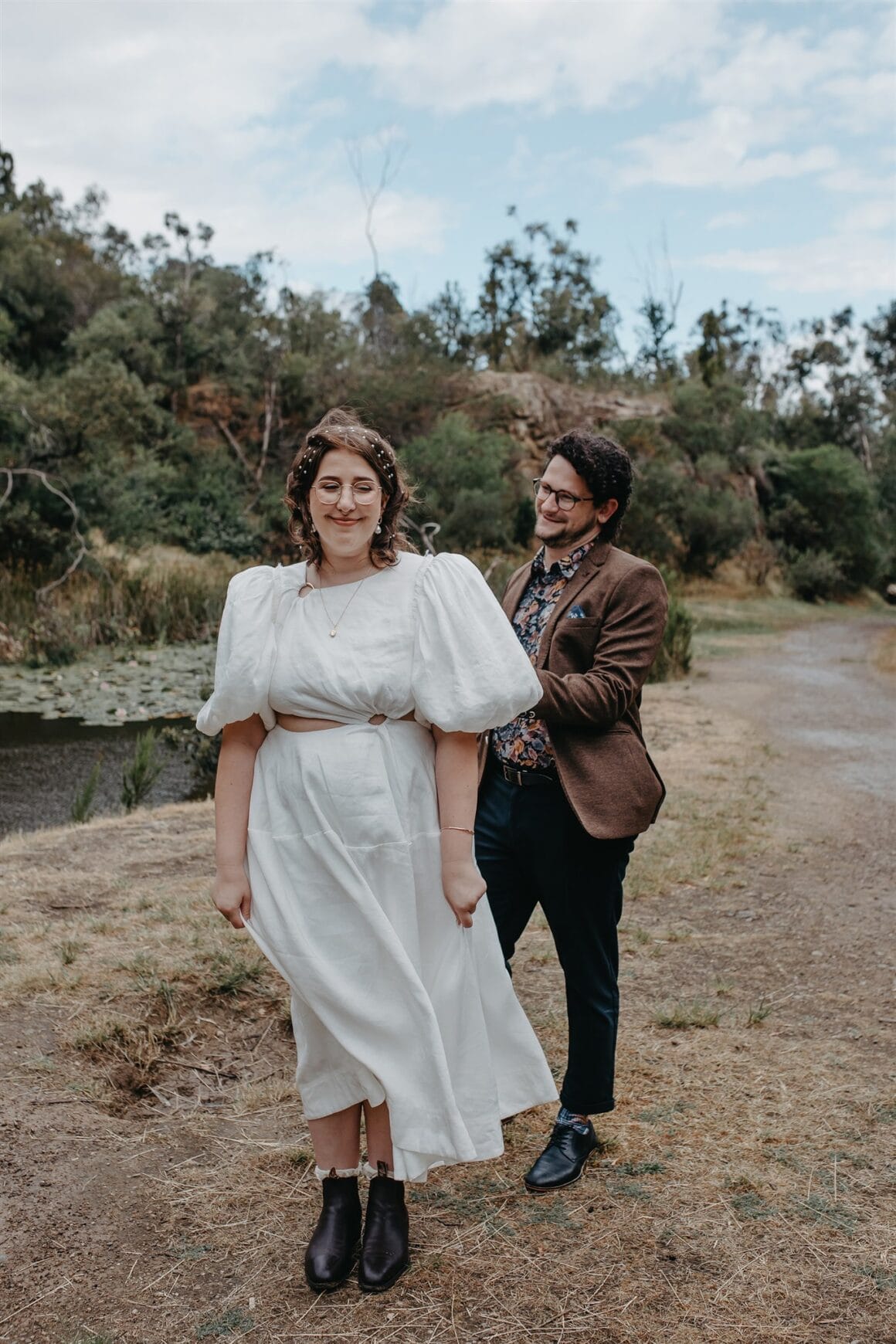 CONTRIBUTING VENDORS Photographer Lovegood Images Cinematographer Anna Jameson Florist & Stationery DIY Venue Commonfolk Café Food Trucks Gather Round Pizza Wagon Other Desserts Family Lighting & Sound Hire Clear Systems Celebrant & Entertainment Renee the Celebrant Rings Averie Jewellery via Etsy (Groom) & A Gilded Leaf (Bride) THE BRIDE Bridal Gown Designer Aje Shoes R.M. Williams Accessories Mejuri Hair & Makeup The Distinctive Dame Bridesmaid Dresses Beginning Boutique, Bec + Bridge Bridesmaid Shoes Chloe & Current Mood via Dolls Kill THE GROOM Jacket & Pants Politix Shoes Trent Nathan Socks Peggy and Finn Watch Treehut Grooming Drunken Barber Groomsmen Jackets Politix