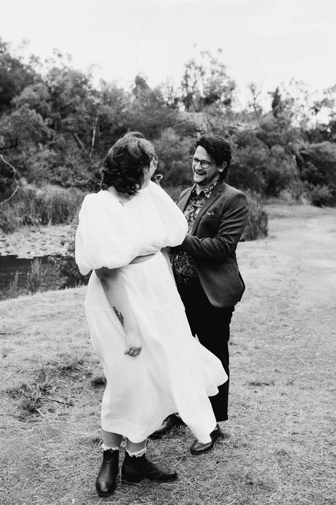 WE’RE GLAD WE… “Had everything at the one venue and had no gap between ceremony and getting straight into dancing/reception! [We] needed to do a ‘first look’ and photos with the bridal party pre-wedding as a result, but that was also fantastic. Nipping out for some golden hour photos before re-entering for our first dance was also a big highlight.”