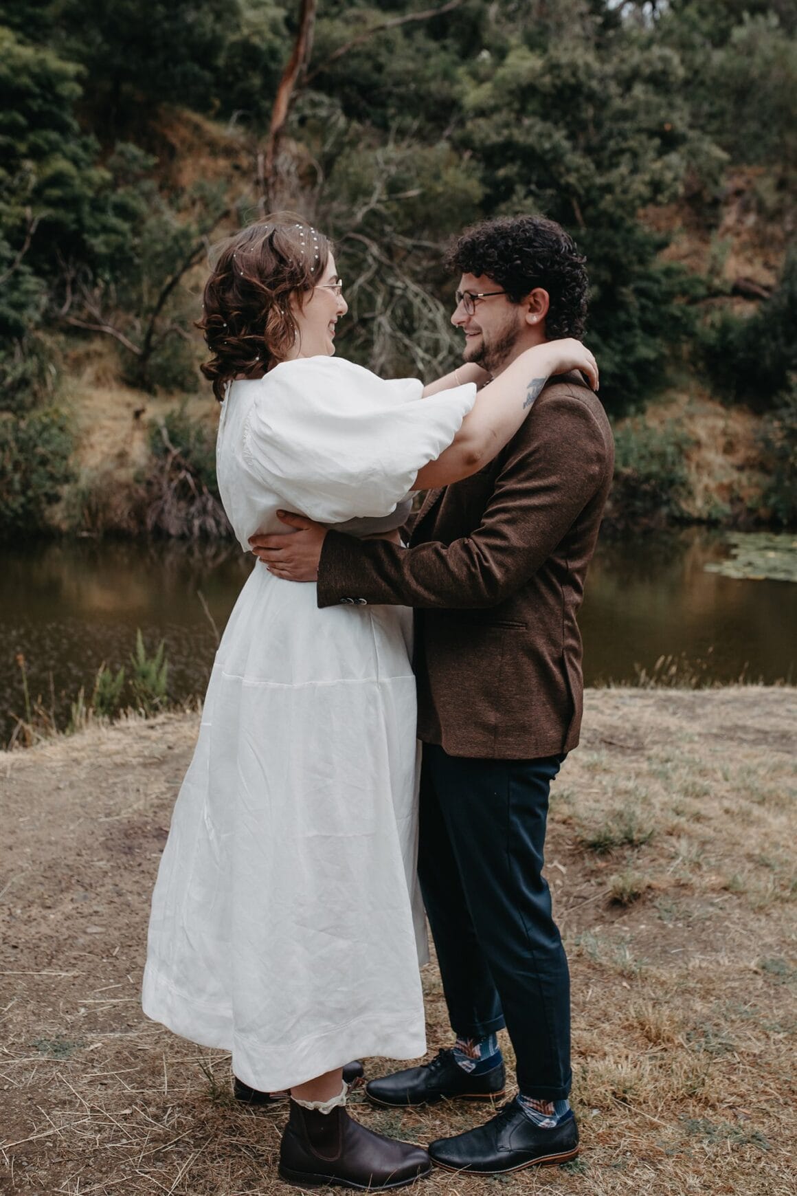 The vibes were wholesome, and the aesthetics were true to the couple (love to see it!). Think big, bold sleeves for the bride courtesy of Aje, quirky Peggy and Finn socks peek-a-booing from the groom’s shoes, and don’t think we missed that Bec + Bridge moment from the bridal party. Just perusing their wedding album by the incredible Lovegood Images, we feel like we’ve been mates with Lucy and Pete for years. We know you’ll feel the same, so scroll on for all the goodness from this loved-up day.