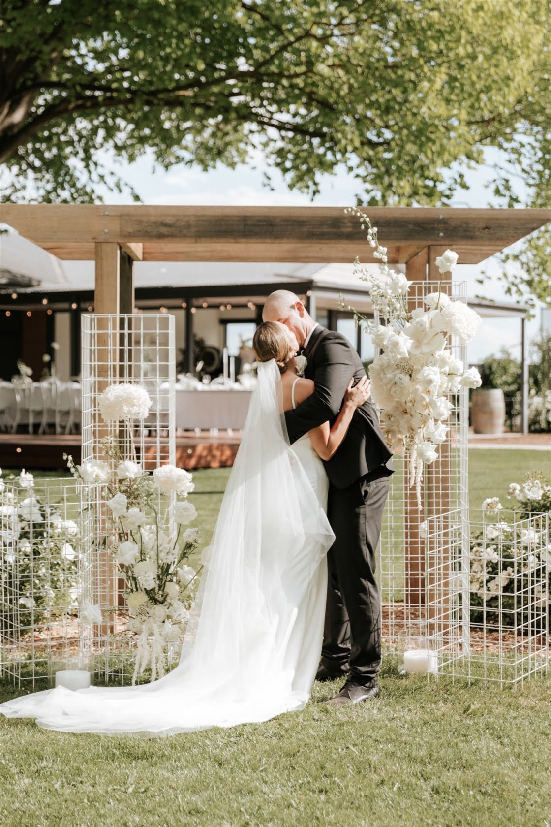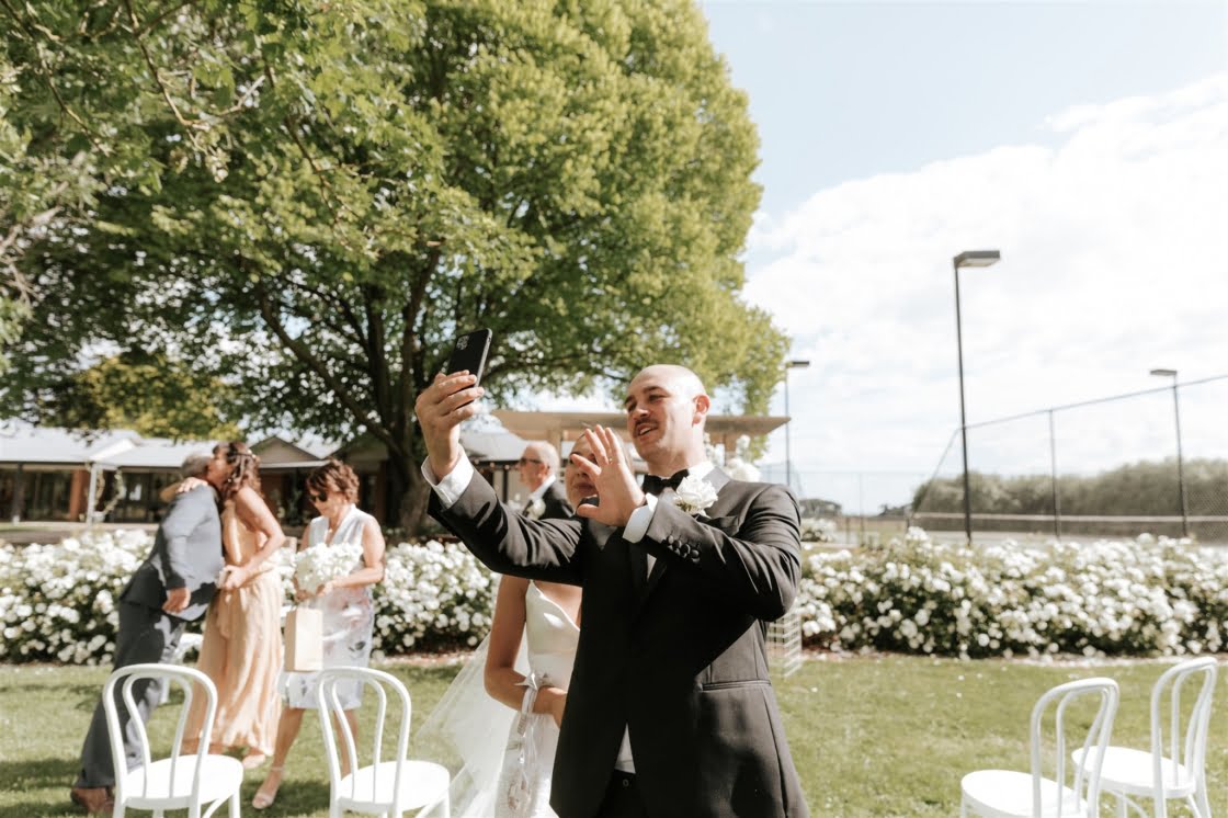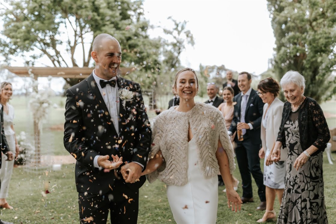 MEMORABLE MOMENT “Our favourite moment was having some time together to chat and have a glass of champagne after the ceremony. Having a small wedding allowed us to really soak up each moment together. It was surreal having silence after what was such an emotional build-up for both of us. We sat back afterwards (there is a picture Nic got on the lounges) like, ‘Wow we did it.’ After all the planning and excitement we were finally married.”