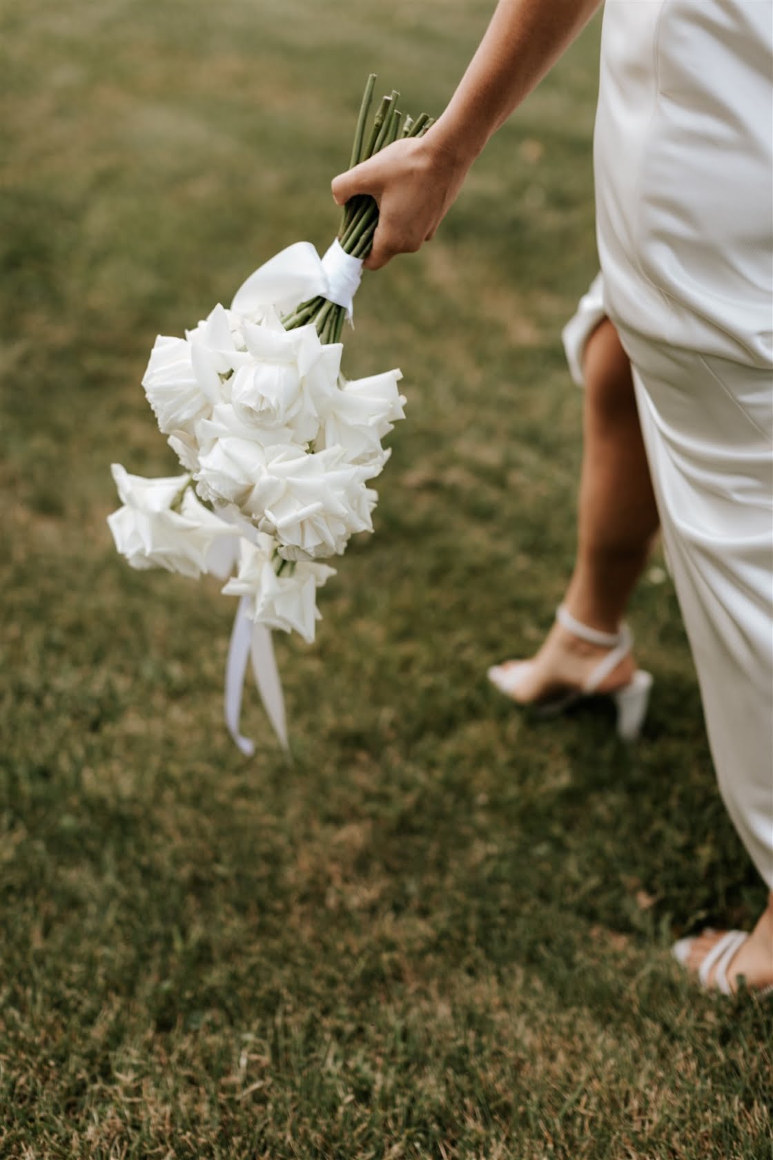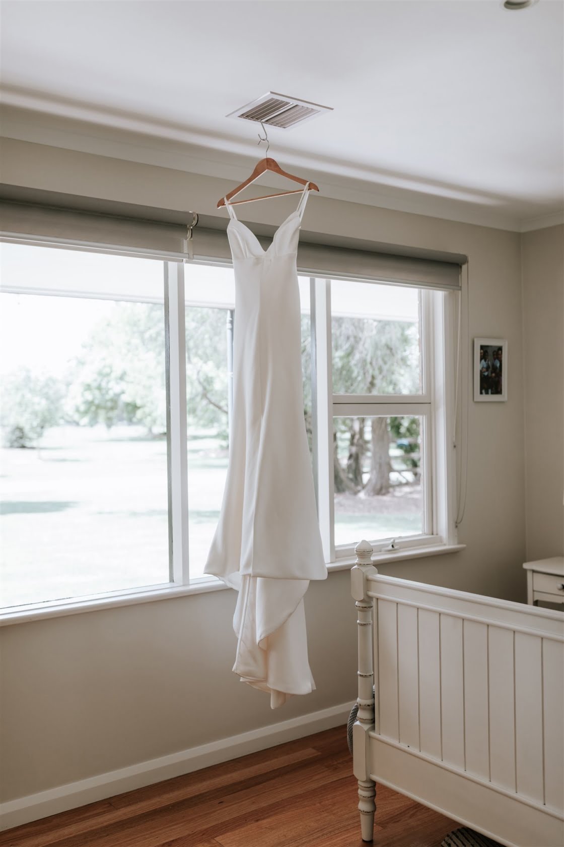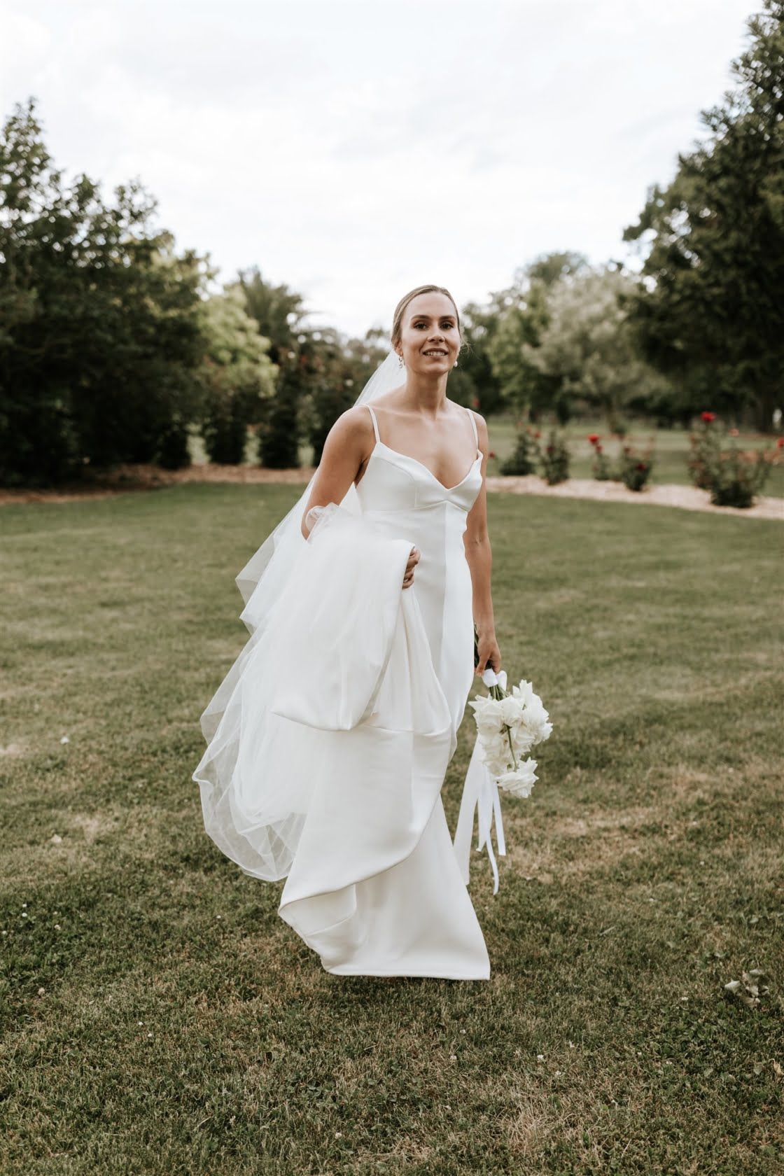 THE DRESS “Karen Willis Holmes grabbed my attention on Instagram so I organised an appointment between COVID lockdowns at the Armadale store. As I live 3.5 hours from Melbourne, I made a day of it, spending time with my mum and sisters. I tried one dress and absolutely loved it. I knew that was it straightaway and didn’t need to try any more. We were in and out in 20 minutes. The staff were lovely. Due to COVID I unfortunately could not return for fittings before the wedding so they sent my dress and veil to me via post and I had a local seamstress Lindy Kennedy do the alterations. She did a fantastic job.”