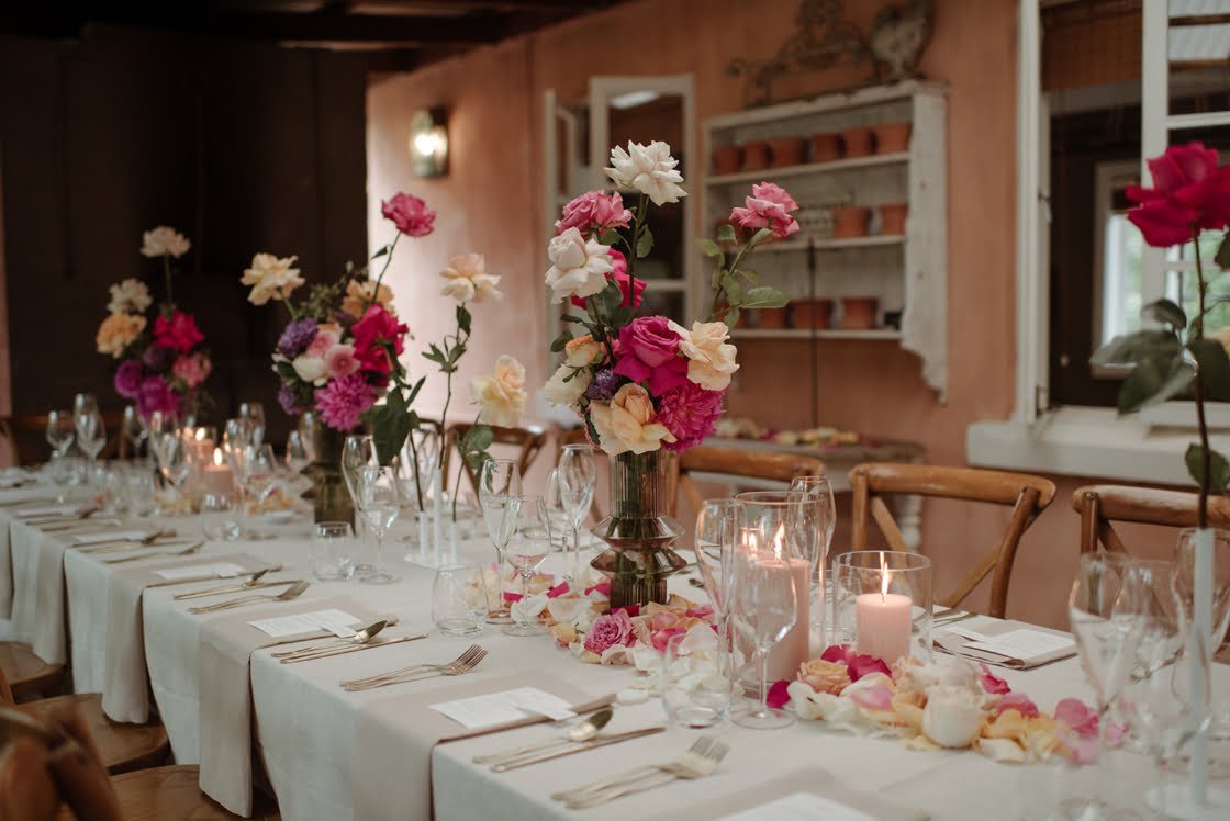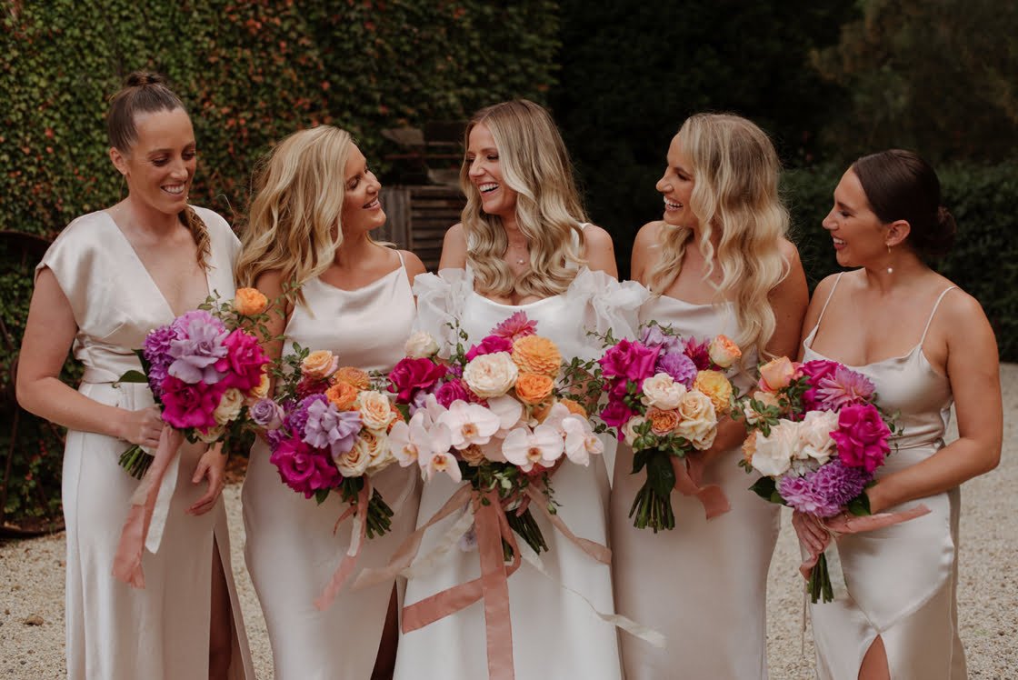 Photographer Ben Sowry Photo Stylist, Stationery & Signage Ashdown & Bee Florist Clementine Posy Ceremony & Reception Redleaf Wollombi Catering Mason Rose Hire Items & Lighting Hire Beavis Sound Hire & Entertainment Time Of Our Lives Celebrant Peter Bray Celebrant Rings Bert Jewellery (bride), Meg Maskell Fine Jewellery (groom) Transport Peaks Mini Bus Hire Bespoke Scented Candles Lisoire THE BRIDE Gown Rachel Gilbert Train Karen Willis Holmes Robes Tree of Life (bride), Le Rose (bridesmaids) Accessories Mezi Hair & Makeup Tanya Artistry Bridesmaid dresses Bec & Bridge Bridesmaid gifts Lisoire, Hills & West THE GROOM Suit & Shirt Woolcott Street Suspenders Bowtie & Arrow Shoes Aquila Barber Groom & Style Groomsmen suits Woolcott Street Groomsmen gifts Aquila