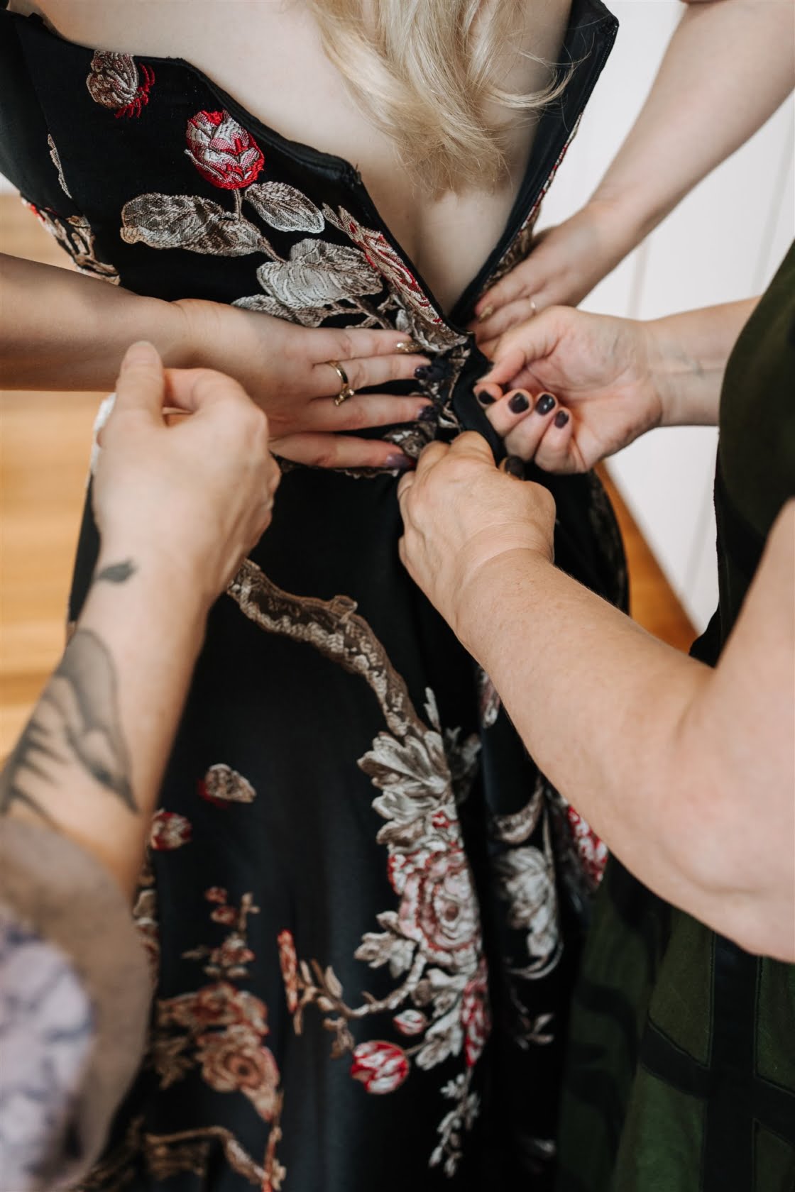 THE DRESSI initially started looking for a green dress but then I looked up Teuta Matoshi’s website, someone I had followed on social media for a while, and there were so many to choose from. I narrowed it down to a few and with the help of my family and a couple of friends settled on the one I picked. I made a few alterations (as they make them to order), like removing a sleeve and adding pockets (because every gal loves a pocket!). I took a gamble on it, knowing that I had worn similar silhouettes before and that they suited me, and it paid off.”