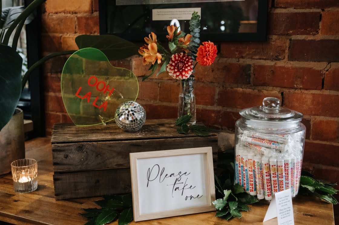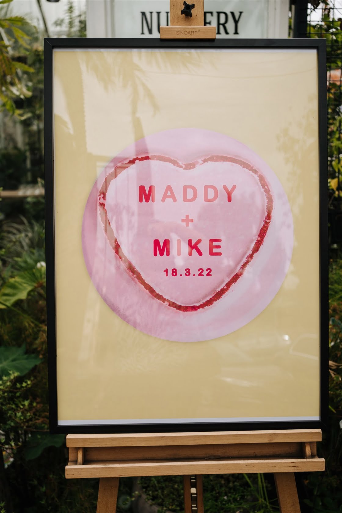 THE THEMEWe had a little running theme of heart-shaped lollies throughout the wedding. They were on our invite, our signage, Mike’s cufflinks, they were our wedding favours and we had a few perspex versions of them around the reception. But the main vibe was that we wanted a relaxed casual day that would turn into a fun party!”