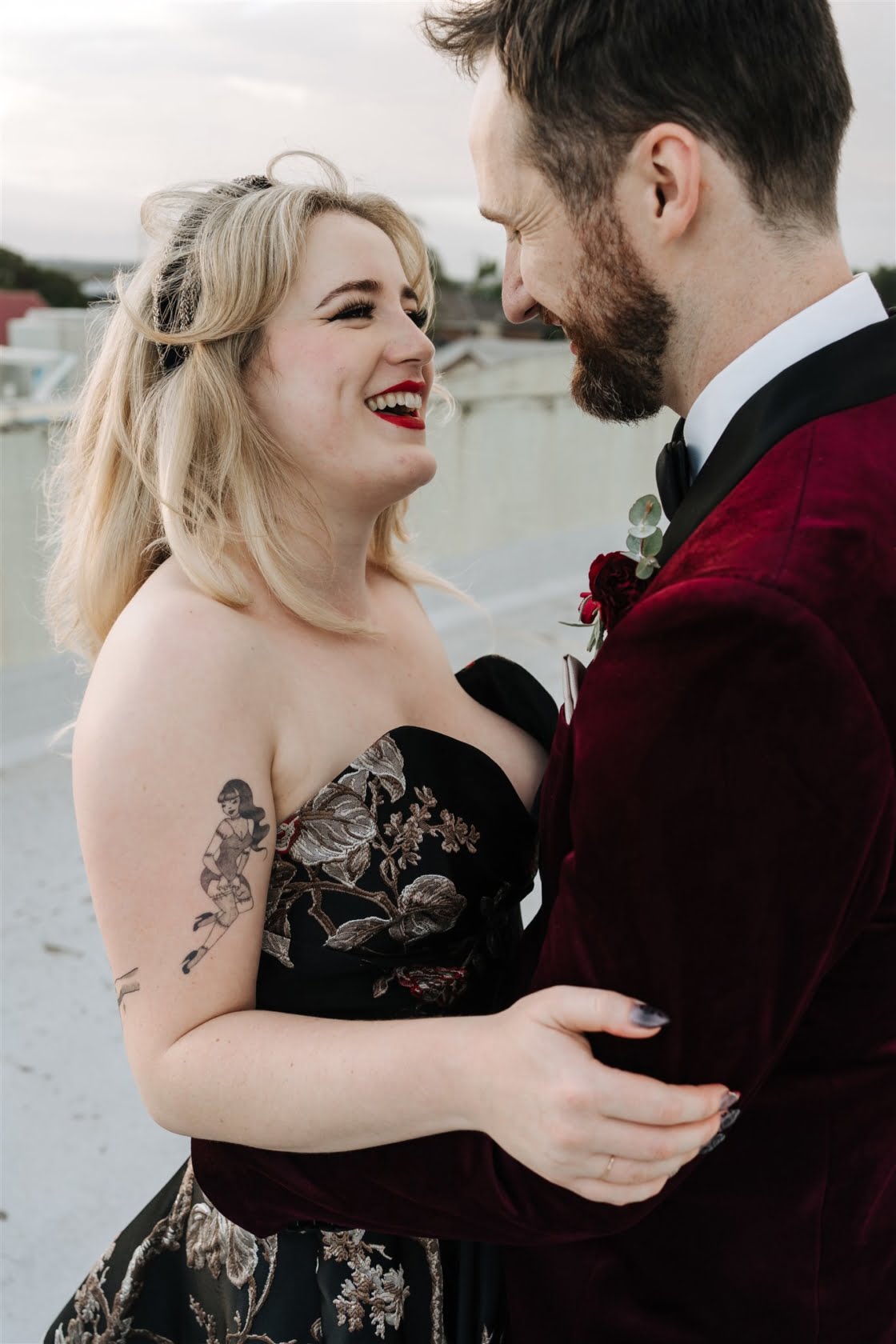 Friends, meet Maddy and Mike – a Melbourne couple who put on a banger of a big day, if we do say so ourselves. For these folks, who have been together nearly seven years, marriage means “building our lives together, as individuals and as a partnership”, says the bride. “It’s getting to spend the rest of my life laughing till we cry over some stupid sound one of us has made, doing our weekly market shop on the weekend, walking to our local coffee shop… just doing the normal everyday activities with my absolute favourite person. I know I could do all of that without the marriage part, but for us it felt exciting to make it ‘offish.’”