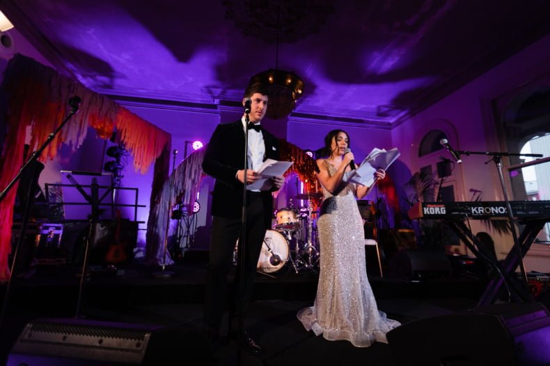 FAVE DEETS “The glitter station – everyone one got involved. Everyone. Our chuppah (canopy where Jewish ceremonies are performed) by Bangin Hangins was incredible! And we had drag queens come and DJ the last set of the night. We also did a first dance that started as a lip sync to Total Eclipse of The Heart and then some of our closest mates and family members came from the crowd to sing a live performance of Hooked on a Feeling and Thinking of You by Sister Sledge. We had indoor firework things go off on the big breakdown (which my BIL Brad secretly organised). It was EPIC.”