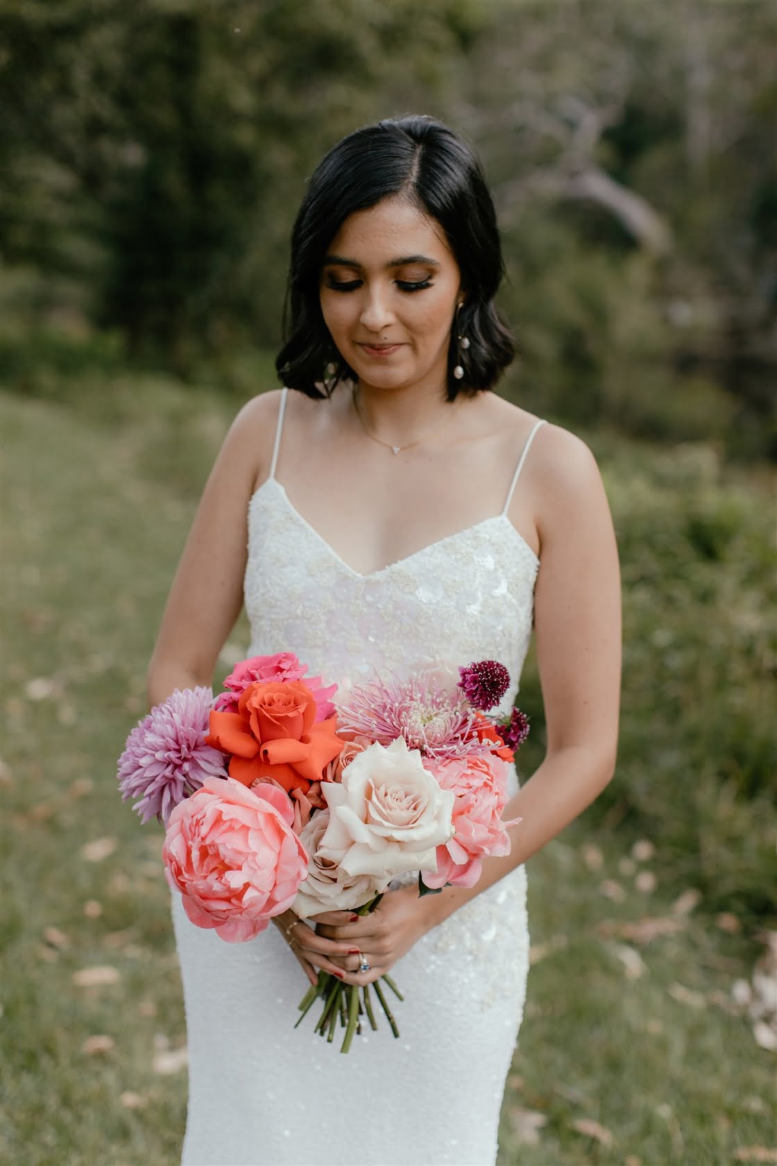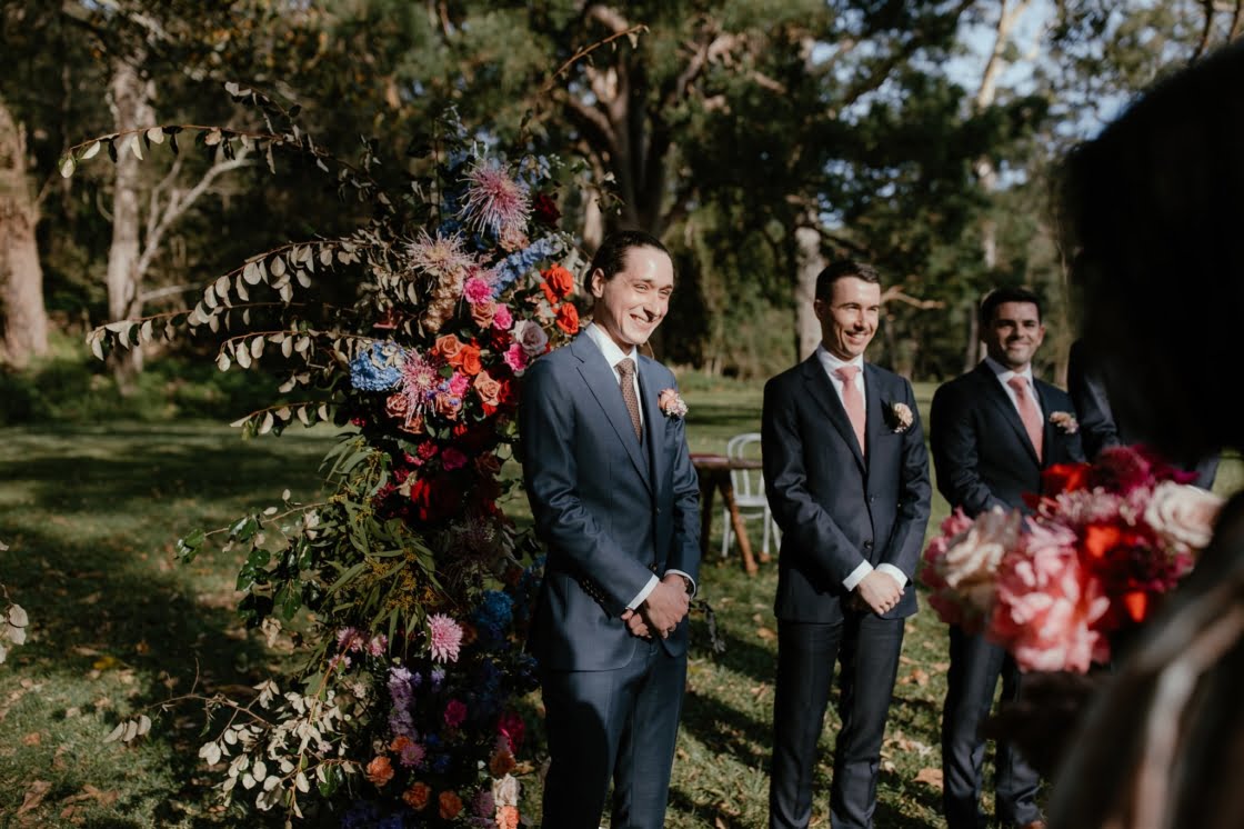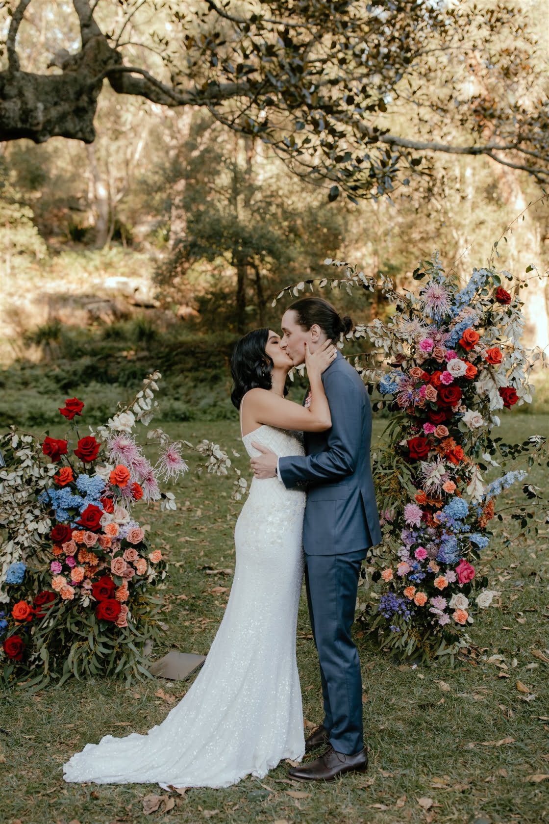 FAVE DETAILS “The florals from Eden + Bell were even more incredible than we could’ve imagined. Sophie was such a joy to work with and [made] the most magical flowers out of our brief of ‘bright and bold’. The whole set-up at Audley Dance Hall was fantastic – from our outdoor ceremony surrounded by bush to the beautiful dance hall itself. The whole day moved so seamlessly from one part to another, which added to the relaxed feel of the day. And the food was honestly some of the best wedding catering we’ve had.”
