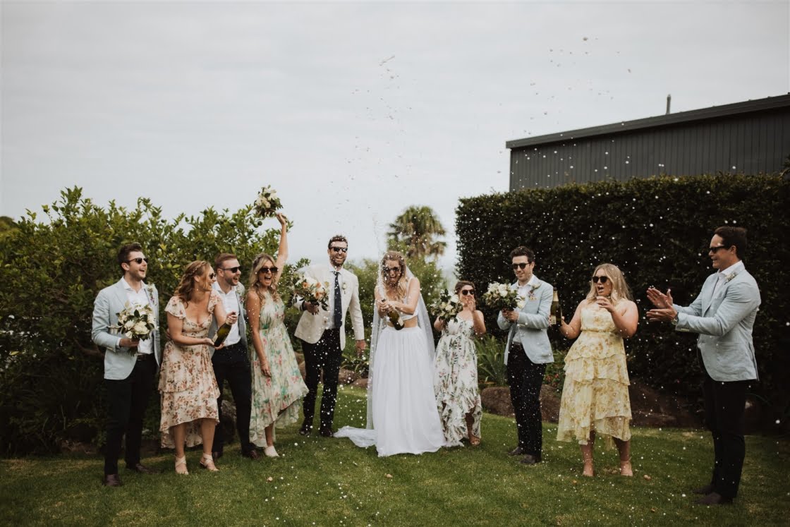 CONTRIBUTING VENDORS Photographer Matt Ashton Photography Cinematographer Above Below Visuals Event Planner Mother of Weddings Stylist Jenny Rylance (Bride’s Mum) & Frances Dragicevic (Groom’s Mum) Florist Jessica Lea Floral Design Stationery Something From Sarah (Save the Dates, Invitations – Friend) & Engrave It Studio (Wine charms, Place Tags) Ceremony & Reception Eagle View Park Catering Mingle Meals Cake Delaneys Cakes Lighting Go Hire Entertainment Top Shelf Live Celebrant Nick Bone Wedding Rings Bill Hicks Jewellery Design Transport Coastline Limousines THE BRIDE Bridal Gown Darb Bridal Couture Robes Kmart Shoes Wittner Accessories Edward Swaab Designs via Certified Diamond Network (Custom Pendant) Hair Chelsea Taylor Hair Stylist Makeup Makeup by Megan Bridesmaid Dresses Ted Baker, We are Kindred, Shona Joy, Esther & Co Bridesmaid Gifts The Traveller Series (Earrings) THE GROOM Jacket, Shirt & Bow Tie M.J. Bale Seaman Boutique via Etsy Shoes Julius Marlow Grooming Al’s Barber Shop Groomsmen Suits M.J. Bale Groomsmen Gifts My Brand and Me (Stubby Holders)