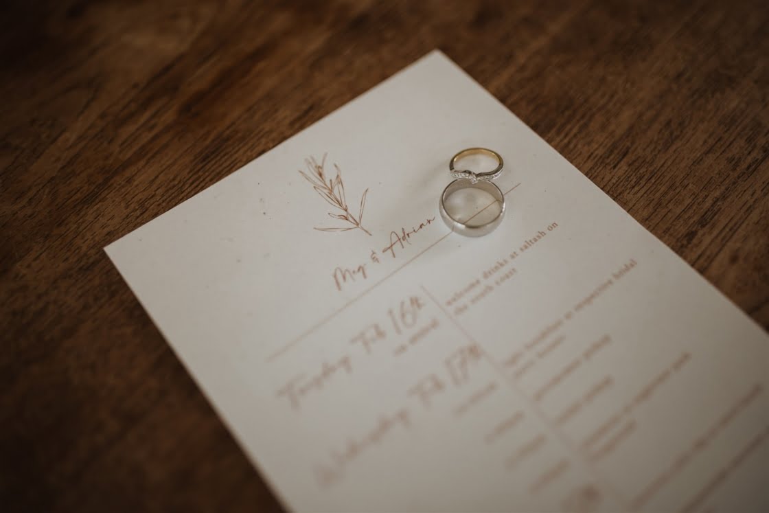 MEMORABLE MOMENTS “An absolute highlight was my mum and dad busting out ukuleles OUT OF NOWHERE and performing ‘Simply the Best.’ They have never played the guitar or any sort of instrument in their lives! It blindsided everyone and ended with everyone standing on chairs dancing and singing (screaming) along, and my brother thumping the table so hard he got a fork stuck in his palm. Speaking of my brother, he lives in London and made the trek over, enduring two weeks of hotel quarantine. But the overwhelming joy from the day was the love that was flowing out of Adrian. While not super out of character for him, it was just so out there for everyone to see, so pure, unfiltered and unapologetically real.”