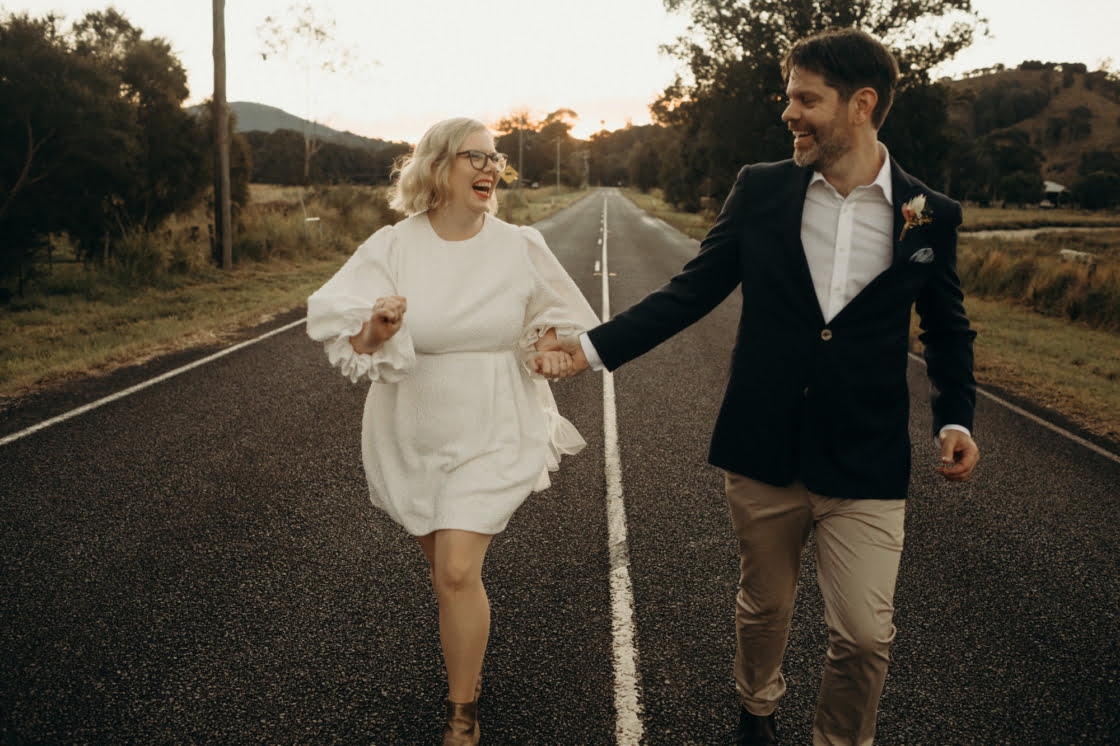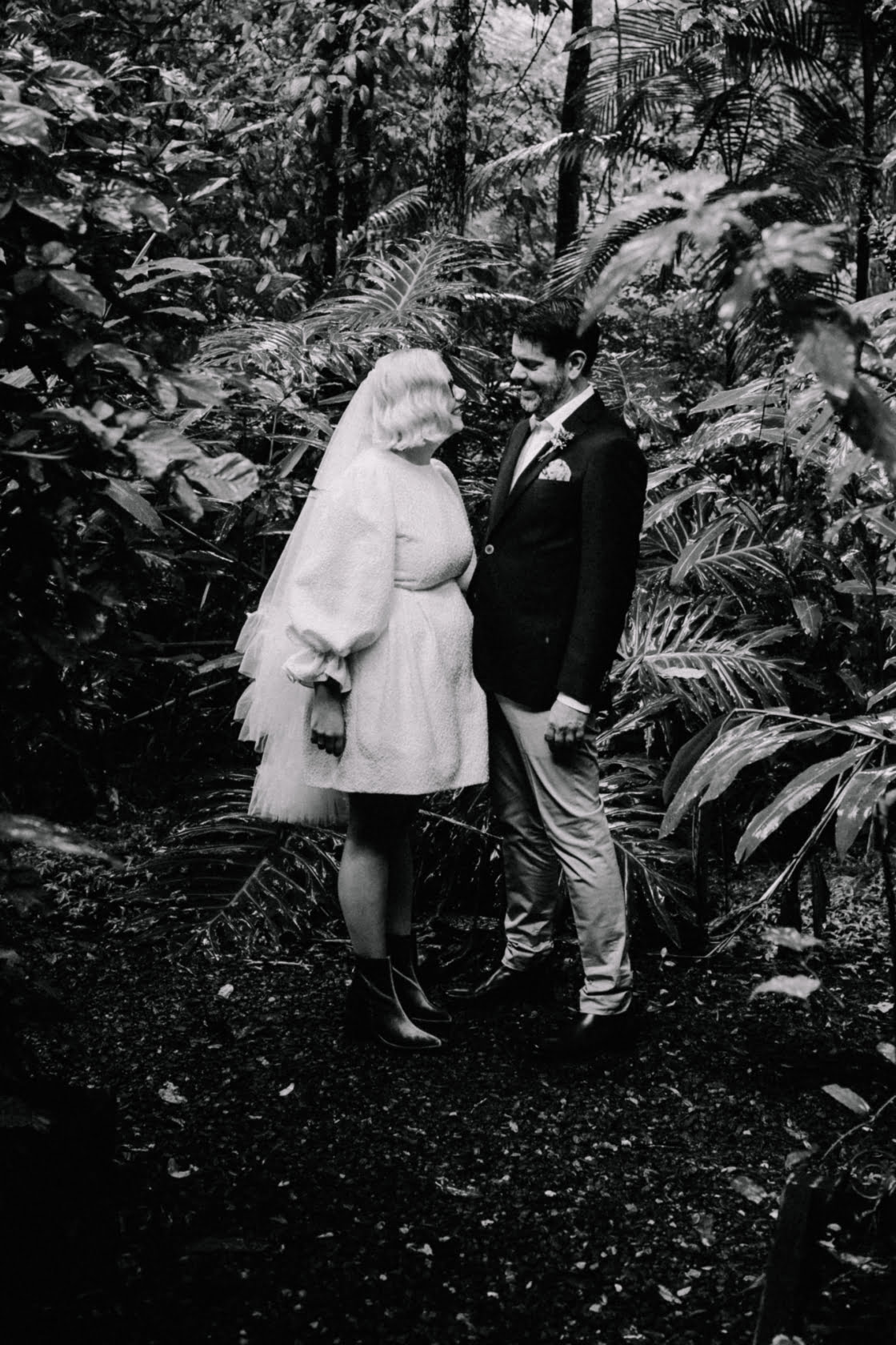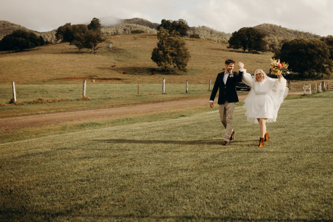 We’re loving everything about Megan’s short dress and boots combo – check the fun casual bride vibes! Swoon. It was the perfect look for her nups to Chris in the Sunshine Coast Hinterland.