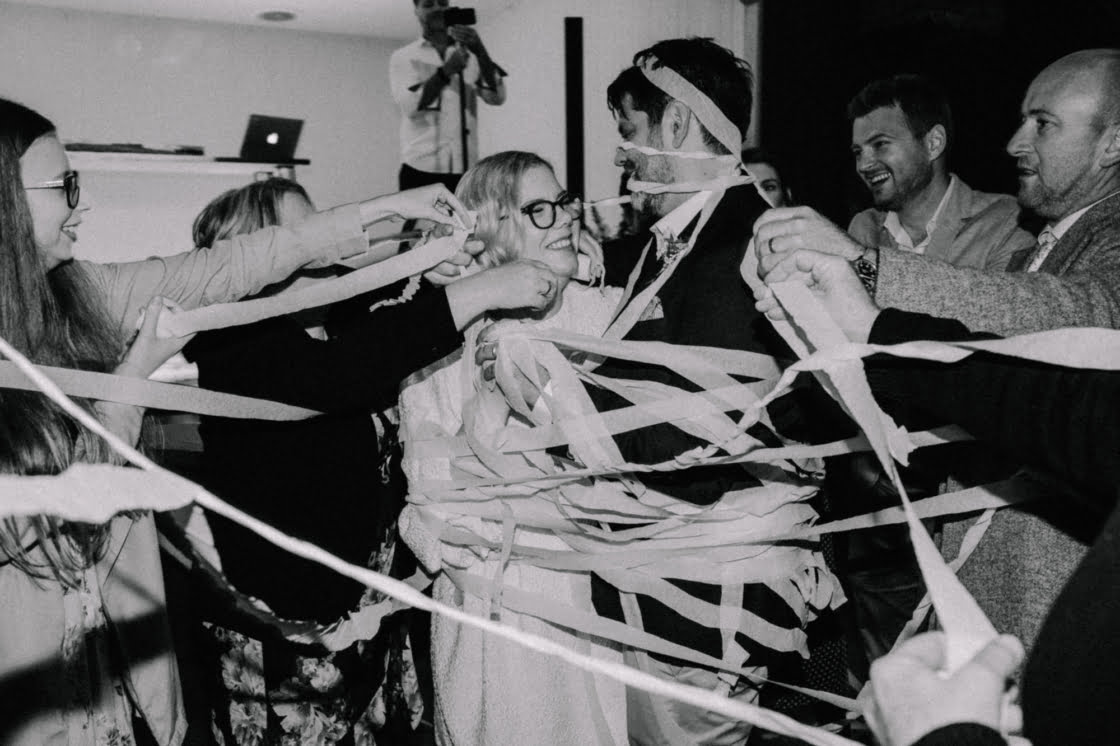 COOL CUSTOMChris’s family has a tradition that involved us being wrapped in streamers during our first dance. While family all knew it was coming, a lot of friends had never seen it, so that was pretty fun. Megan’s father passed before the wedding so Chris wore a set of his cufflinks – that was really sweet. Both our mums were the ring bearers.”