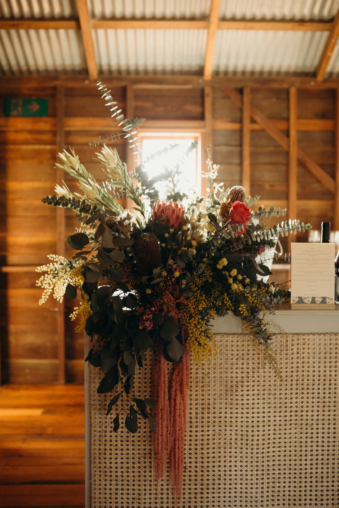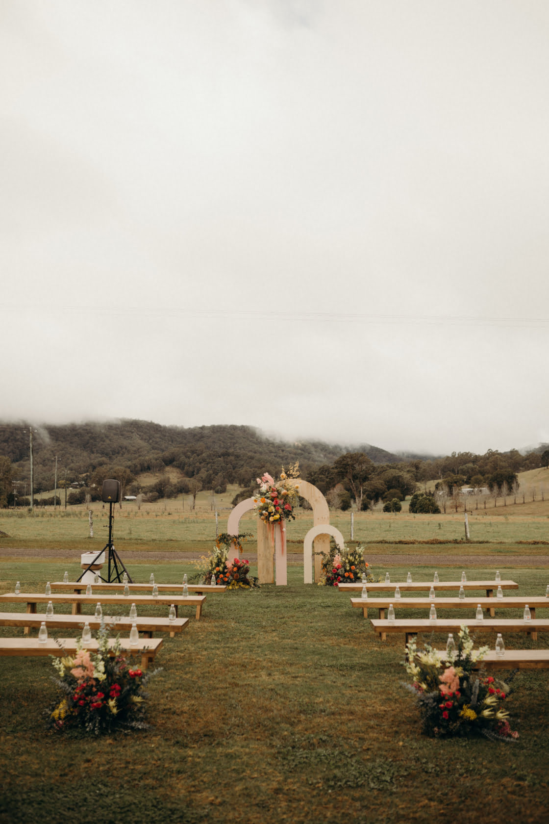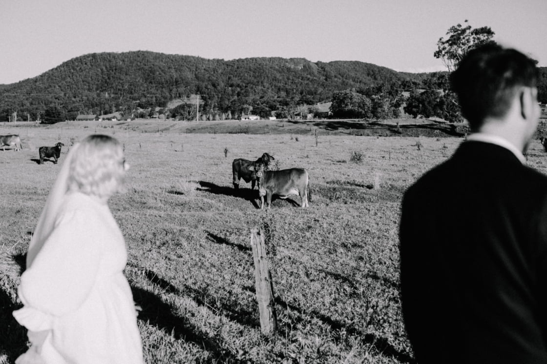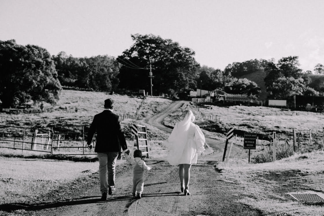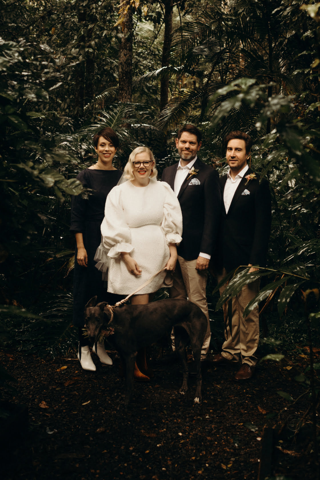 CONTRIBUTING VENDORS Photographer & Cinematographer Life is Beautiful Florist Willow Bud Stationery Paperlust (invitations), VistaPrint (favour tags) Ceremony & Reception Obi Obi Hall Catering Something For Catering Desserts The Dessert Architects Wedding favours Jordan Bastian (illustration), The Print Bar (tea towel printing) Hire Items & Lighting Avideas (chairs, tables, bar, stools, lighting), Alfies Event Hire (drink dispensers, glasses, cold room) Entertainment Cut A Rug Celebrant Paul Voge Rings By Baby Transport Boomerang Bus Hire, Coast to Hinterland Tours Wine Cork & Co Biodegradable Confetti The Whole Bride Dog collar & lead Kmart Flower boy romper Jamie Kay Website With Joy Choreographer Common People Dance Project THE BRIDE Gown Karen Walker Veil Madame Tulle Shoes Reike Nen via W. Concept  and Vic Matie via EBay Earrings Holly Ryan Hair & Makeup Valentina’s Sunshine Brides Bridesmaid dresses Seaside Tones Bridesmaid shoes Wittner Bridesmaid gifts Dinner at Hôntô, self-made pottery THE GROOM Jacket, Pants & Shirt Clay Rondo Pocket square Peggy and Finn Shoes Julius Marlow Barber Empire Barbering Co. Groomsmen suits Canali Groomsmen gifts Dinner at Hôntô, self-made pottery