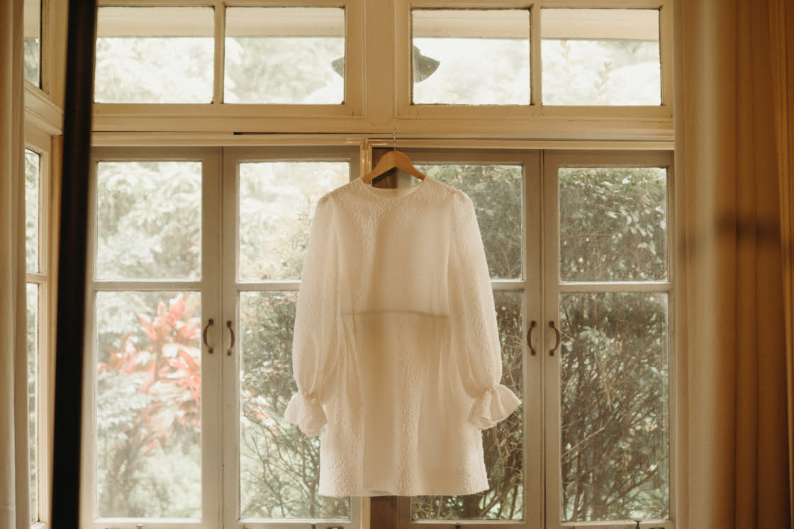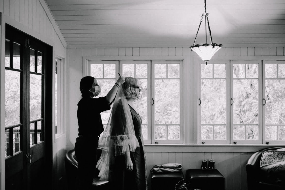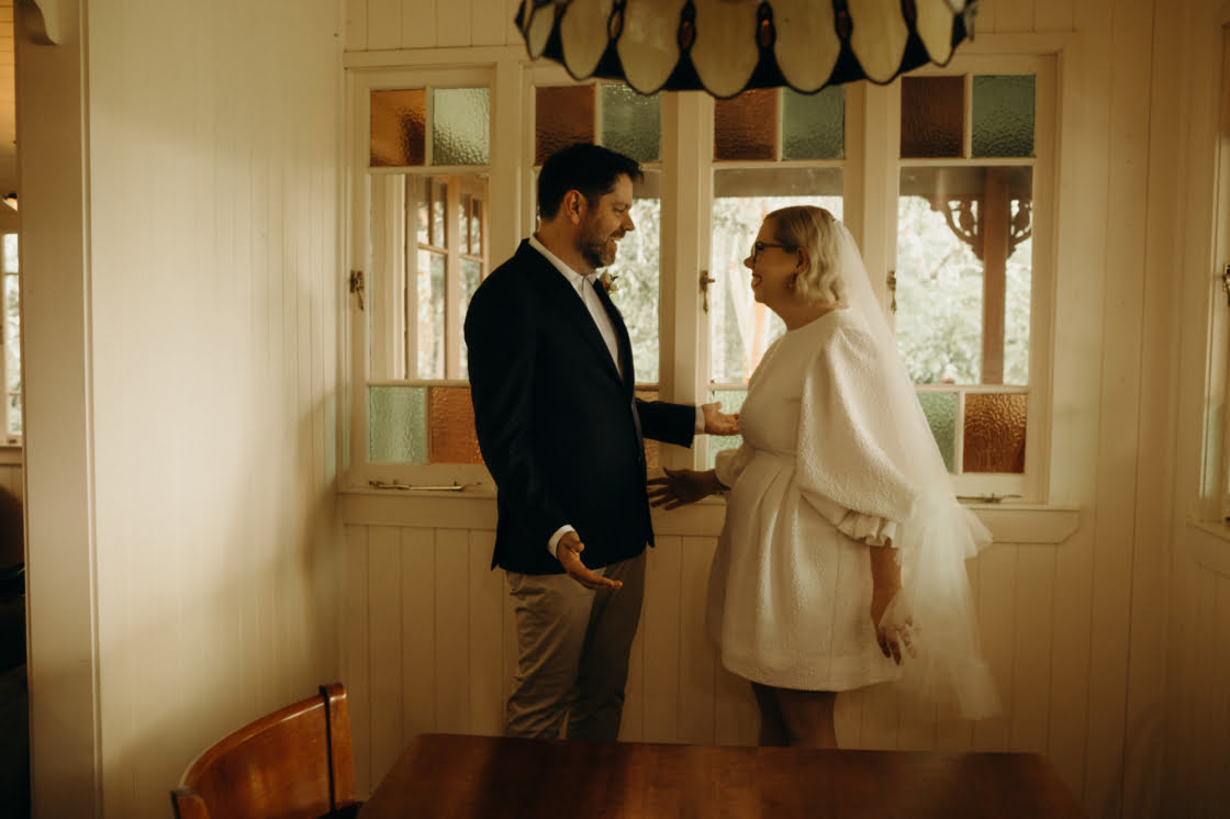 THE DRESSAs I was a 14 in clothing, I found that none of the bridal stores I visited catered for my size. They all stocked smaller sample sizes. I contacted Karen Walker about the dress I had my eye on (the Bliss dress) but there was nowhere in Australia that stocked it, so I couldn’t try it on. Karen Walker’s wholesaler, Michele, was going to be in Melbourne and kindly let me meet her at her hotel to try on a calico sample in my size. COVID had just started to be a thing and I was a little worried about travelling. It was a pretty strange day as I had just birthed our son, Percy, so I was walking around Melbourne with a breast pump. I was really happy with the fitting, so it was worth the trip.