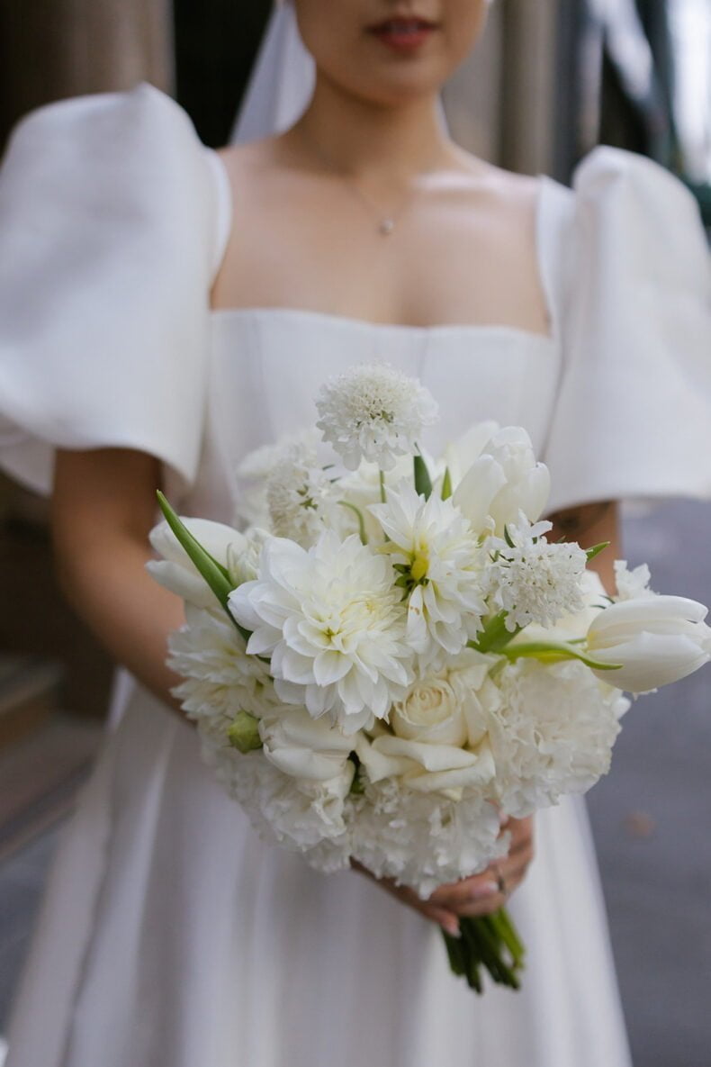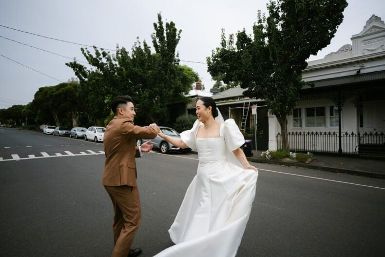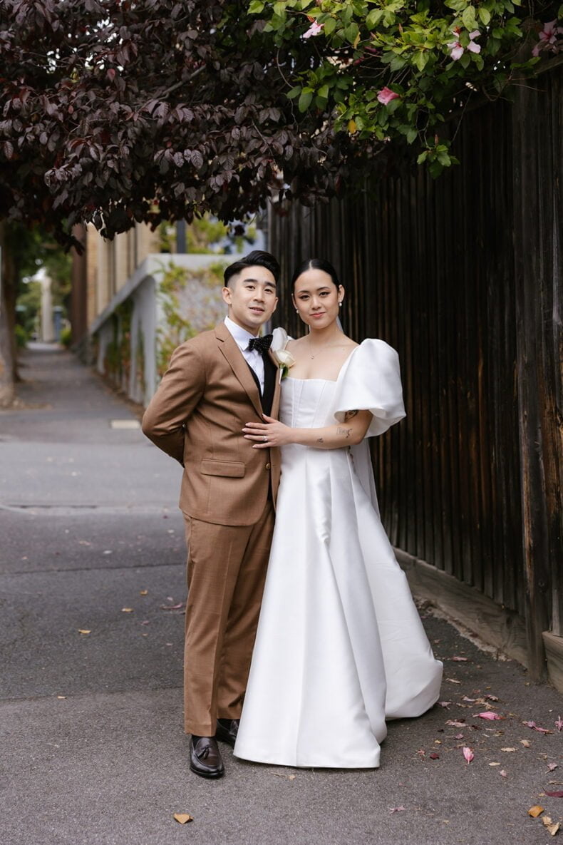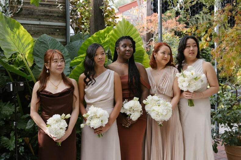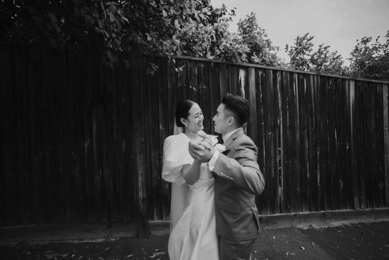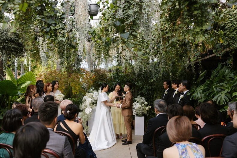 These two creative cats, Mel, and interior designer, and Adam, a professional dancer, were married on their 14-year anniversary, after first getting together in high school. And they had a specific vibe when planning their gorg day. “We wanted it to feel inviting and intimate, while being clean and minimal,” they tell us. “We wanted it to be timeless while being an expression of our styles.”