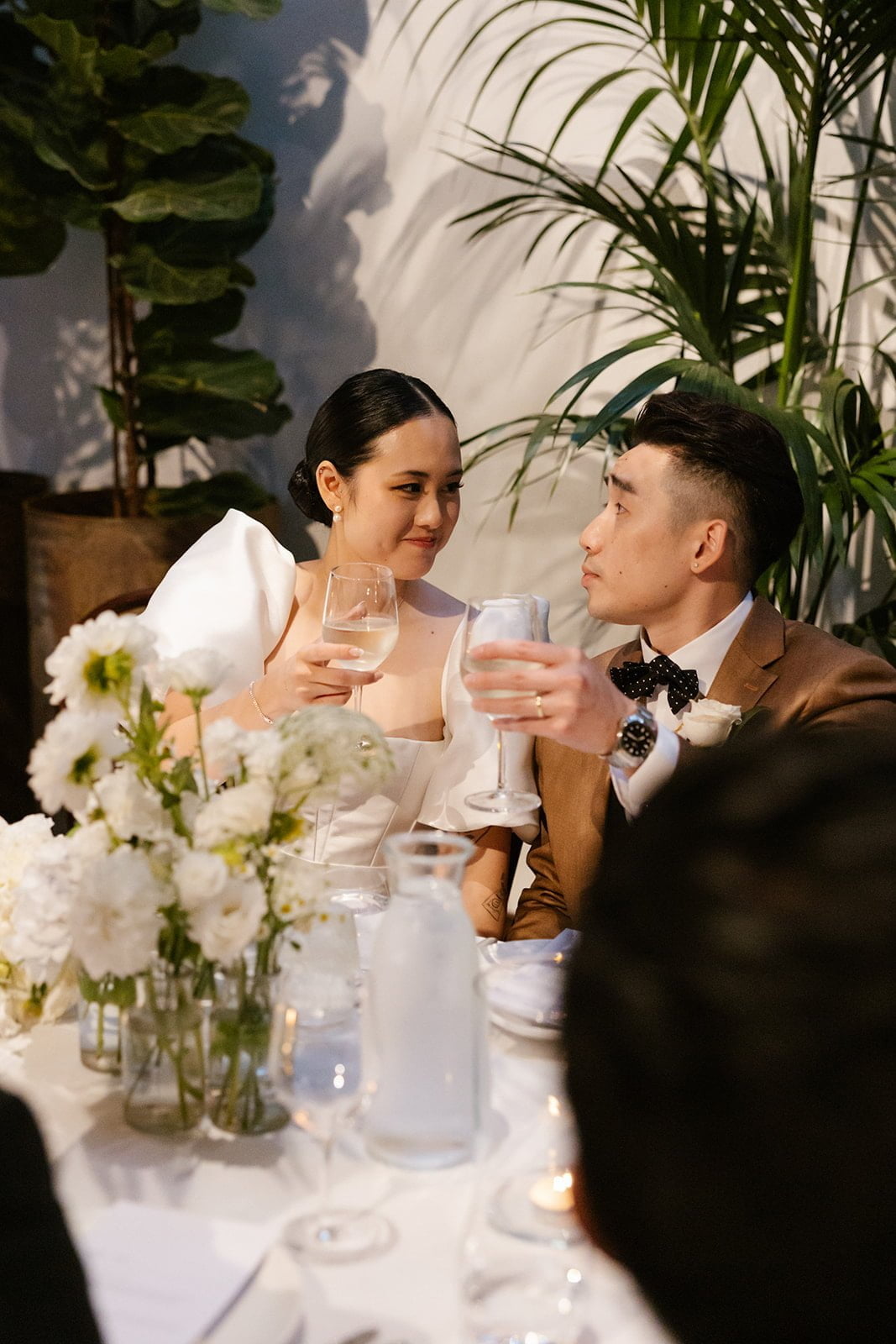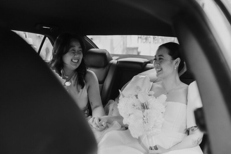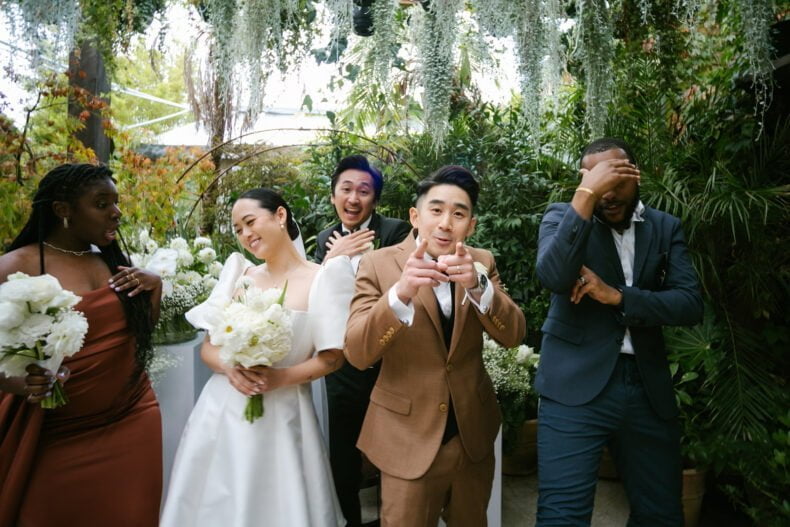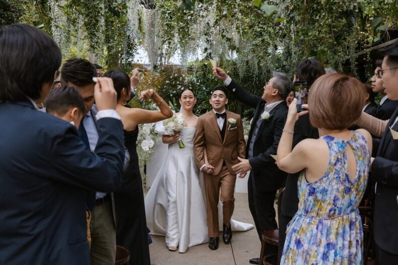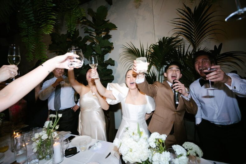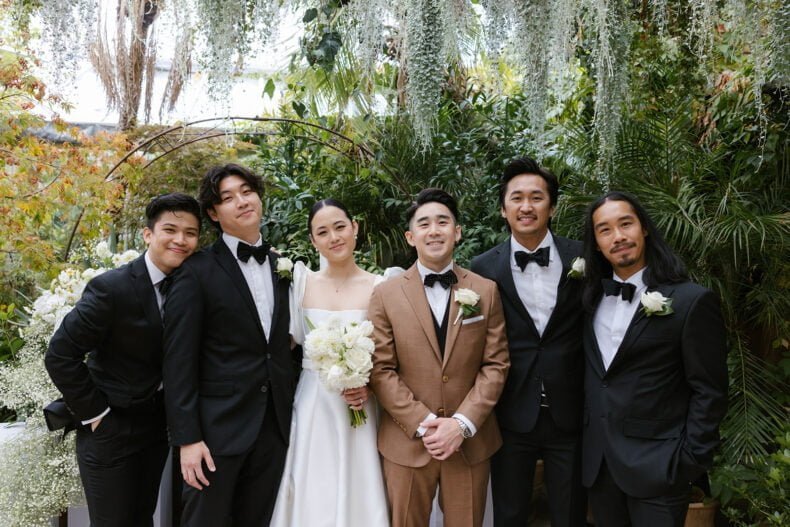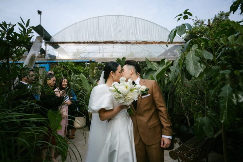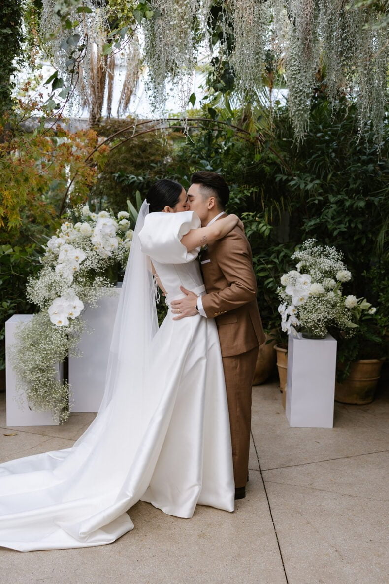 These two creative cats, Mel, and interior designer, and Adam, a professional dancer, were married on their 14-year anniversary, after first getting together in high school. And they had a specific vibe when planning their gorg day. “We wanted it to feel inviting and intimate, while being clean and minimal,” they tell us. “We wanted it to be timeless while being an expression of our styles.”